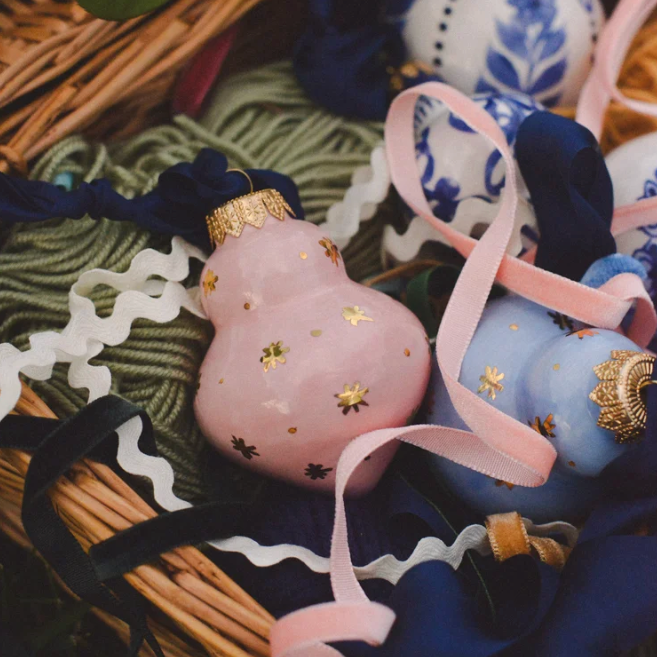 Mary Frances Carter Bauble: Museum Sky in Pink with 22K Gold Stars