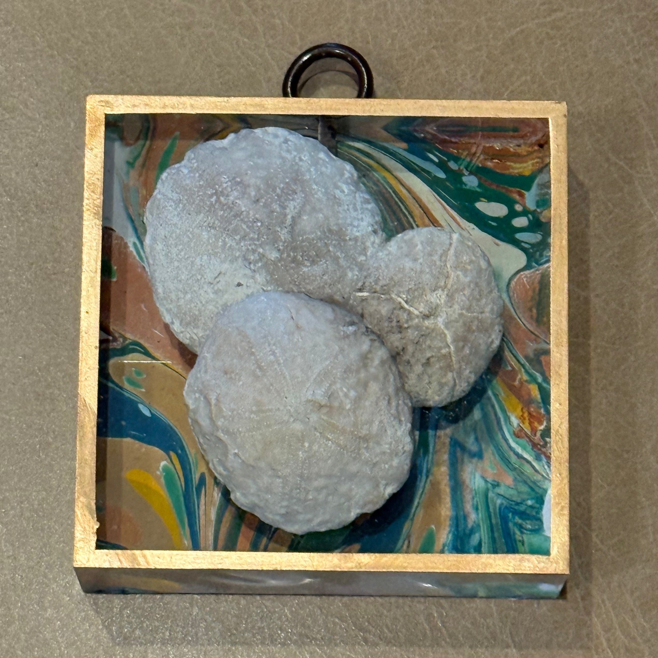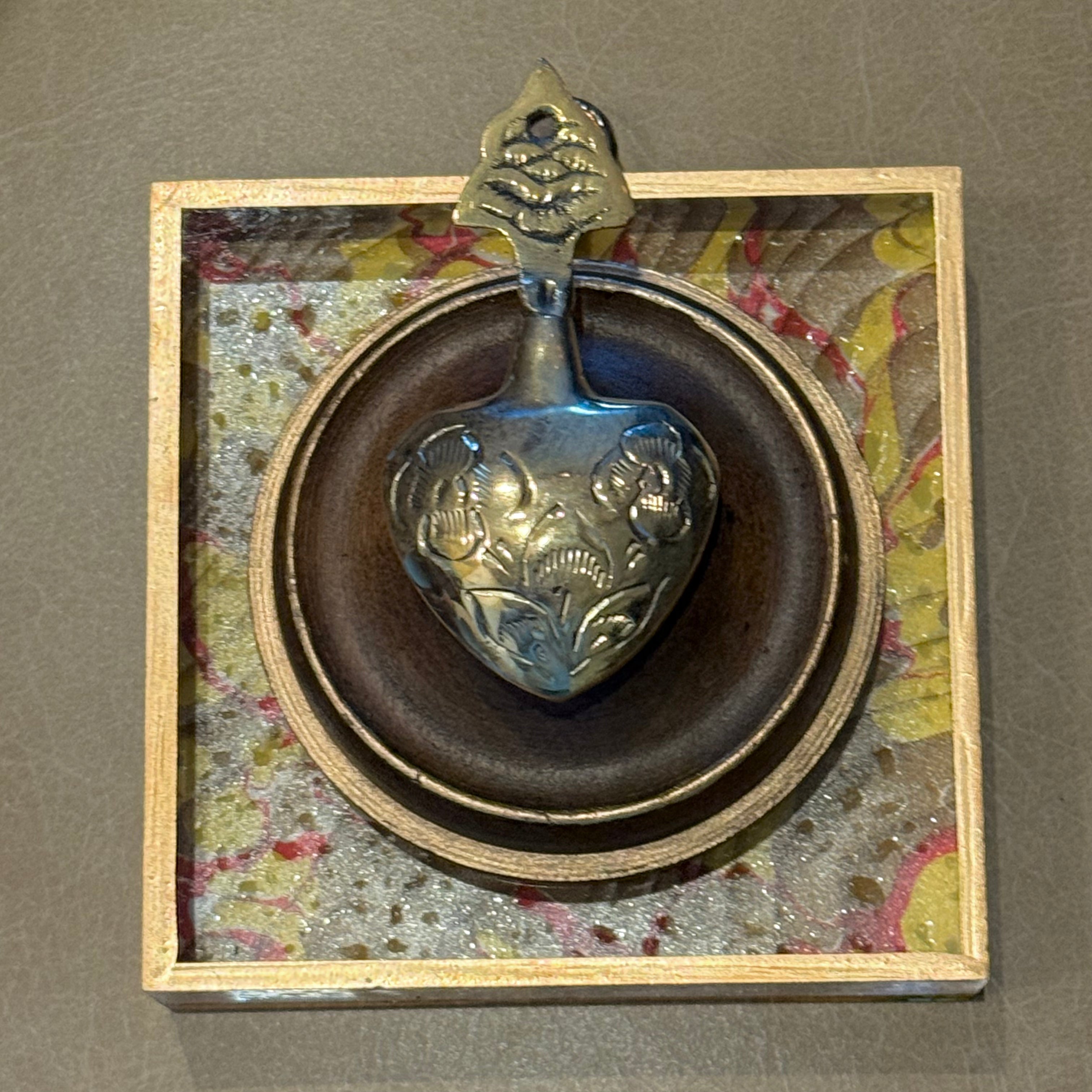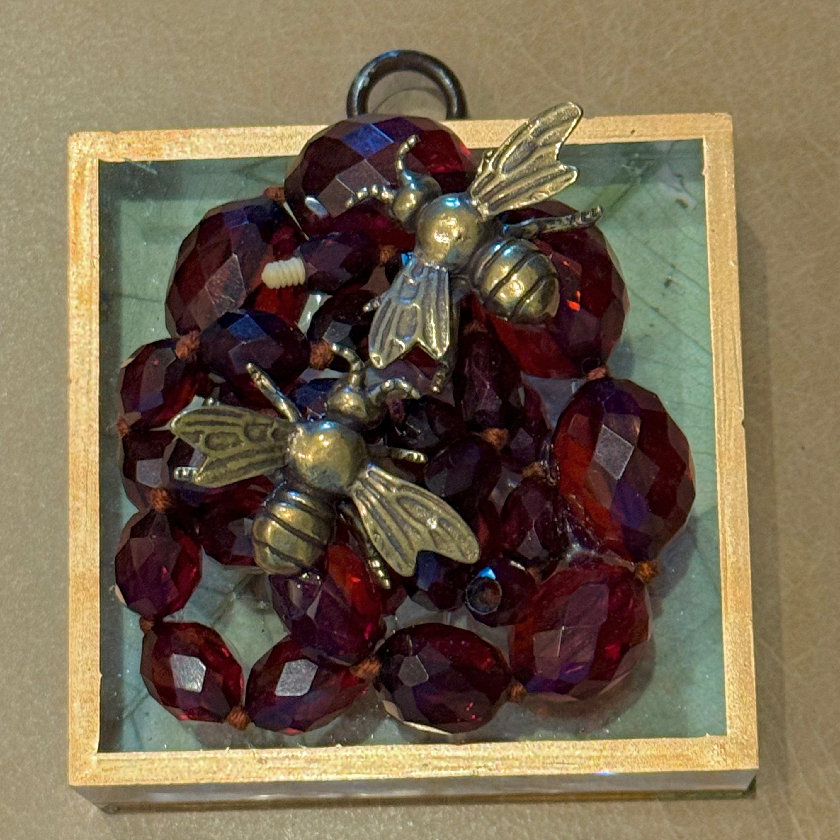 Trace Mayer uses antiqueΒ frame fragments from 1860-80 to form charming and interesting shapes. InΒ the center, various ornaments are showcased,Β the first of which was Napoleon's Bee. What has transpired over the years is a phenomenon anyone and everyone can get excitedΒ about and be a part of.Β BeesΒ have expanded to include many other gems, including other animals, insects, and evenΒ personal items such as a medal or a unique family heirloom. Small antique objects are also showcased, including horse brass, pre-Columbian fragments, or small cameos.