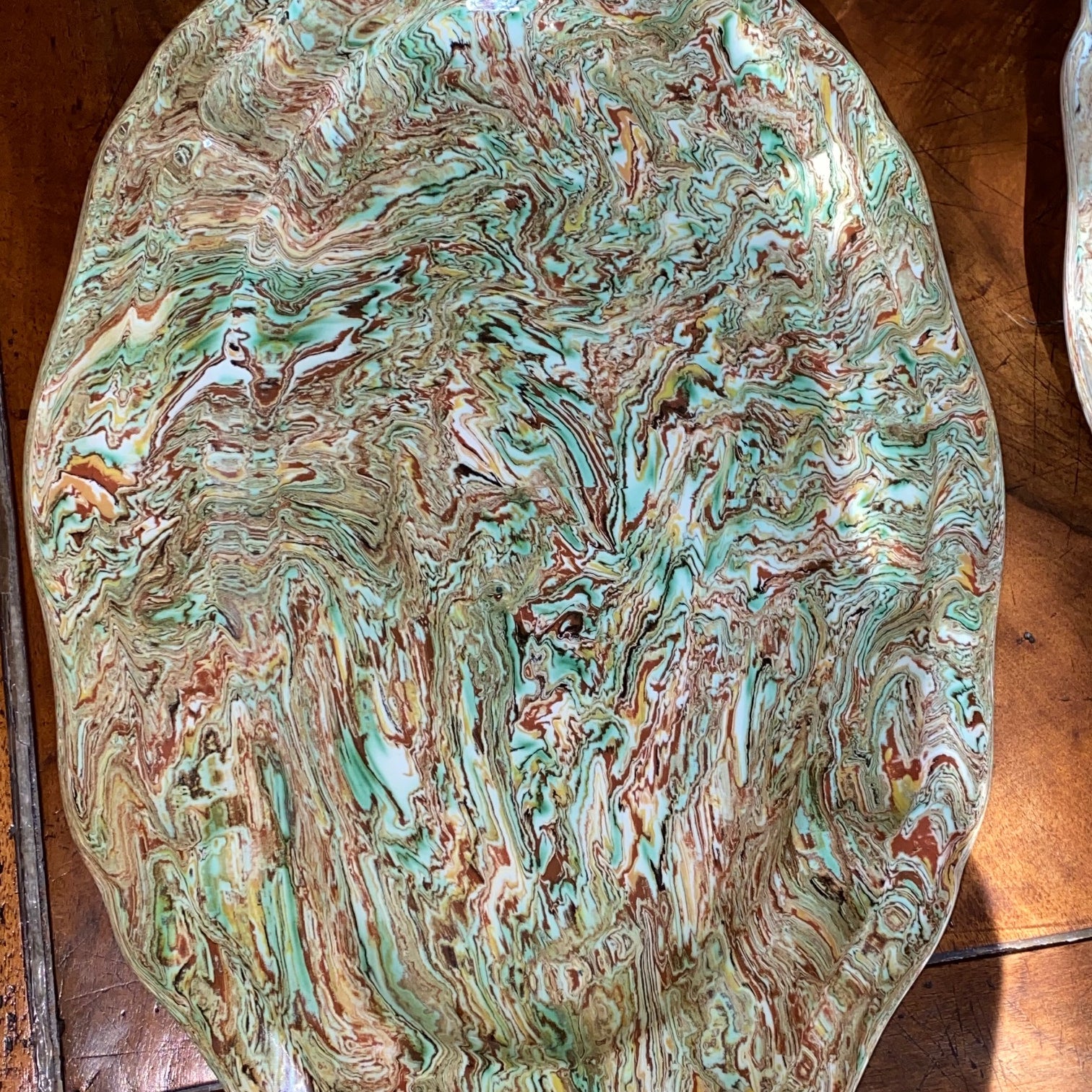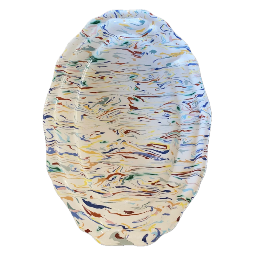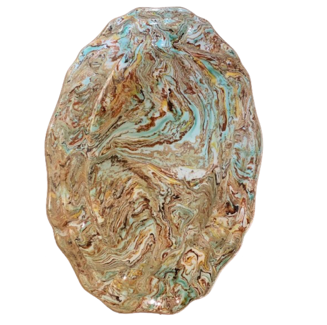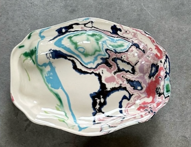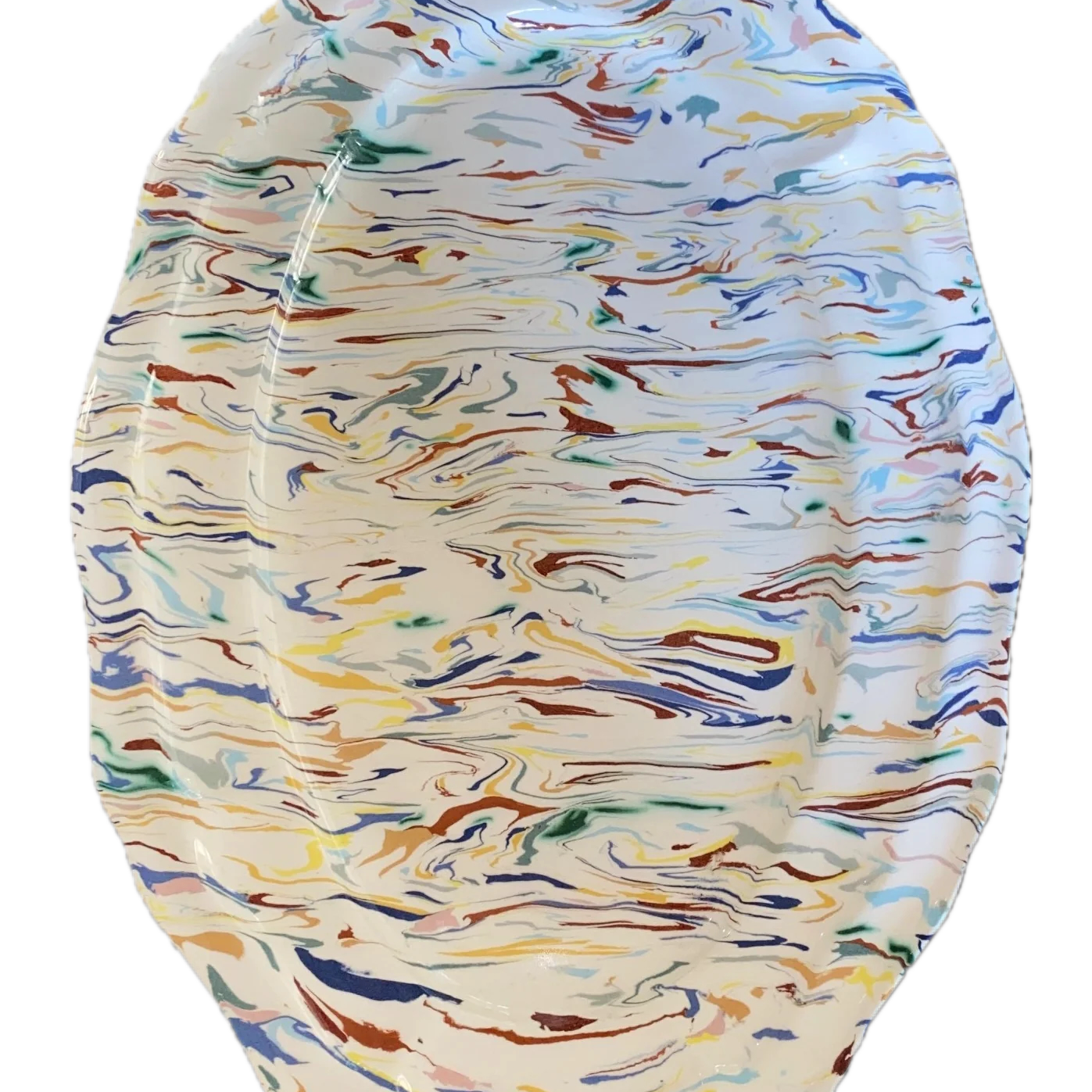 "Aptware is a beautifully marbleized faience pottery, naturally inspired by the colored soils in Apt, a small town in France. Apt's mixed clay ceramics are world-renowned. I was overjoyed when I came across a skilled artisan residing in that region and discovered she is one of the last remaining masters of this art form. I am thrilled to provide access to this highly specialized and sought-after product. However, it is usually considered a very special order. Keep in mind the delivery times range anywhere from 8 weeks at certain times of the year to 8 months at other times. The images displayed under "Aptware from France* are samples of aptware I have seen when visiting the workshops. Please inquire with any questions! We often feature pieces I purchase while in Apt in the shops. However, most aptware sells very quickly, and keeping any of the traditional aptware in stock is difficult.