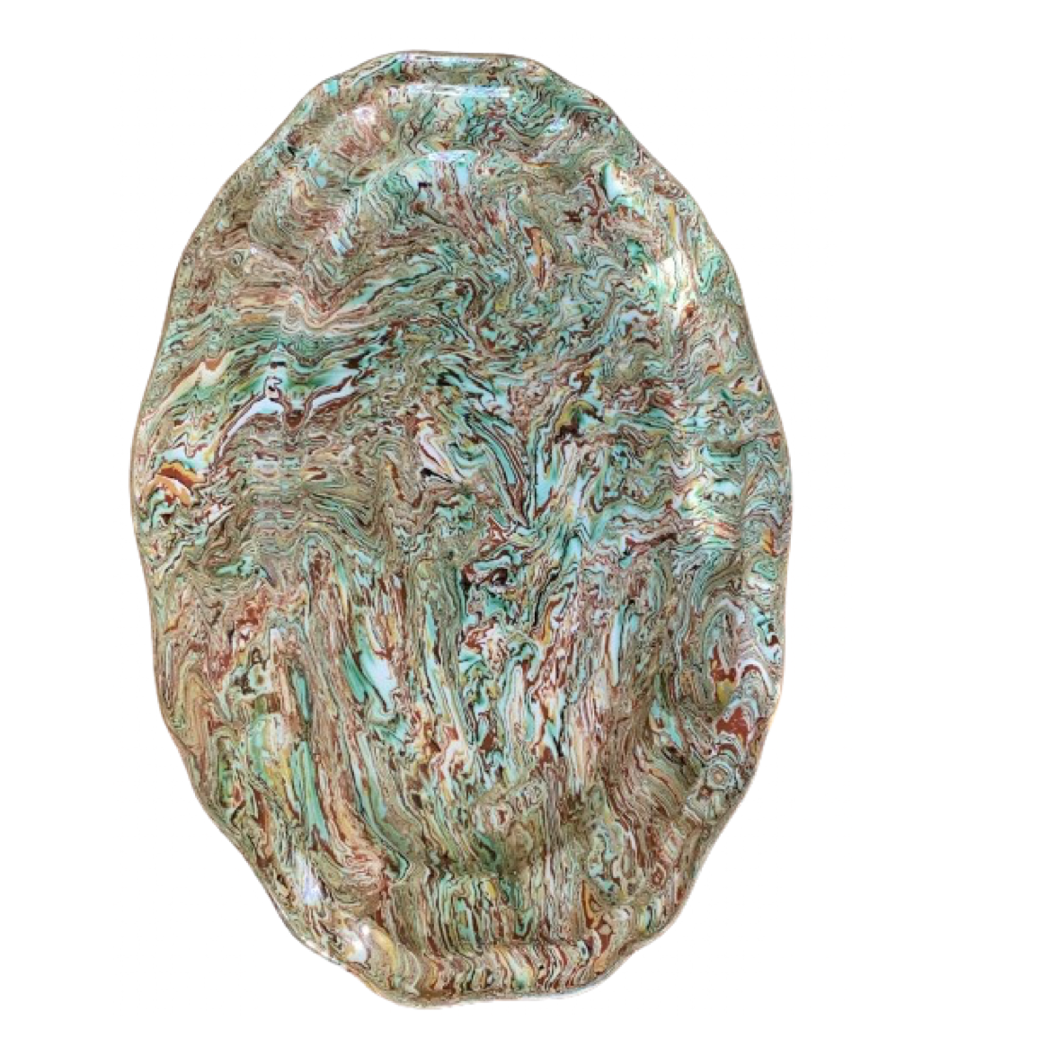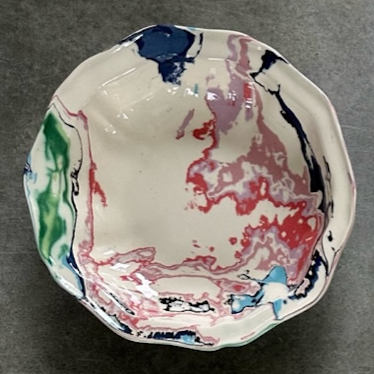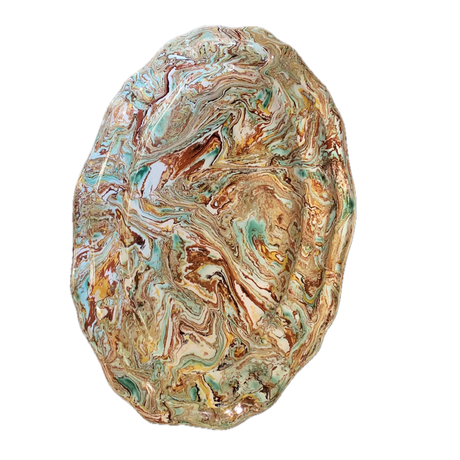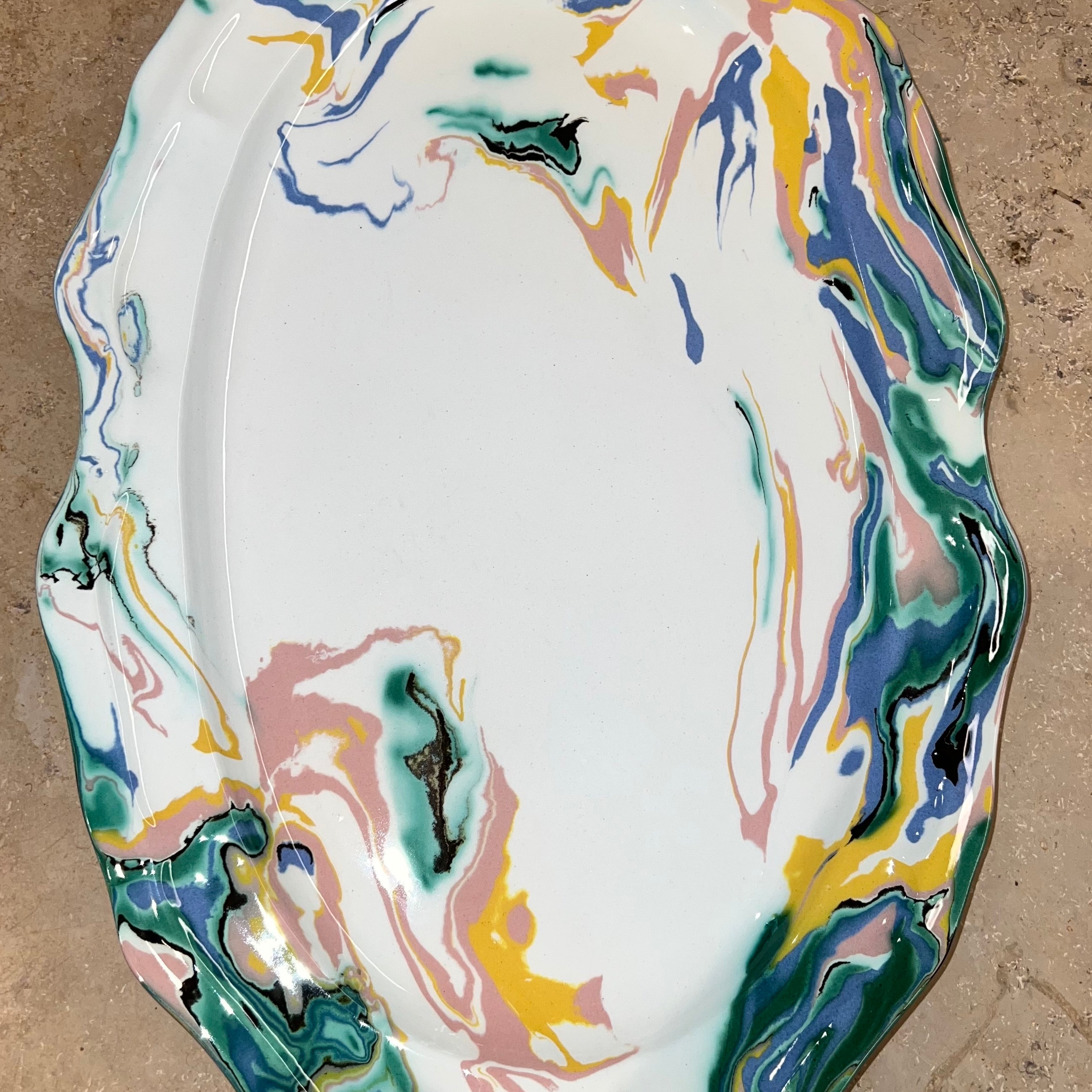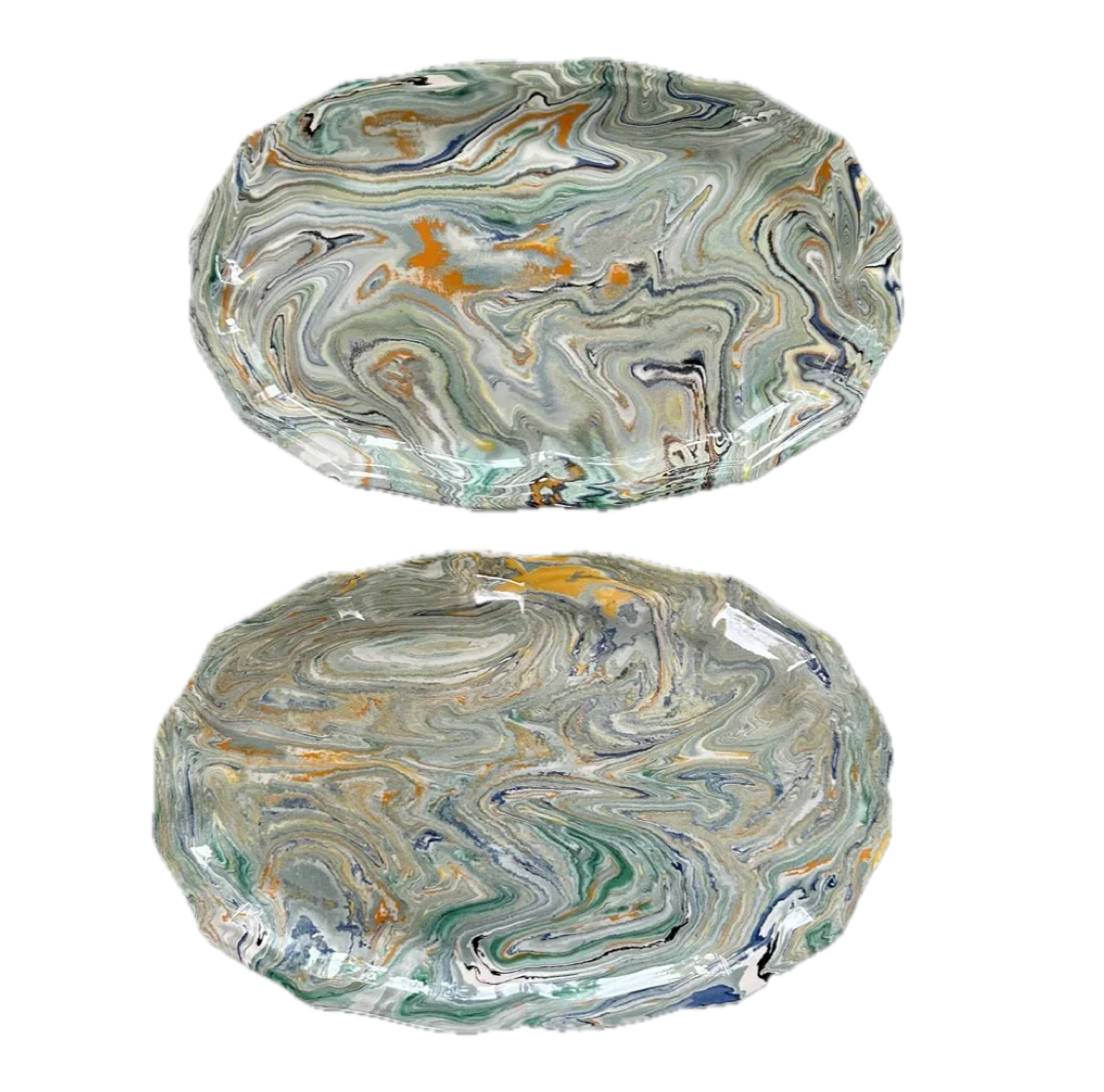 "Aptware is a beautifully marbleized faience pottery, naturally inspired by the colored soils in Apt, a small town in France. Apt's mixed clay ceramics are world-renowned. I was overjoyed when I came across a skilled artisan residing in that region and discovered she is one of the last remaining masters of this art form. I am thrilled to provide access to this highly specialized and sought-after product. However, it is usually considered a very special order. Keep in mind the delivery times range anywhere from 8 weeks at certain times of the year to 8 months at other times. The images displayed under "Aptware from France* are samples of aptware I have seen when visiting the workshops. Please inquire with any questions! We often feature pieces I purchase while in Apt in the shops. However, most aptware sells very quickly, and keeping any of the traditional aptware in stock is difficult.