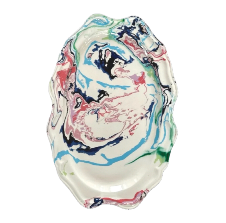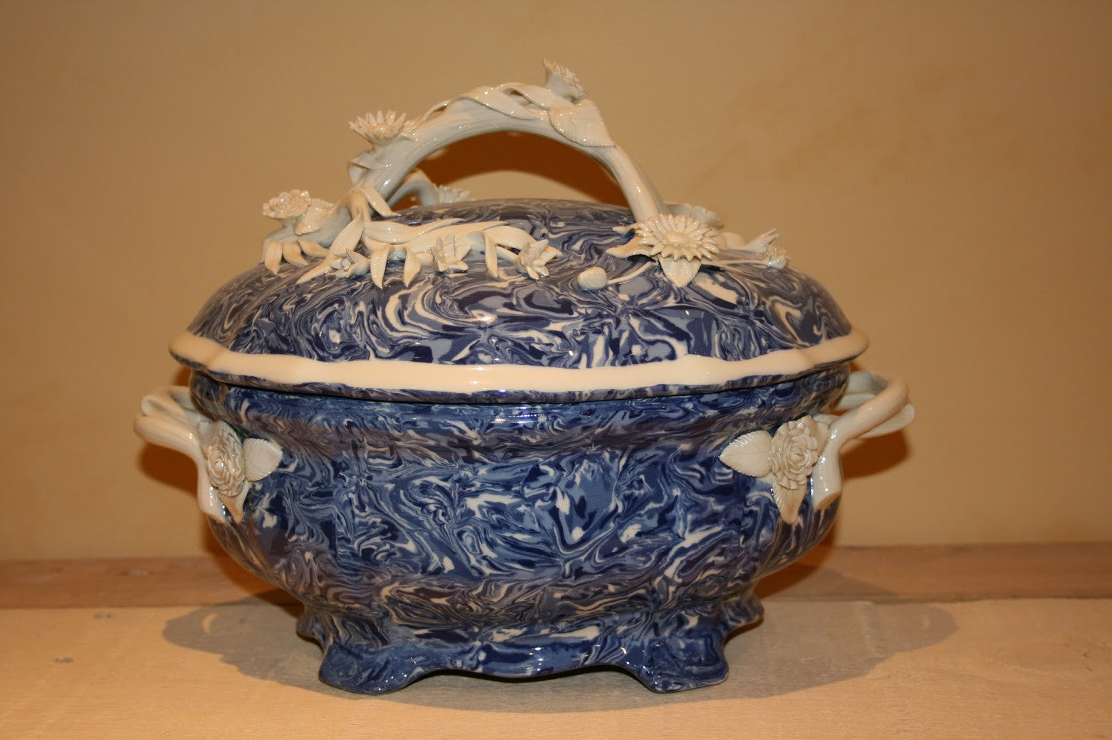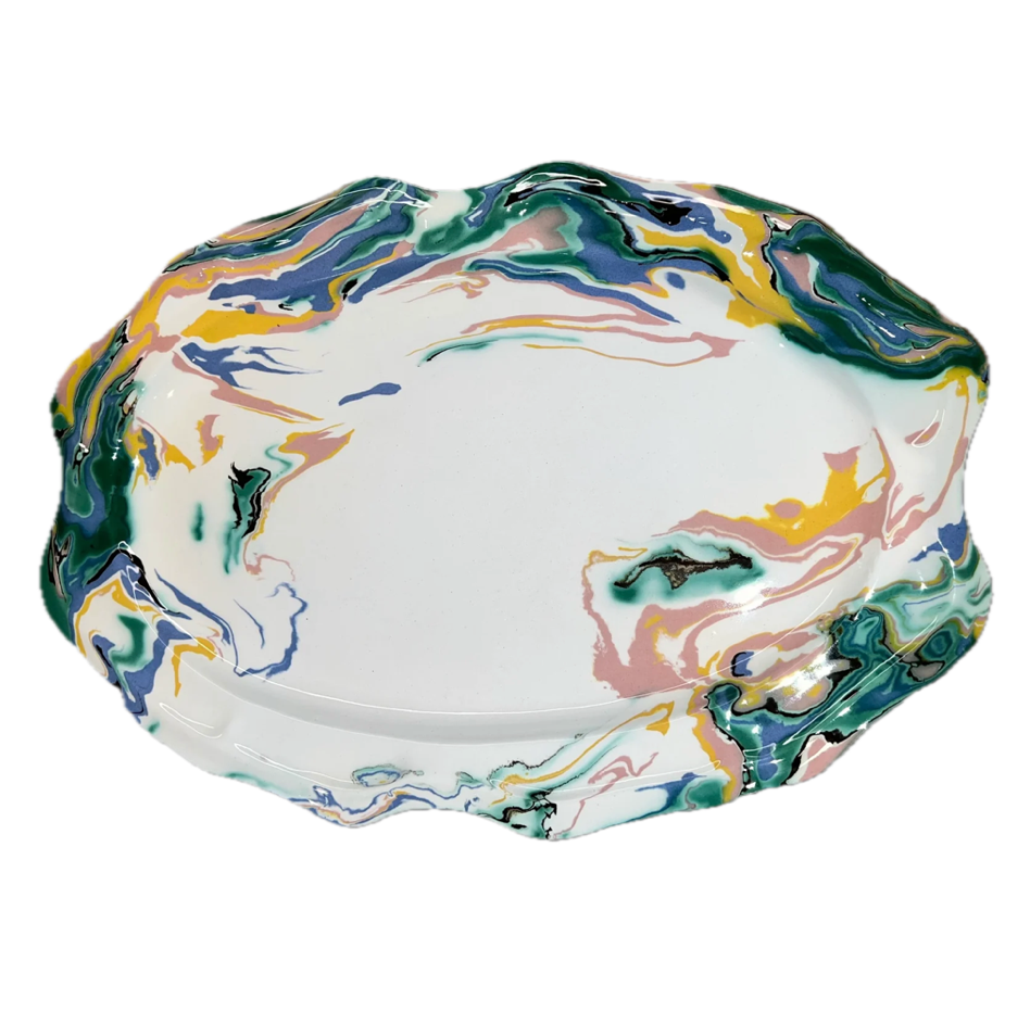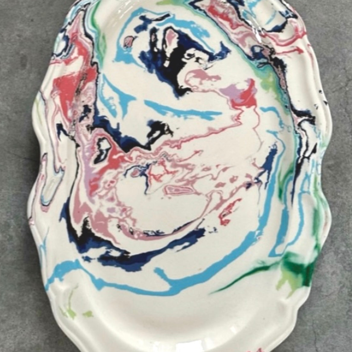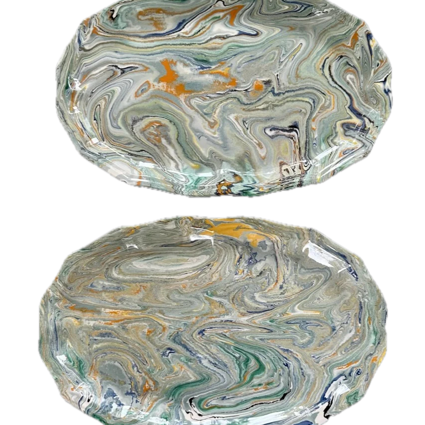 "Aptware is a beautifully marbleized faience pottery, naturally inspired by the colored soils in Apt, a small town in France. Apt's mixed clay ceramics are world-renowned. I was overjoyed when I came across a skilled artisan residing in that region and discovered she is one of the last remaining masters of this art form. I am thrilled to provide access to this highly specialized and sought-after product. However, it is usually considered a very special order. Keep in mind the delivery times range anywhere from 8 weeks at certain times of the year to 8 months at other times. The images displayed under "Aptware from France* are samples of aptware I have seen when visiting the workshops. Please inquire with any questions! We often feature pieces I purchase while in Apt in the shops. However, most aptware sells very quickly, and keeping any of the traditional aptware in stock is difficult.