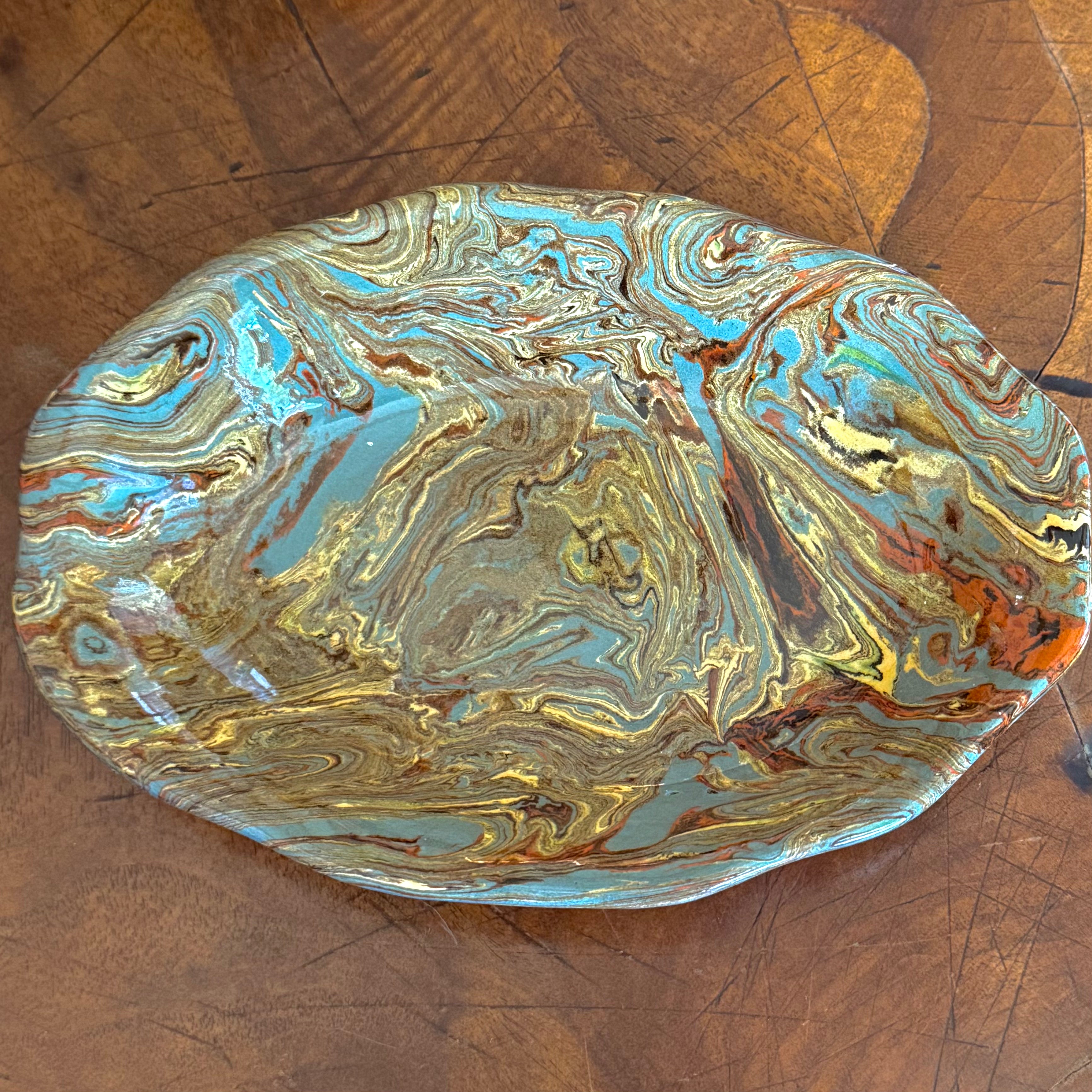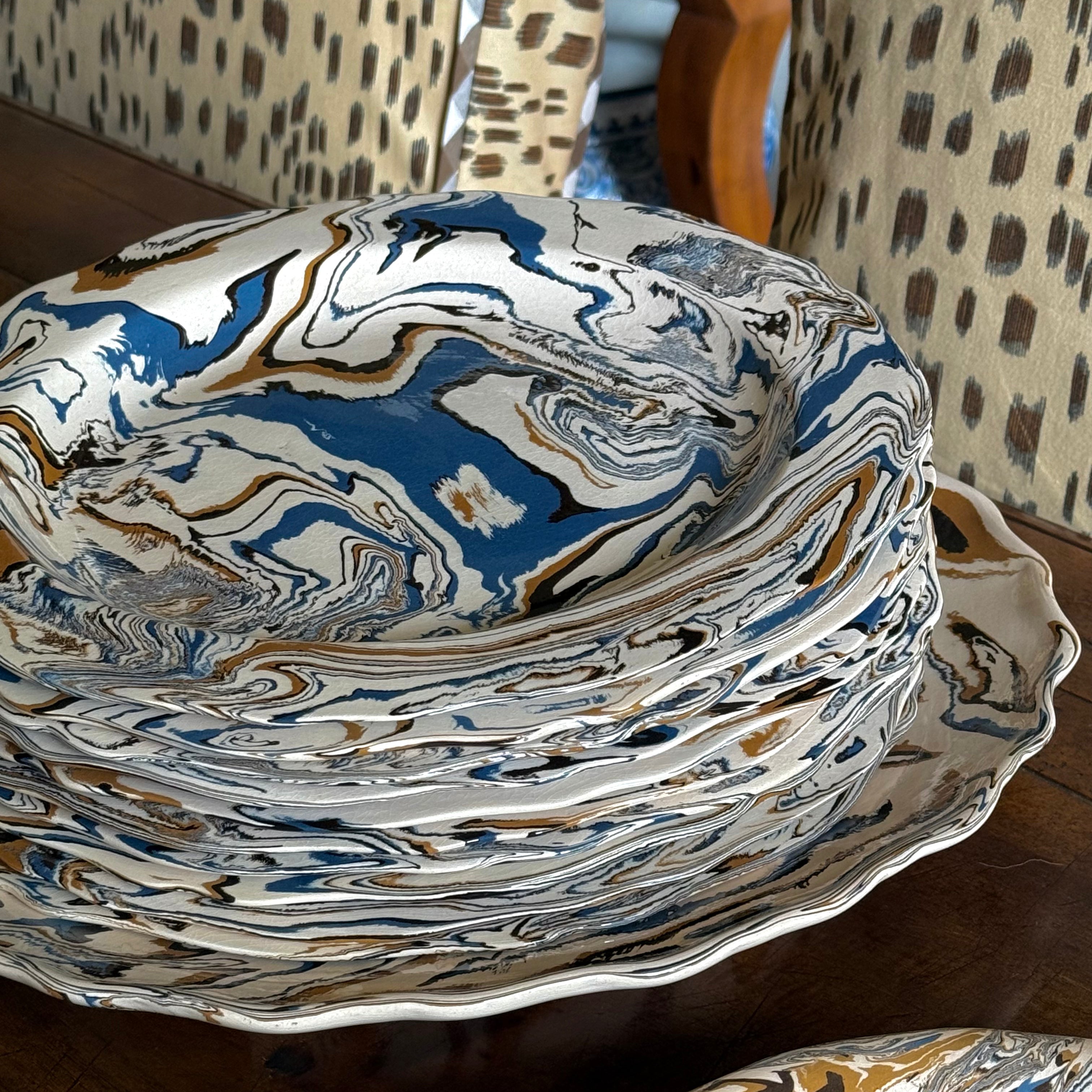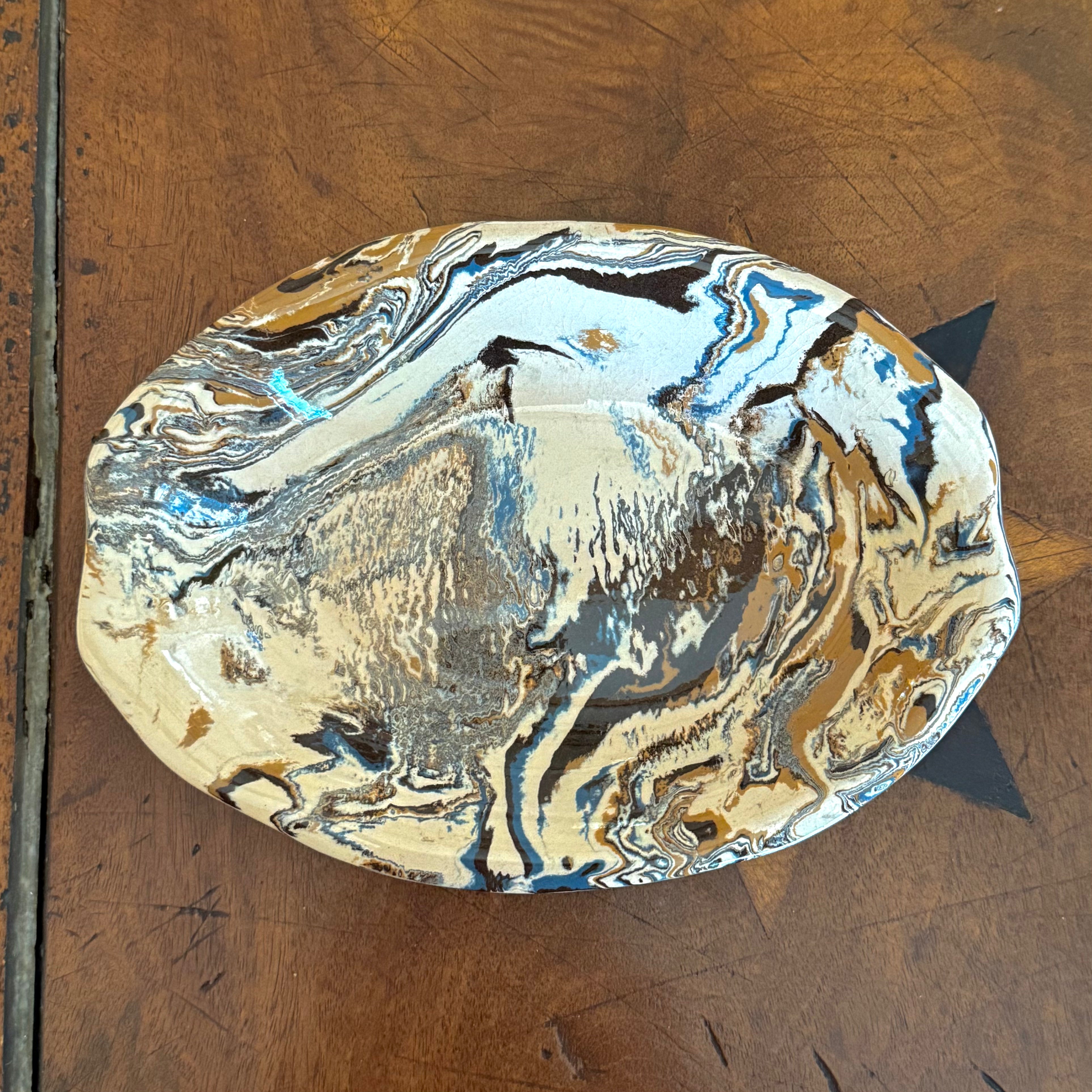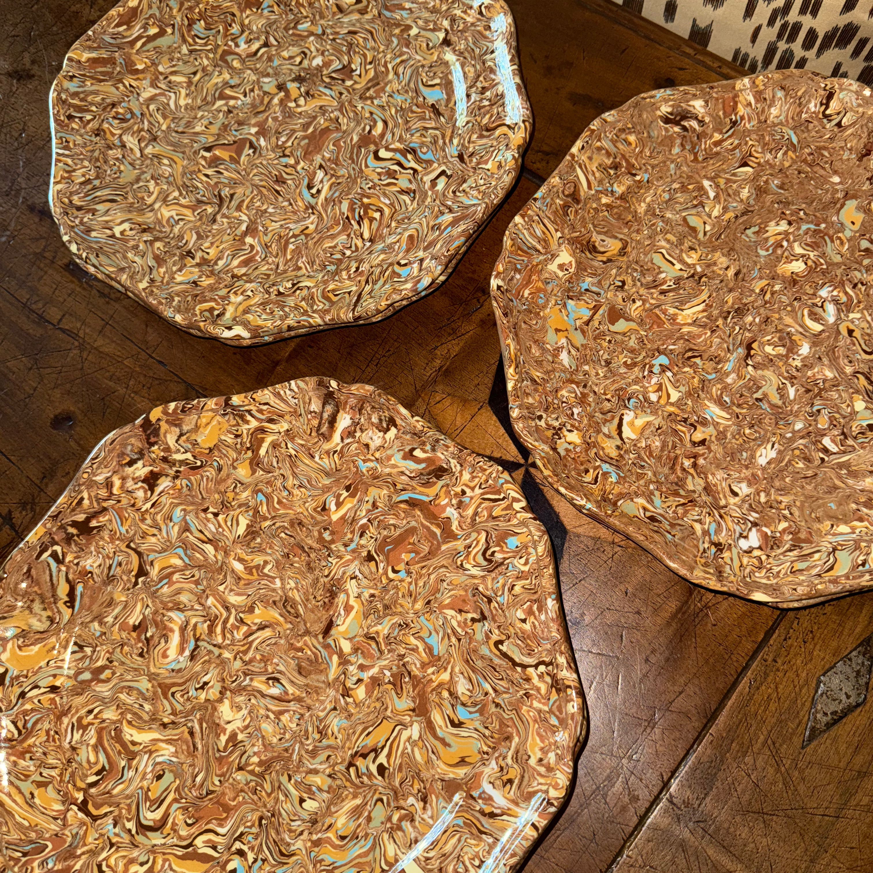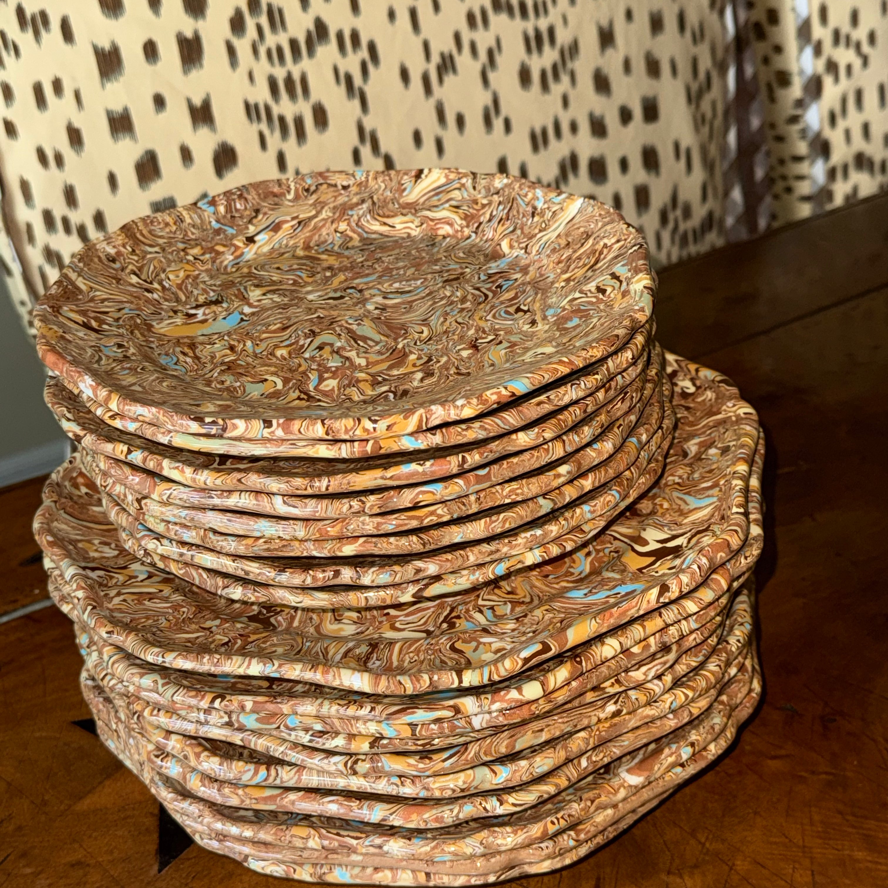 "Aptware is a beautifully marbleized faience pottery, naturally inspired by the colored soils in Apt, a small town in France. Apt's mixed clay ceramics are world-renowned. I was overjoyed when I came across a skilled artisan residing in that region and discovered she is one of the last remaining masters of this art form. I am thrilled to provide access to this highly specialized and sought-after product. However, it is usually considered a very special order. Keep in mind the delivery times range anywhere from 8 weeks at certain times of the year to 8 months at other times. The images displayed under "Aptware from France* are samples of aptware I have seen when visiting the workshops. Please inquire with any questions! We often feature pieces I purchase while in Apt in the shops. However, most aptware sells very quickly, and keeping any of the traditional aptware in stock is difficult.