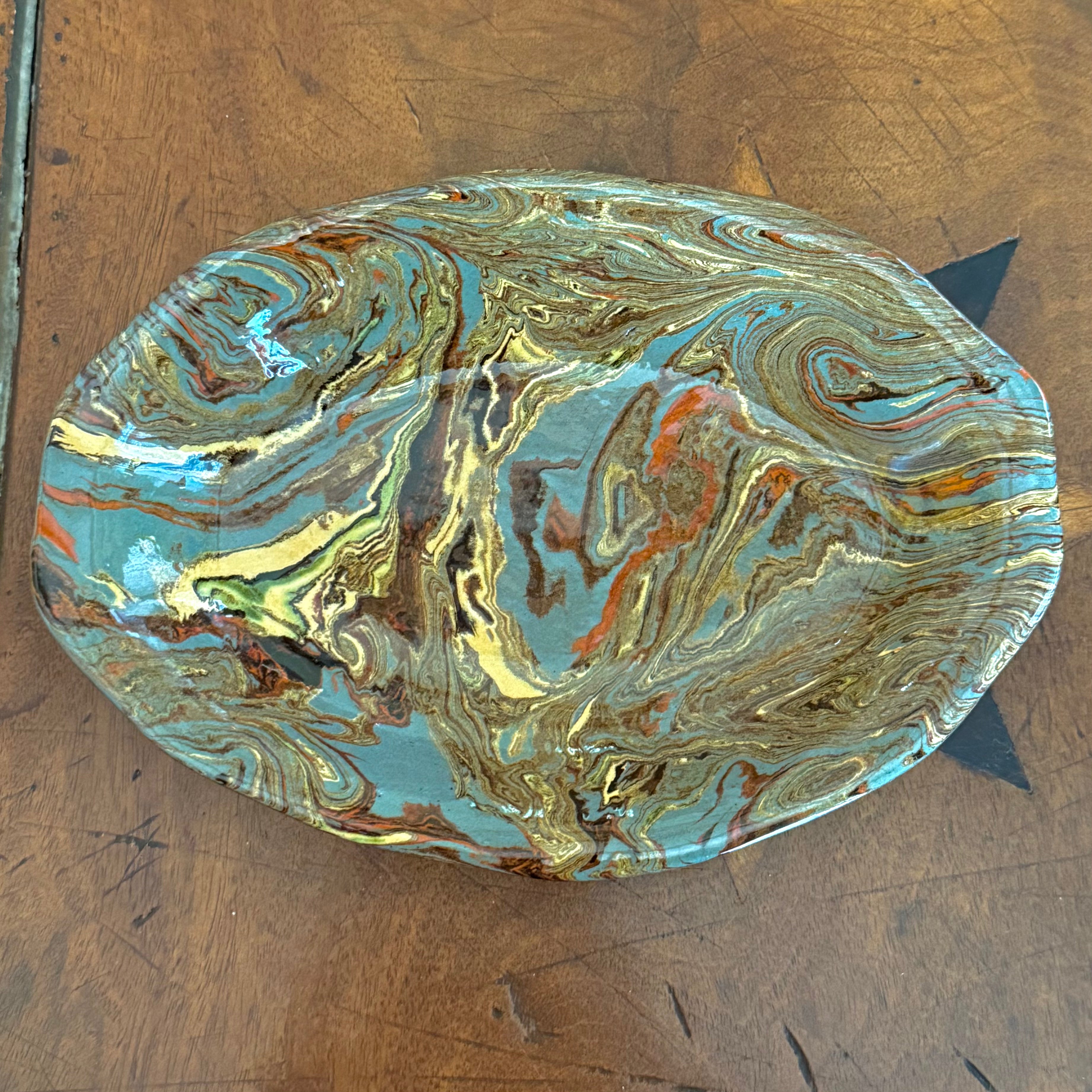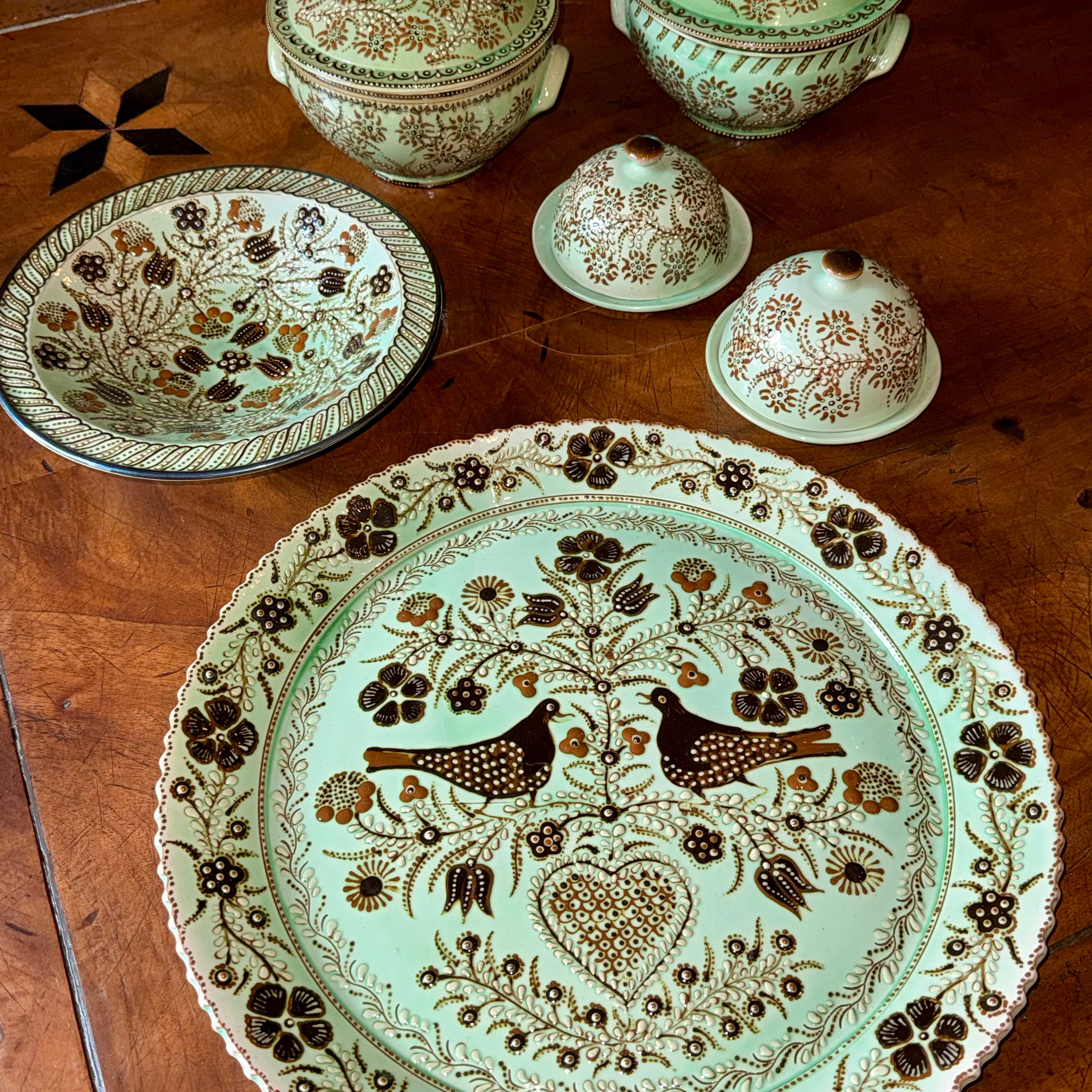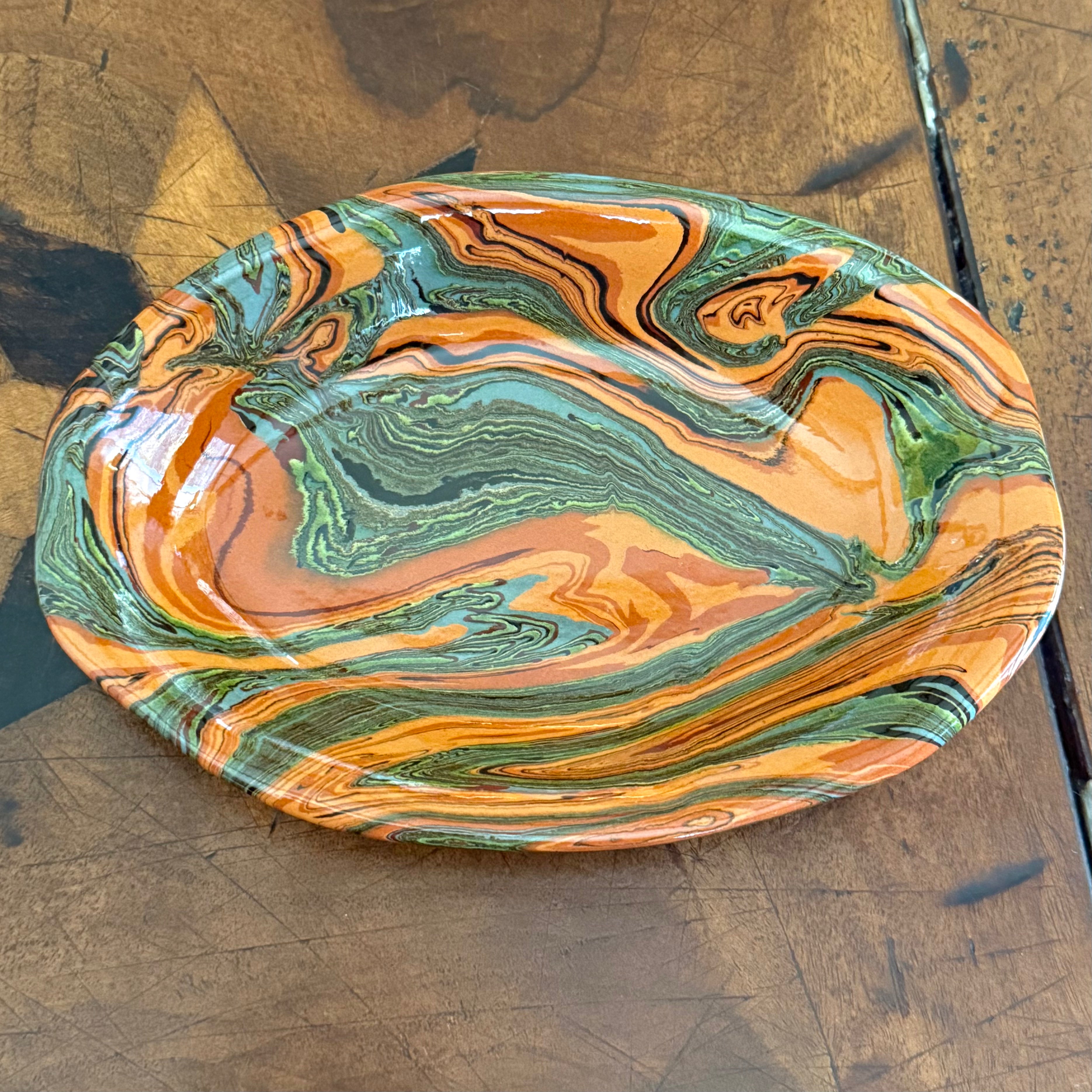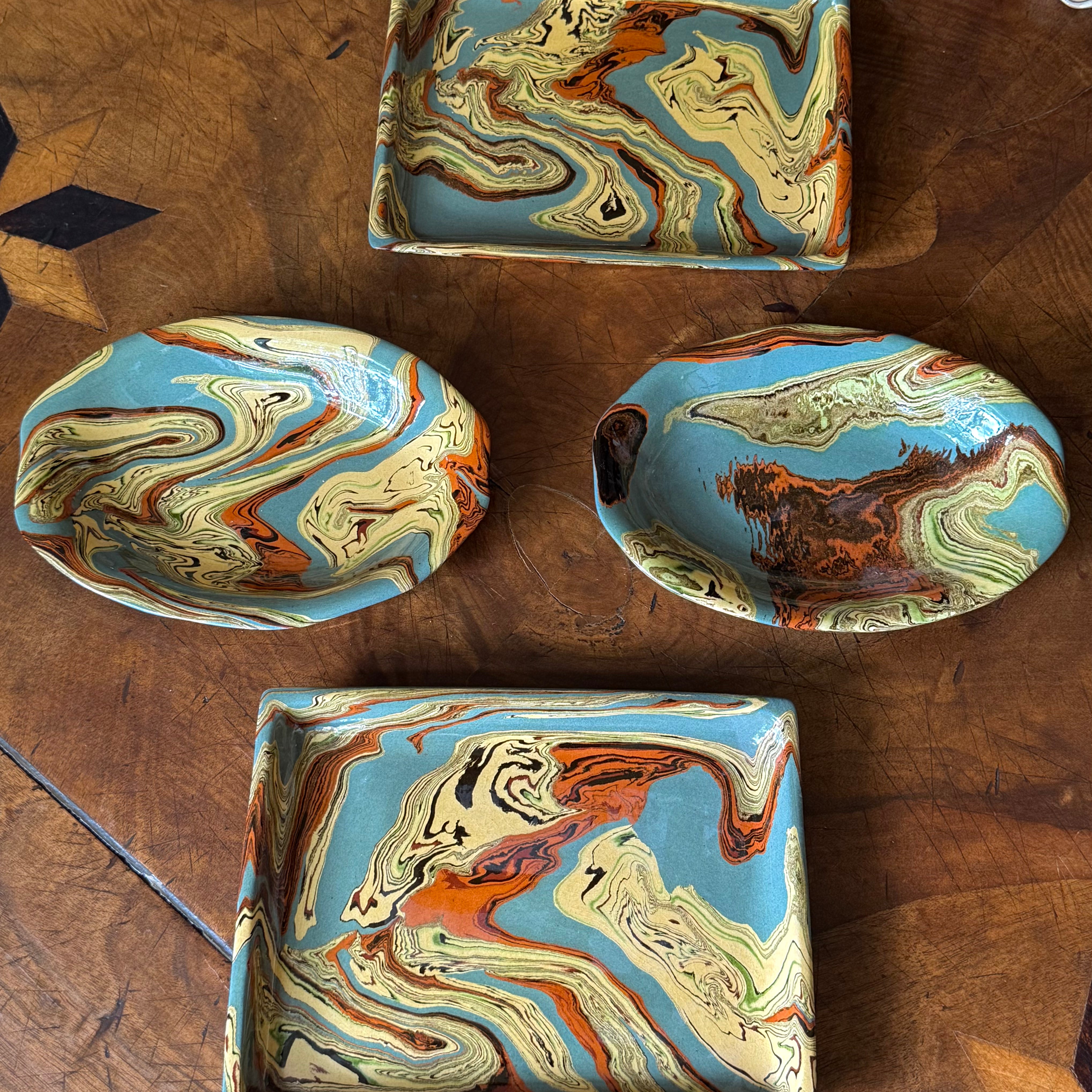 "Aptware is a beautifully marbleized faience pottery, naturally inspired by the colored soils in Apt, a small town in France. Apt's mixed clay ceramics are world-renowned. I was overjoyed when I came across a skilled artisan residing in that region and discovered she is one of the last remaining masters of this art form. I am thrilled to provide access to this highly specialized and sought-after product. However, it is usually considered a very special order. Keep in mind the delivery times range anywhere from 8 weeks at certain times of the year to 8 months at other times. The images displayed under "Aptware from France* are samples of aptware I have seen when visiting the workshops. Please inquire with any questions! We often feature pieces I purchase while in Apt in the shops. However, most aptware sells very quickly, and keeping any of the traditional aptware in stock is difficult.