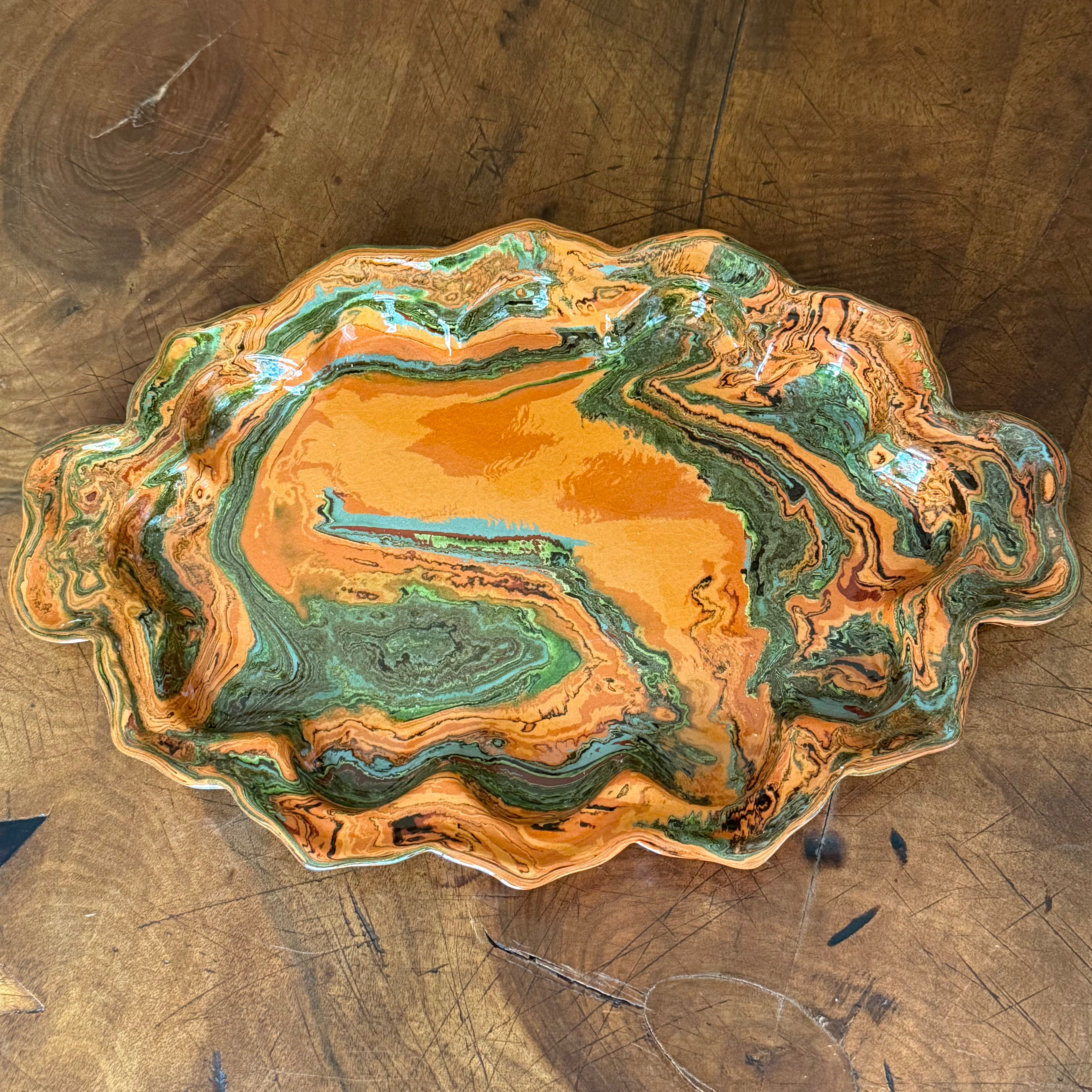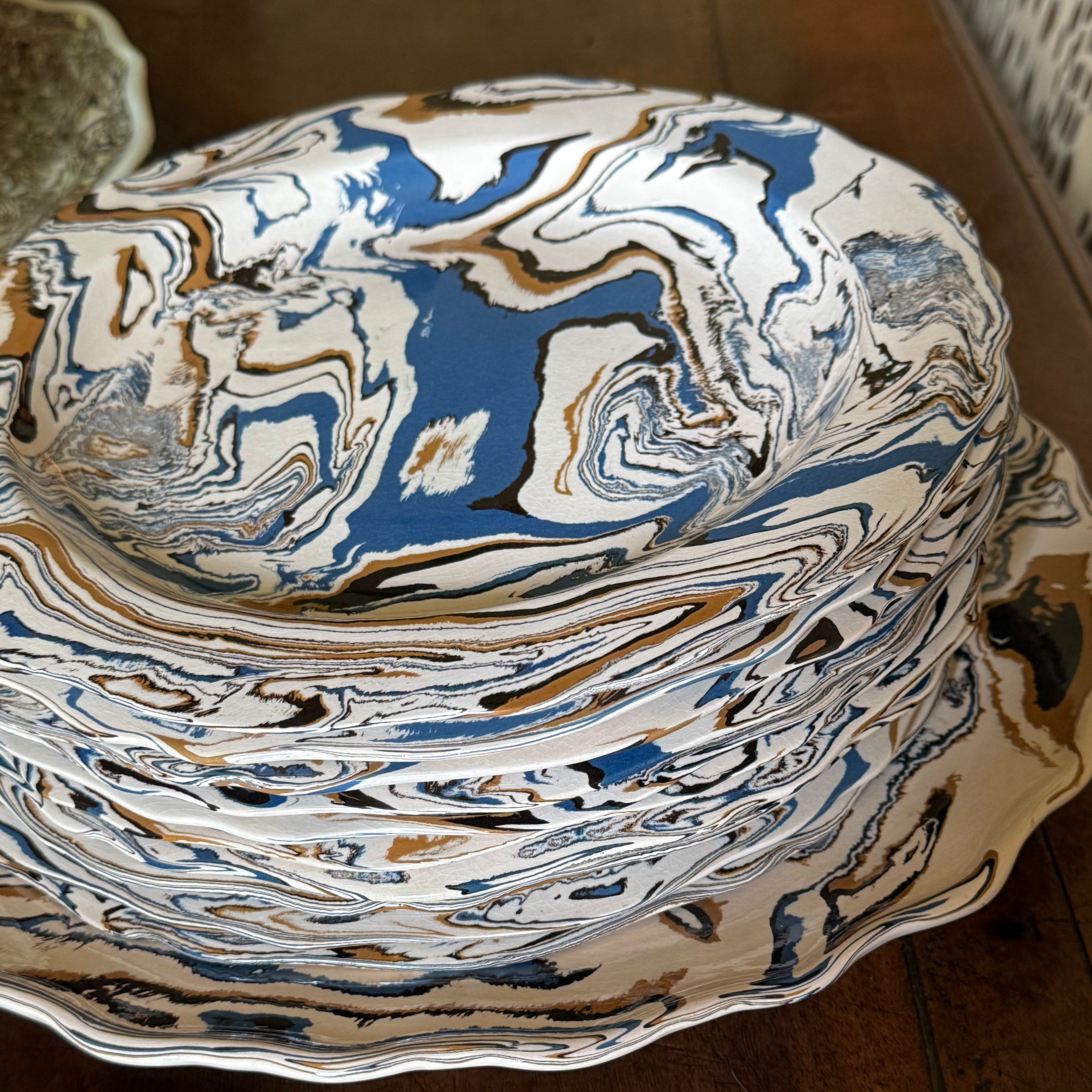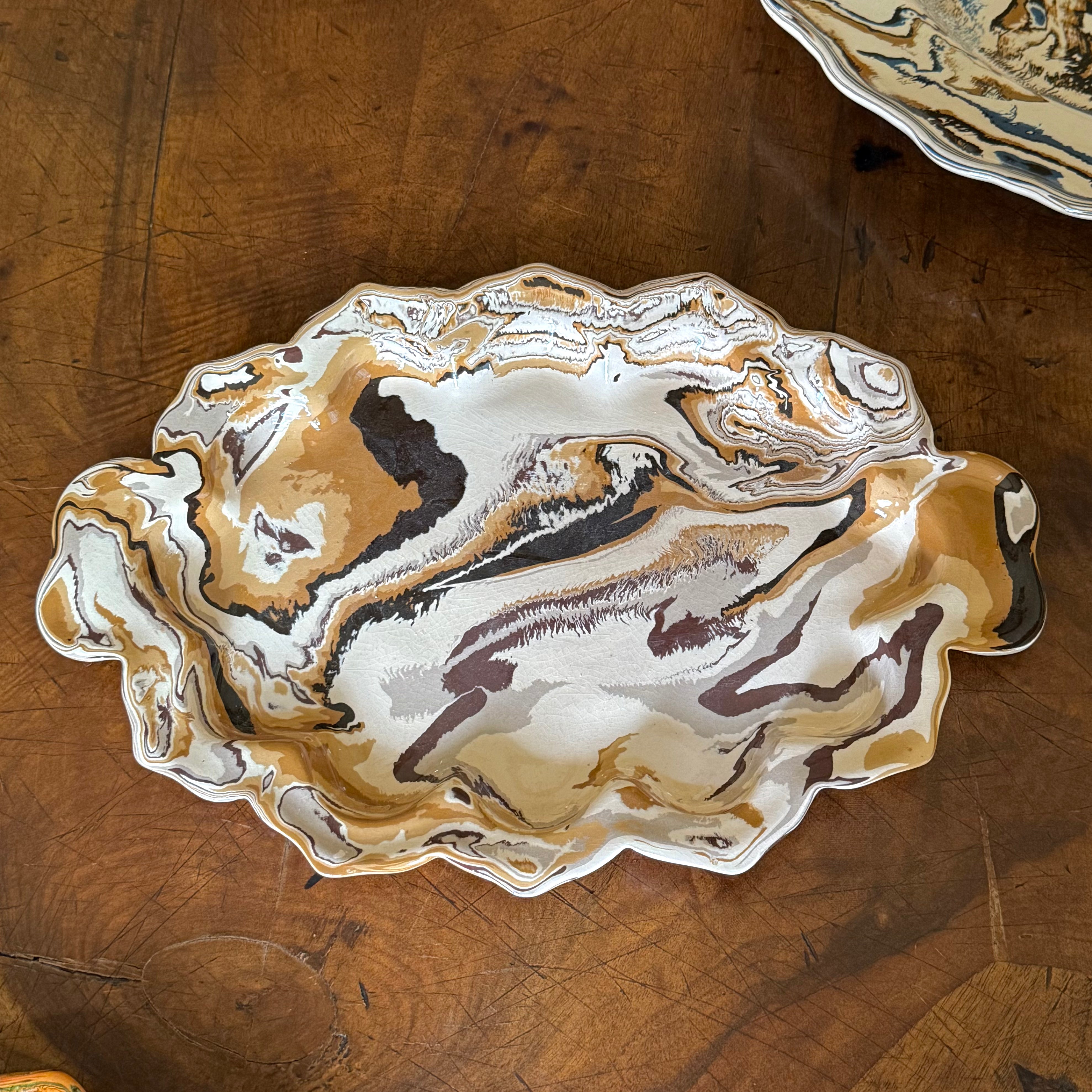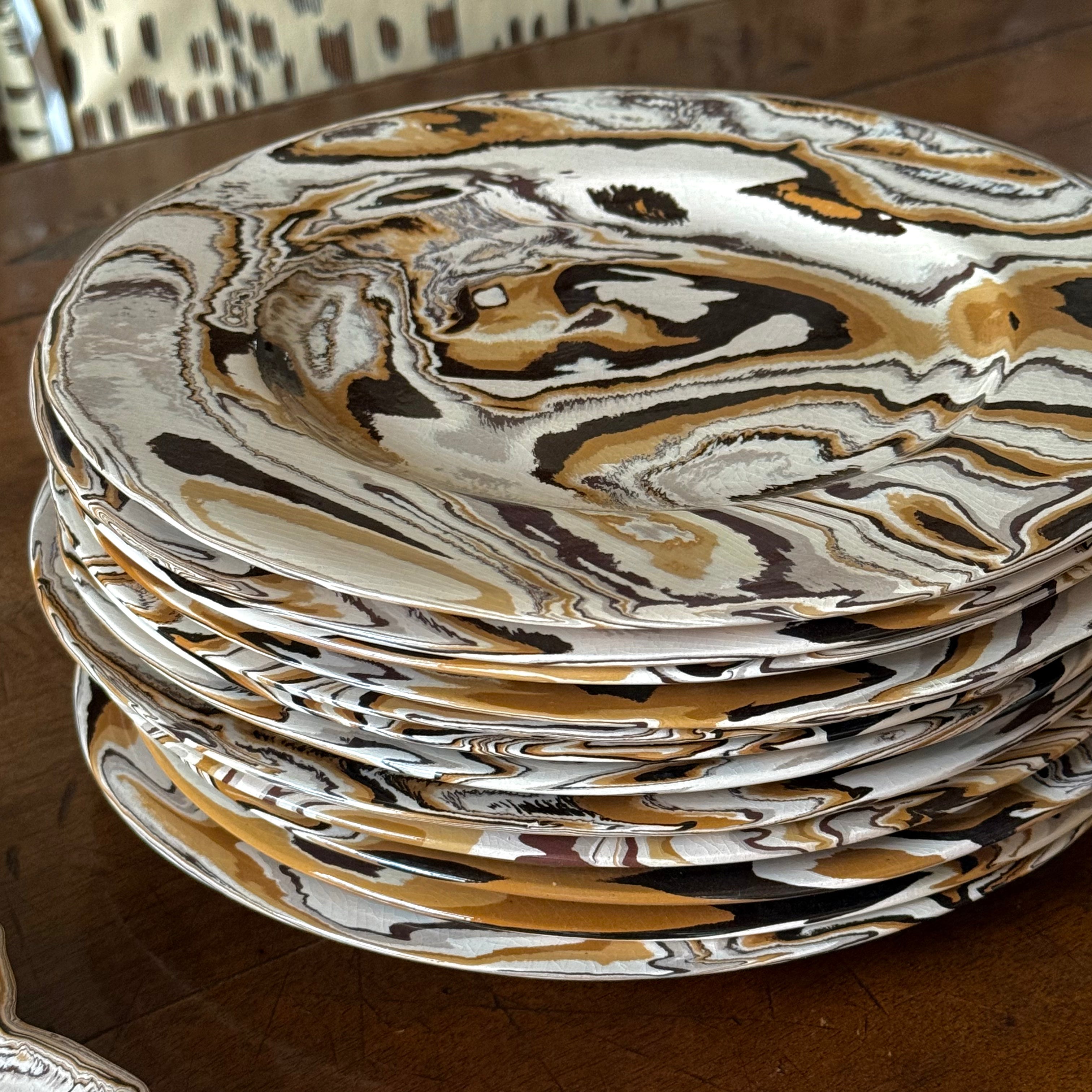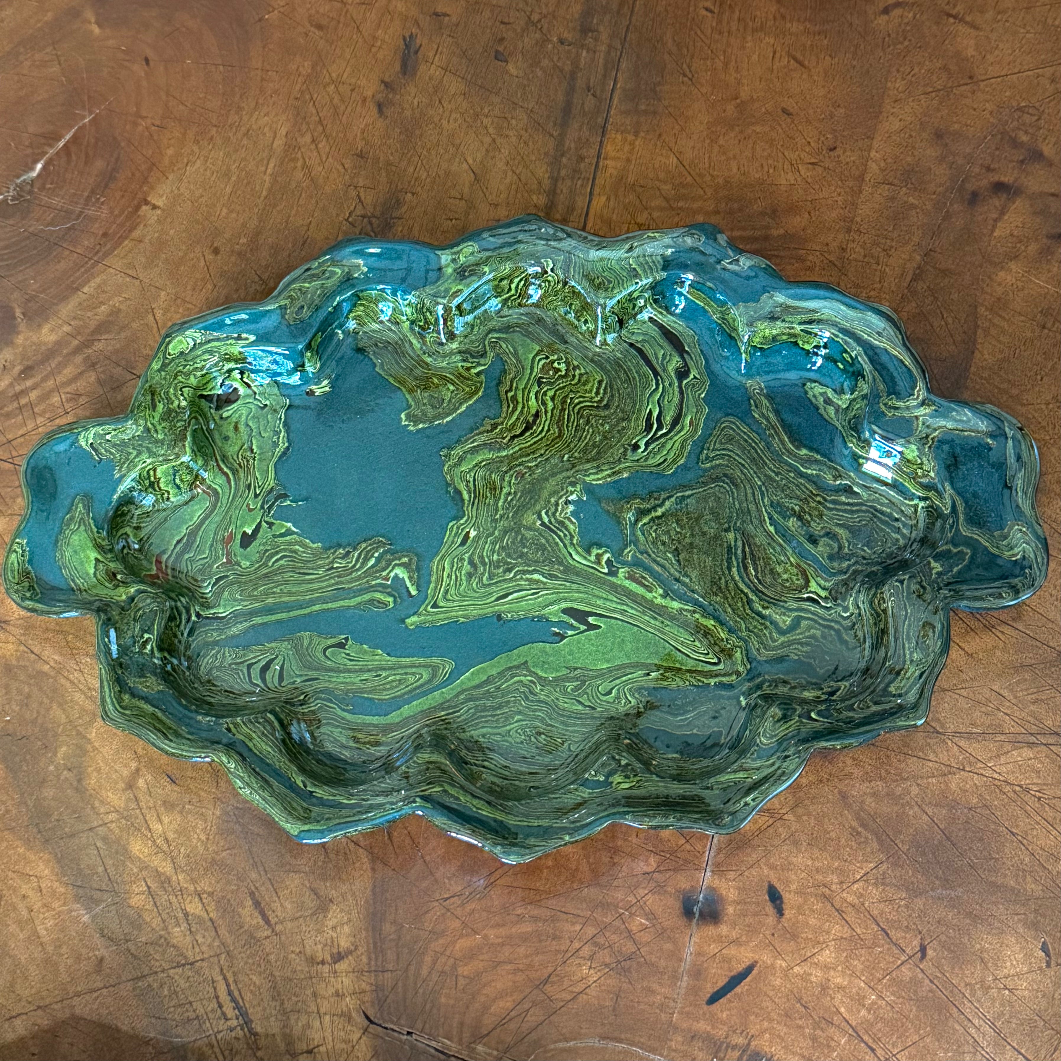 "Aptware is a beautifully marbleized faience pottery, naturally inspired by the colored soils in Apt, a small town in France. Apt's mixed clay ceramics are world-renowned. I was overjoyed when I came across a skilled artisan residing in that region and discovered she is one of the last remaining masters of this art form. I am thrilled to provide access to this highly specialized and sought-after product. However, it is usually considered a very special order. Keep in mind the delivery times range anywhere from 8 weeks at certain times of the year to 8 months at other times. The images displayed under "Aptware from France* are samples of aptware I have seen when visiting the workshops. Please inquire with any questions! We often feature pieces I purchase while in Apt in the shops. However, most aptware sells very quickly, and keeping any of the traditional aptware in stock is difficult.