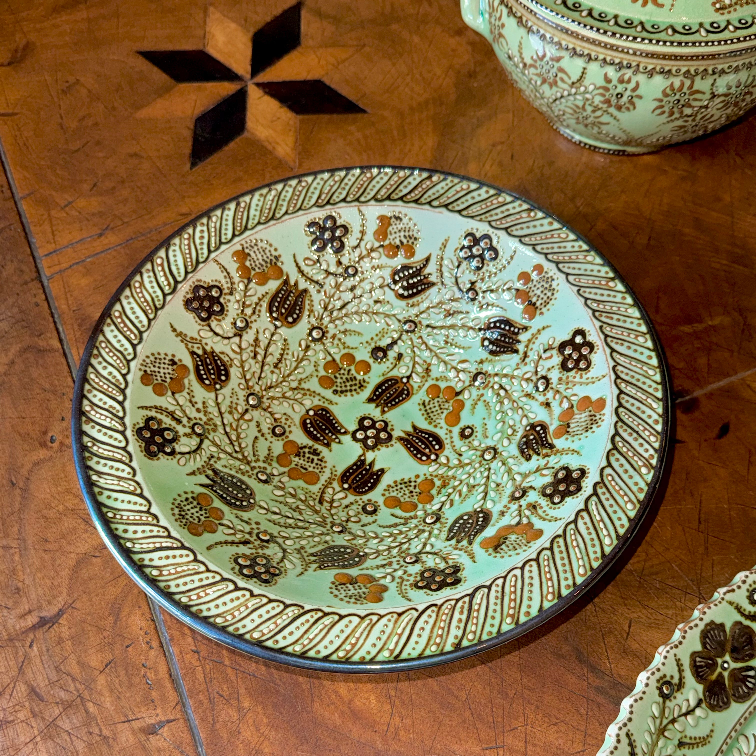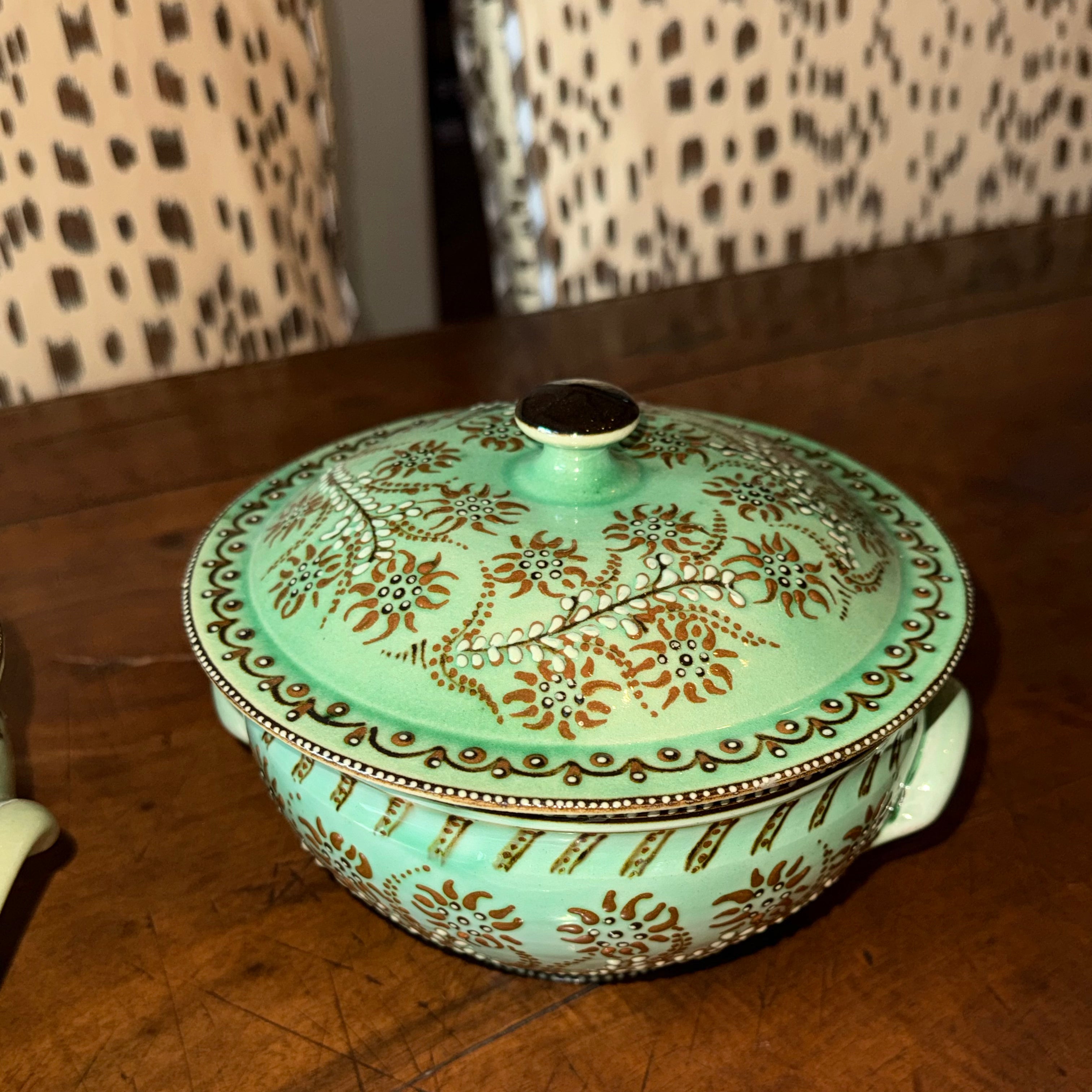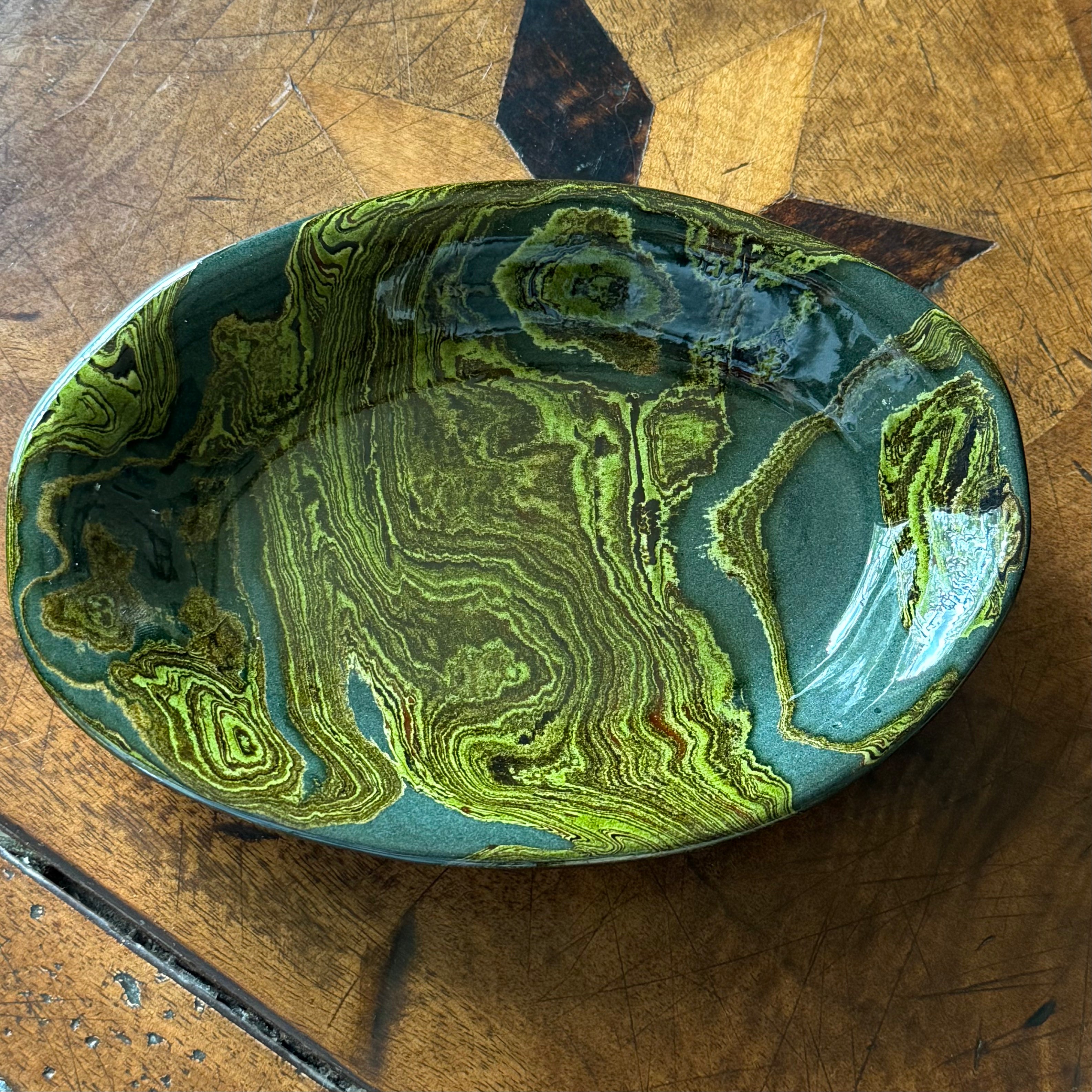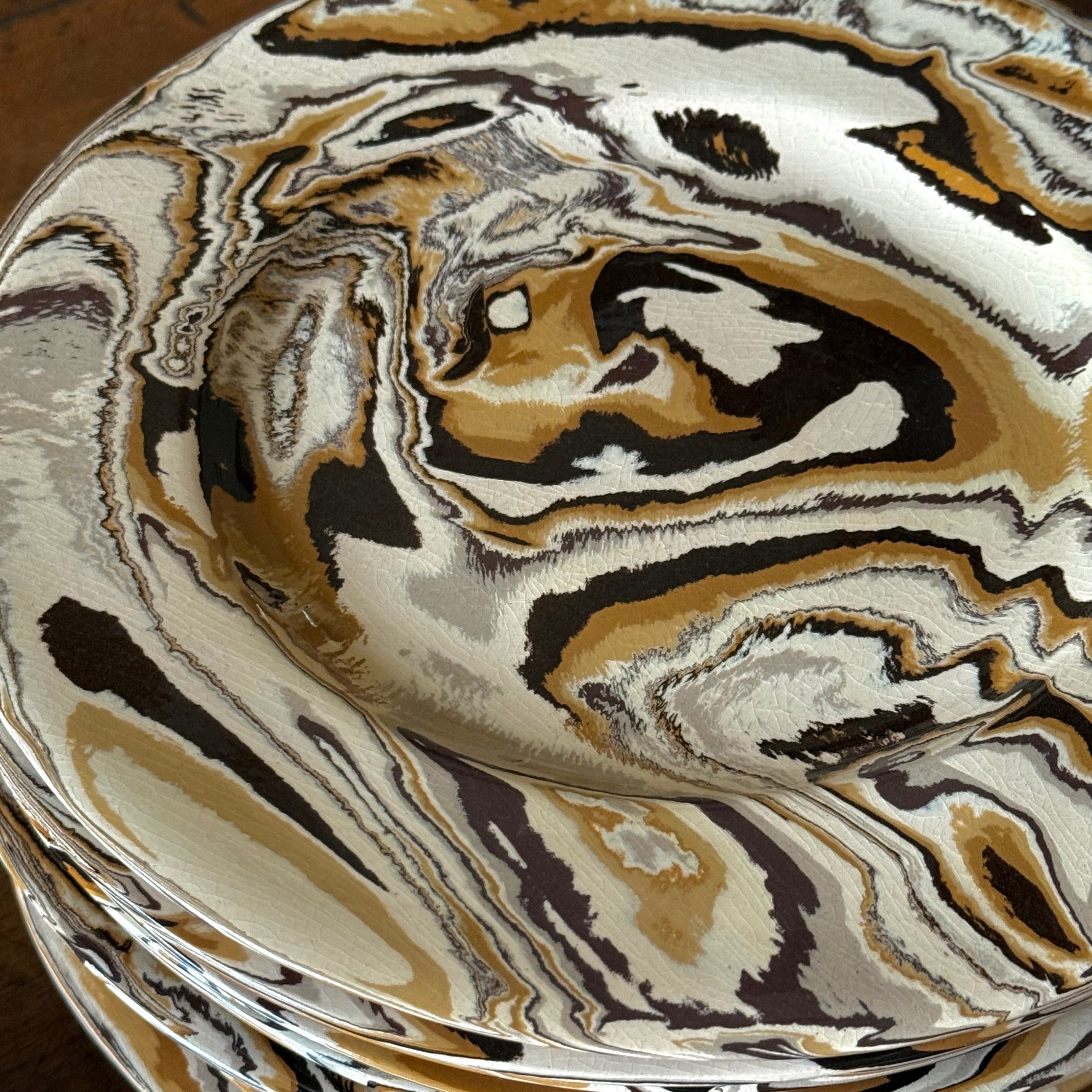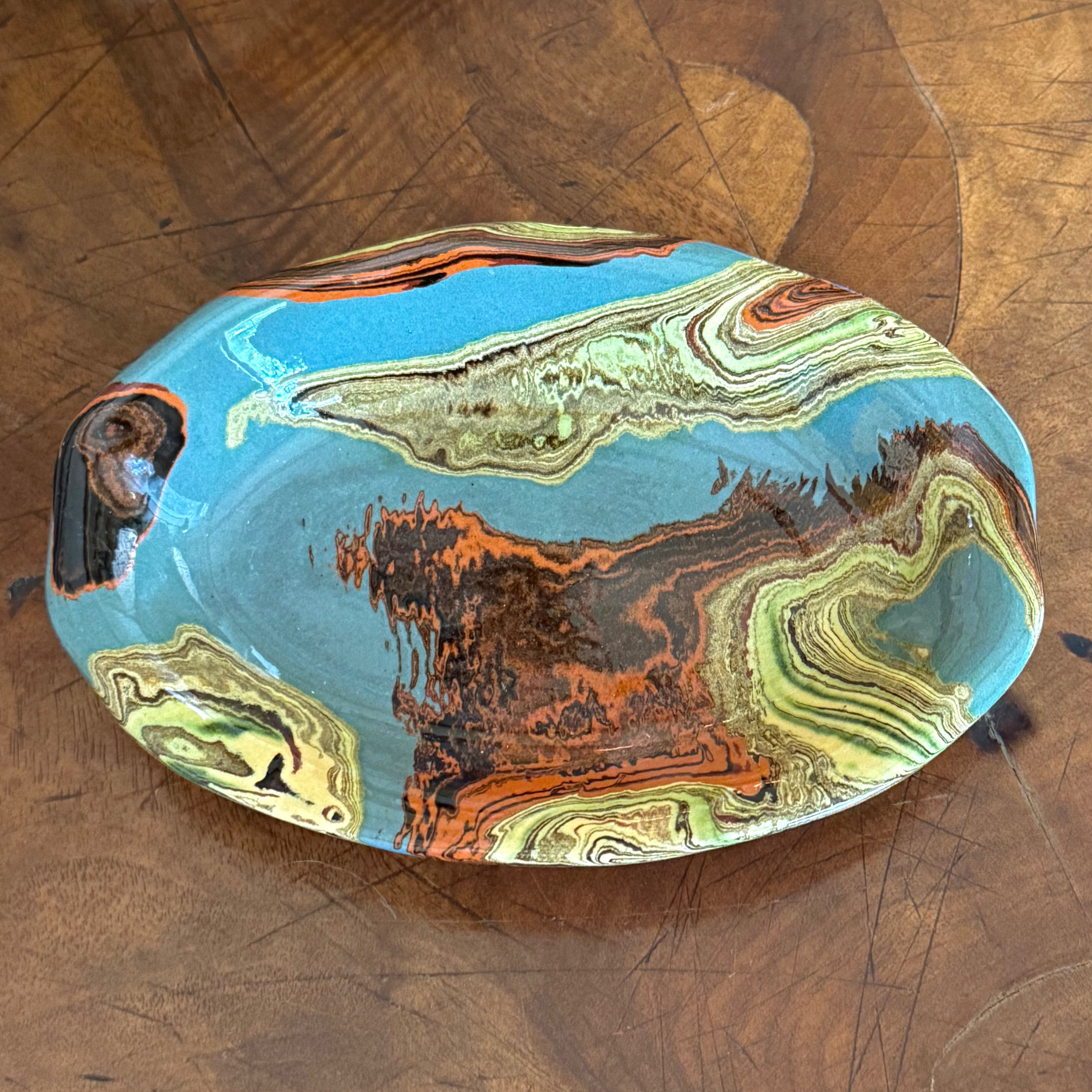 "Aptware is a beautifully marbleized faience pottery, naturally inspired by the colored soils in Apt, a small town in France. Apt's mixed clay ceramics are world-renowned. I was overjoyed when I came across a skilled artisan residing in that region and discovered she is one of the last remaining masters of this art form. I am thrilled to provide access to this highly specialized and sought-after product. However, it is usually considered a very special order. Keep in mind the delivery times range anywhere from 8 weeks at certain times of the year to 8 months at other times. The images displayed under "Aptware from France* are samples of aptware I have seen when visiting the workshops. Please inquire with any questions! We often feature pieces I purchase while in Apt in the shops. However, most aptware sells very quickly, and keeping any of the traditional aptware in stock is difficult.