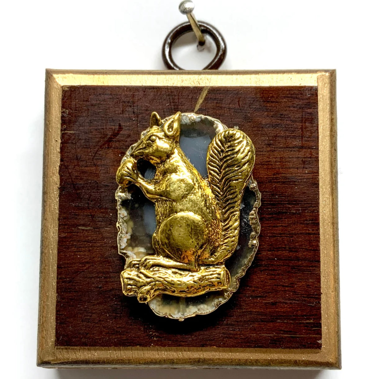 Wooden Frame with Squirrel on Agate