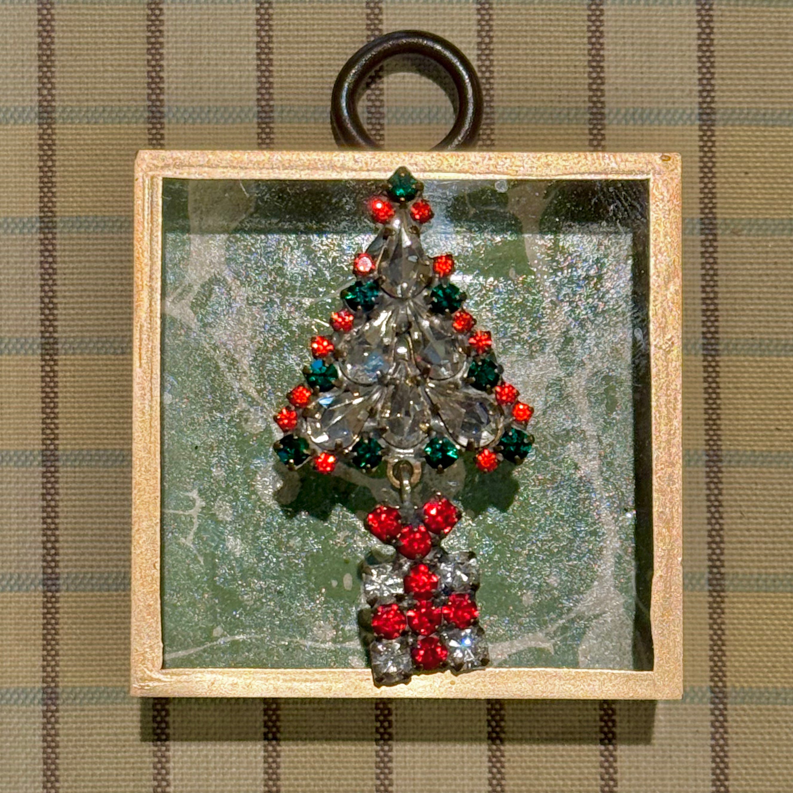 Acrylic Frame with Czech Christmas Tree on Marbled Paper / Slight Imperfections