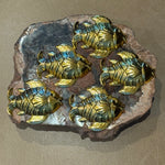 Trace Mayer uses antique frame fragments from 1860-80 to form charming and interesting shapes. In the center, various ornaments are showcased, the first of which was Napoleon's Bee. What has transpired over the years is a phenomenon anyone and everyone can get excited about and be a part of. Bees have expanded to include many other gems, including other animals, insects, and even personal items such as a medal or a unique family heirloom. Small antique objects are also showcased, including horse brass, pre-Columbian fragments, or small cameos.