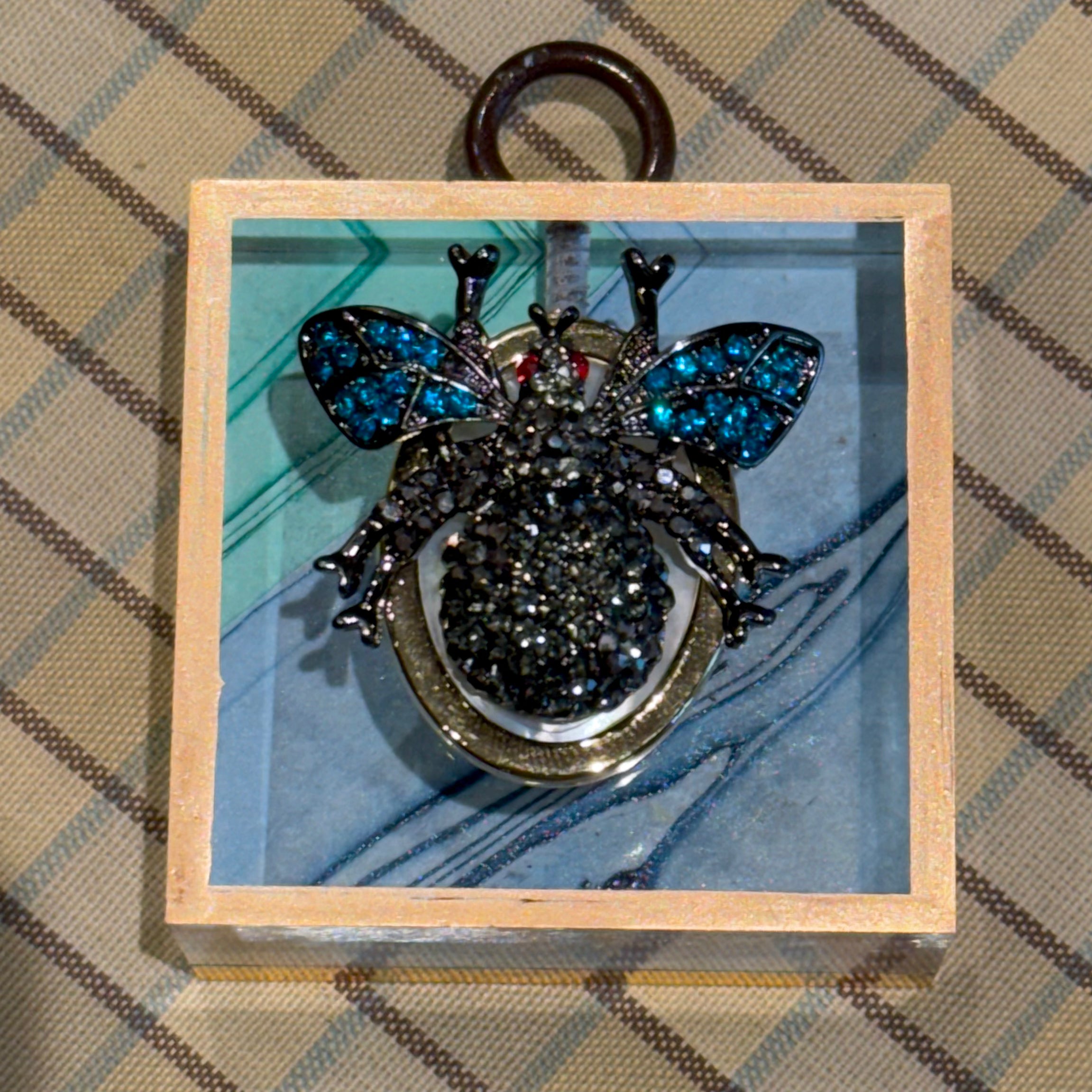 Acrylic Frame with Sparkle Insect on Marbled Paper / Slight Imperfections