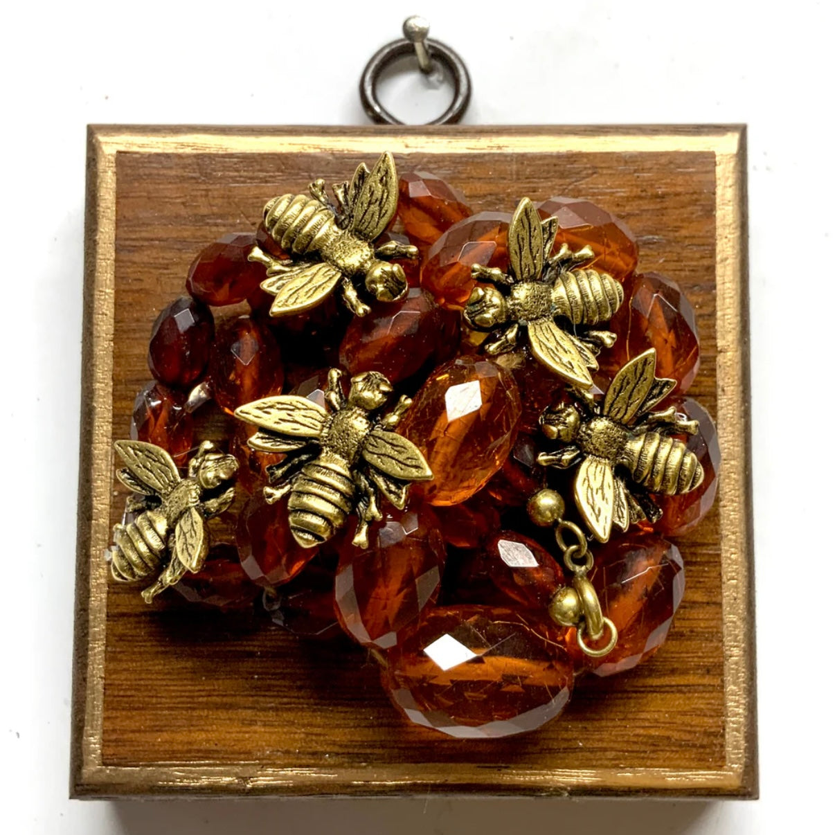 Trace Mayer uses antique frame fragments from 1860-80 to form charming and interesting shapes. In the center, various ornaments are showcased, the first of which was Napoleon's Bee. What has transpired over the years is a phenomenon anyone and everyone can get excited about and be a part of. Bees have expanded to include many other gems, including other animals, insects, and even personal items such as a medal or a unique family heirloom. Small antique objects are also showcased, including horse brass, pre-Columbian fragments, or small cameos.