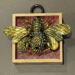 Trace Mayer uses antique frame fragments from 1860-80 to form charming and interesting shapes. In the center, various ornaments are showcased, the first of which was Napoleon's Bee. What has transpired over the years is a phenomenon anyone and everyone can get excited about and be a part of. Bees have expanded to include many other gems, including other animals, insects, and even personal items such as a medal or a unique family heirloom. Small antique objects are also showcased, including horse brass, pre-Columbian fragments, or small cameos.