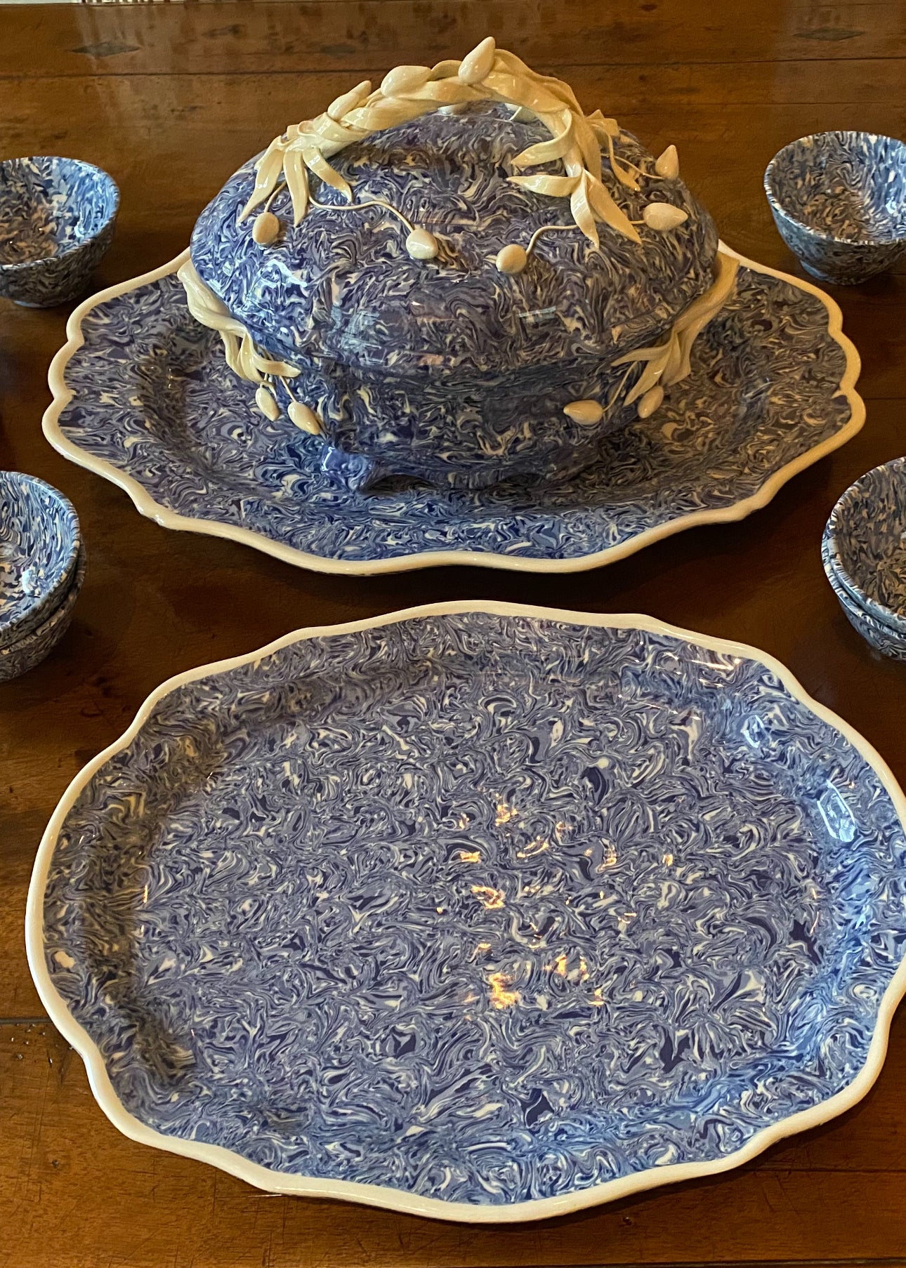 Aptware is a beautifully marbleized faience pottery, naturally inspired by the colored soils in Apt, a small town in France. Apt's mixed clay ceramics are world-renowned. I was overjoyed when I came across a skilled artisan residing in that region and discovered she is one of the last remaining masters of this art form. I am thrilled to provide access to this highly specialized and sought-after product. However, it is usually considered a very special order. Keep in mind the delivery times range anywhere from 8 weeks at certain times of the year to 8 months at other times. The images displayed under *Aptware from France* are samples of aptware I have seen when visiting the workshops. Please inquire with any questions! We often feature pieces I purchase while in Apt in the shops. However, most aptware sells very quickly, and keeping any of the traditional aptware in stock is hard.