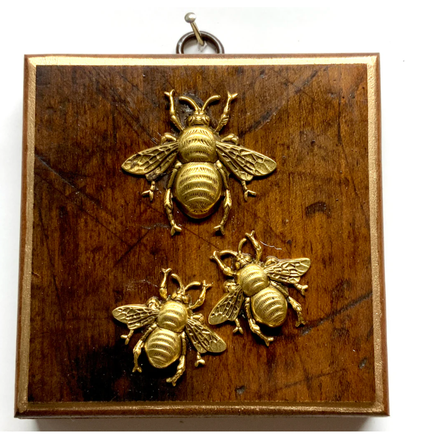 Trace Mayer uses antique frame fragments from 1860-80 to form charming and interesting shapes. In the center, various ornaments are showcased, the first of which was Napoleon's Bee. What has transpired over the years is a phenomenon anyone and everyone can get excited about and be a part of. Bees have expanded to include many other gems, including other animals, insects, and even personal items such as a medal or a unique family heirloom. Small antique objects are also showcased, including horse brass, pre-Columbian fragments, or small cameos.
