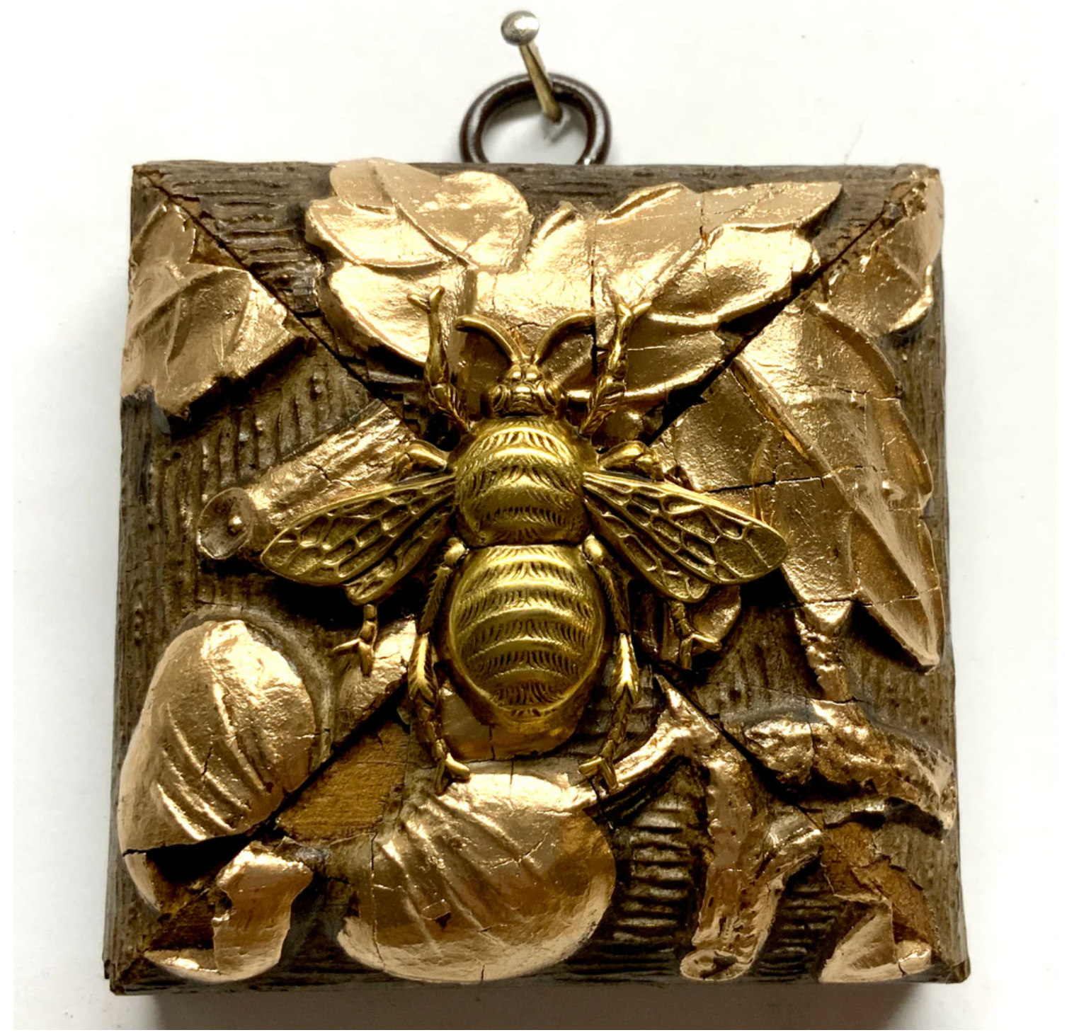 Trace Mayer uses antique frame fragments from 1860-80 to form charming and interesting shapes. In the center, various ornaments are showcased, the first of which was Napoleon's Bee. What has transpired over the years is a phenomenon anyone and everyone can get excited about and be a part of. Bees have expanded to include many other gems, including other animals, insects, and even personal items such as a medal or a unique family heirloom. Small antique objects are also showcased, including horse brass, pre-Columbian fragments, or small cameos.