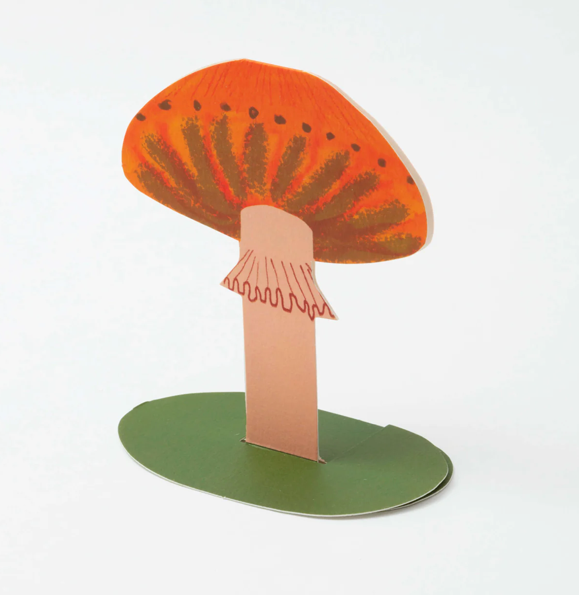A fun-loving toadstool to brighten your day! This bright, playful toadstool card folds out to become free standing on its own grassy-looking base. Send this happy fellow to your favourite fungi lover and add a little magic to their day.