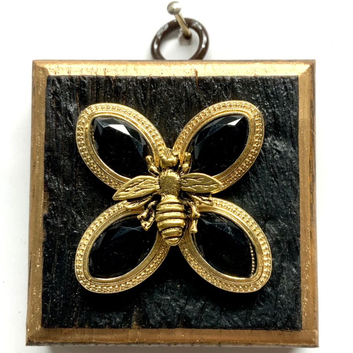 Trace Mayer uses antique frame fragments from 1860-80 to form charming and interesting shapes. In the center, various ornaments are showcased, the first of which was Napoleon's Bee. What has transpired over the years is a phenomenon anyone and everyone can get excited about and be a part of. Bees have expanded to include many other gems, including other animals, insects, and even personal items such as a medal or a unique family heirloom. Small antique objects are also showcased, including horse brass, pre-Columbian fragments, or small cameos.