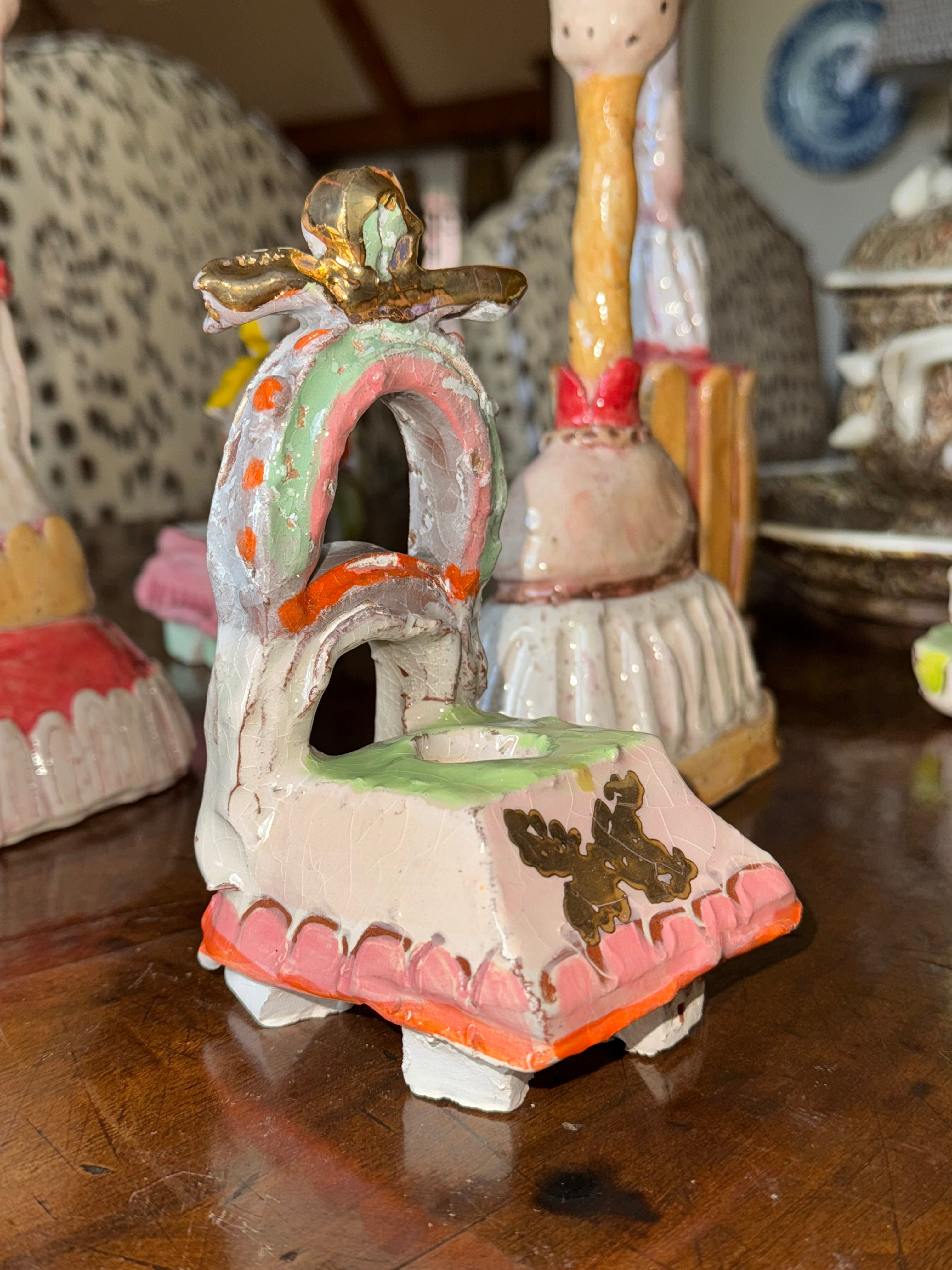 This hand-crafted ceramic votive features 24 carat gold and a charming design with butterflies... the essence of spring! The sherbet colors and darling designs are perfect to add some cheer to any space. A single candle comes with each votive, but you can experiment and try different shapes, or slip a faux or dried flower in the opening for fun!