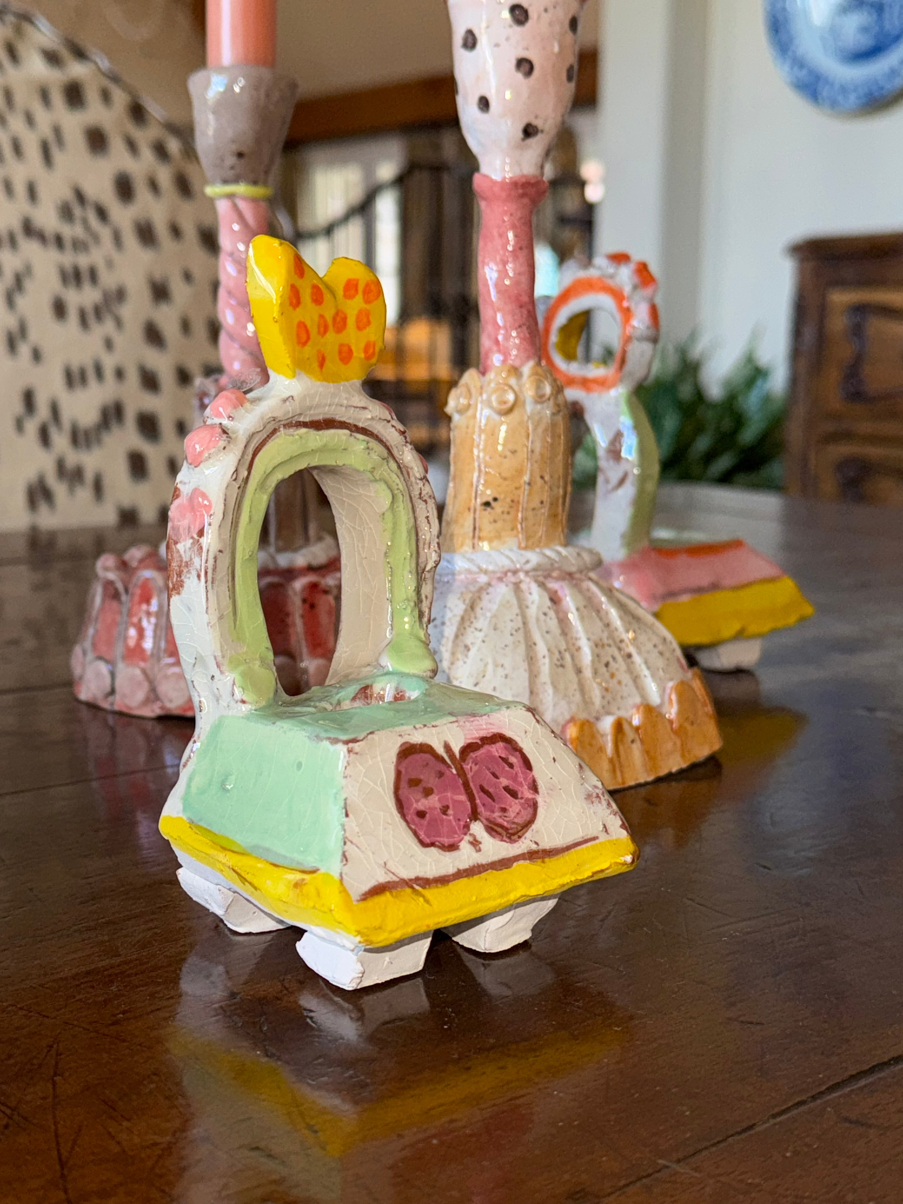 This hand-crafted ceramic votive features 24 carat gold and a charming design with butterflies... the essence of spring! The sherbet colors and darling designs are perfect to add some cheer to any space. A single candle comes with each votive, but you can experiment and try different shapes, or slip a faux or dried flower in the opening for fun!