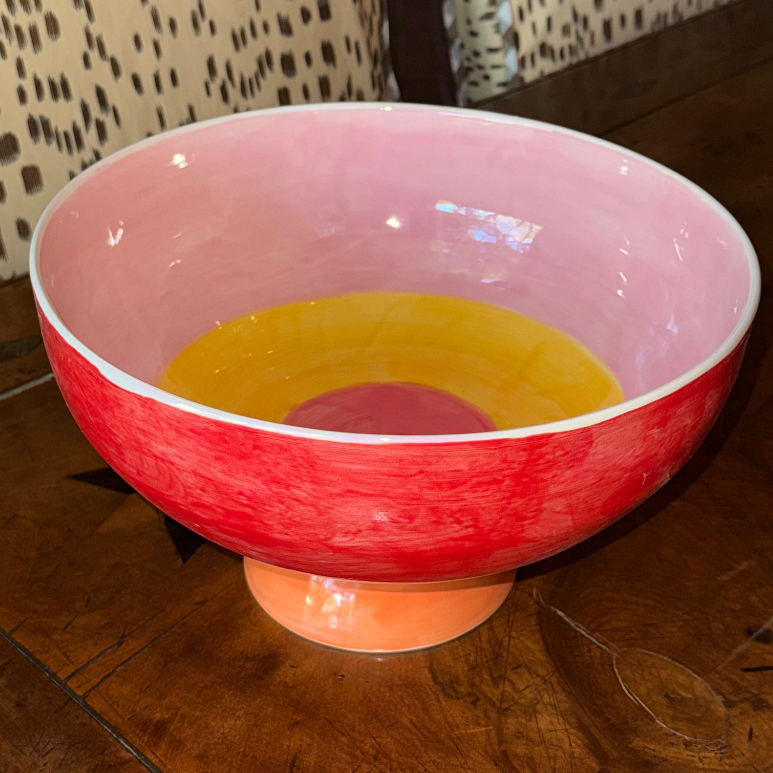 Elevate your table with the Color Field Footed Fruit Bowl in Candyland—a stunning 12" x 7" bowl designed to showcase your freshest fruits with flair.