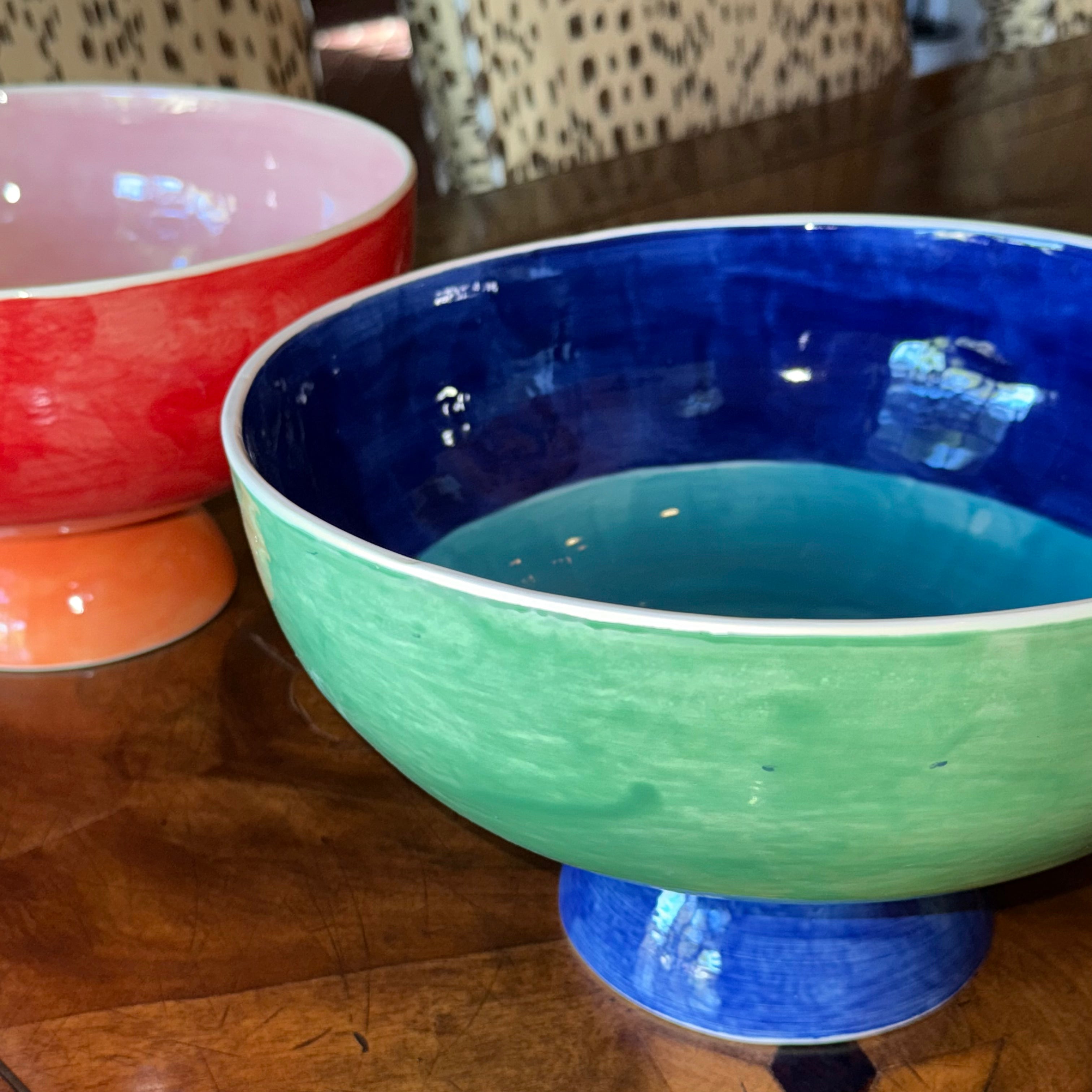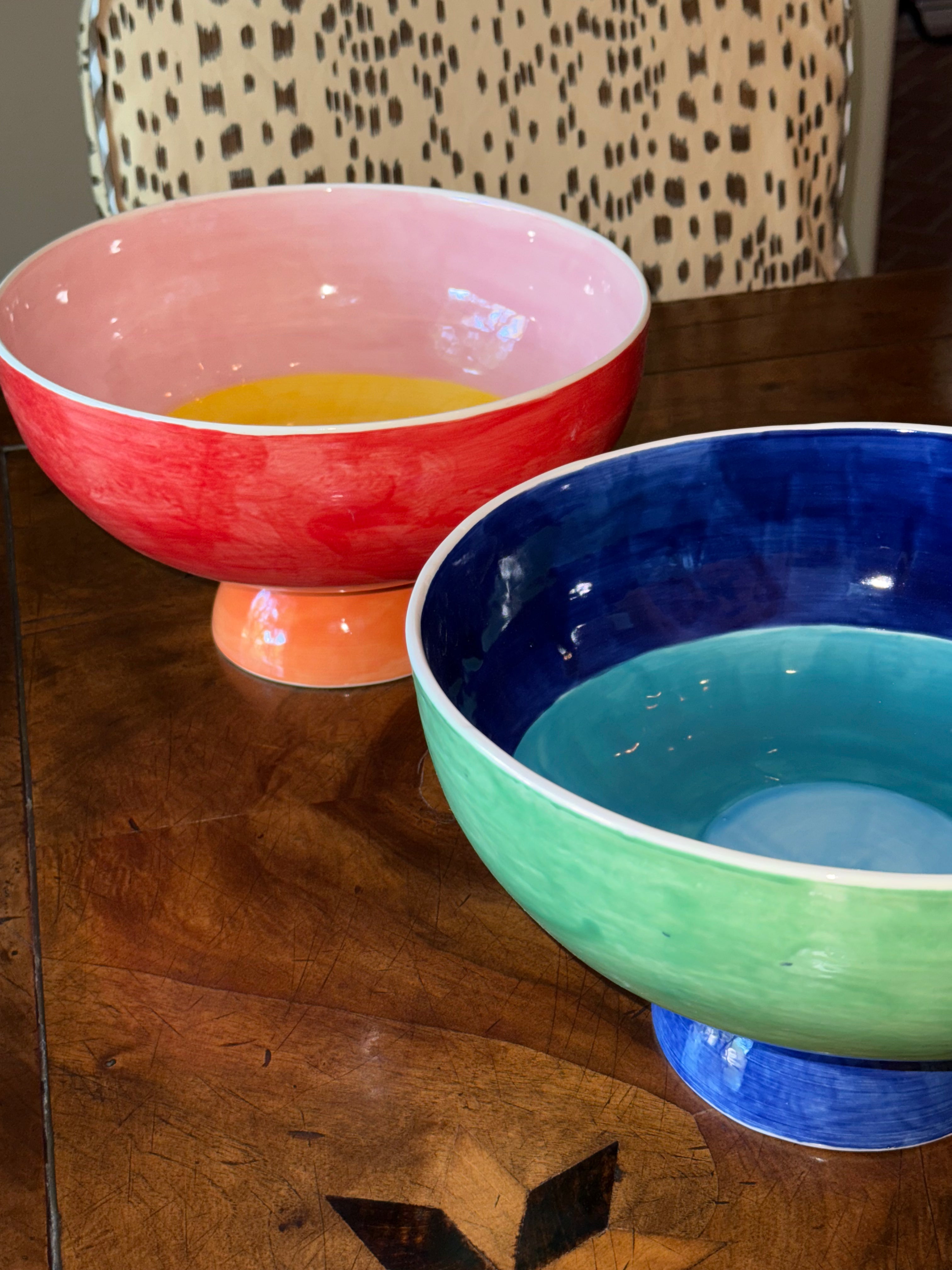 Elevate your table with the Color Field Footed Fruit Bowl in Candyland—a stunning 12" x 7" bowl designed to showcase your freshest fruits with flair.