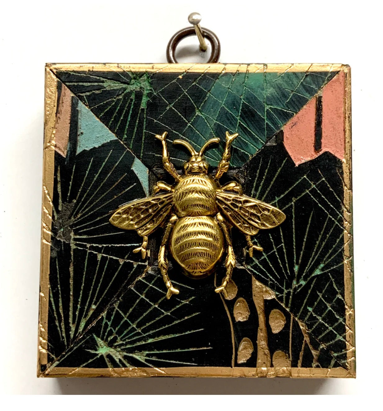 Trace Mayer uses antique frame fragments from 1860-80 to form charming and interesting shapes. In the center, various ornaments are showcased, the first of which was Napoleon's Bee. What has transpired over the years is a phenomenon anyone and everyone can get excited about and be a part of. Bees have expanded to include many other gems, including other animals, insects, and even personal items such as a medal or a unique family heirloom. Small antique objects are also showcased, including horse brass, pre-Columbian fragments, or small cameos.