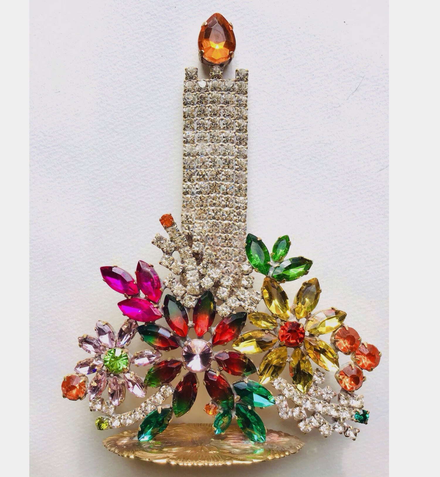 Vintage Rhinestone Czech Christmas Candlestick. Sparkly and festive!