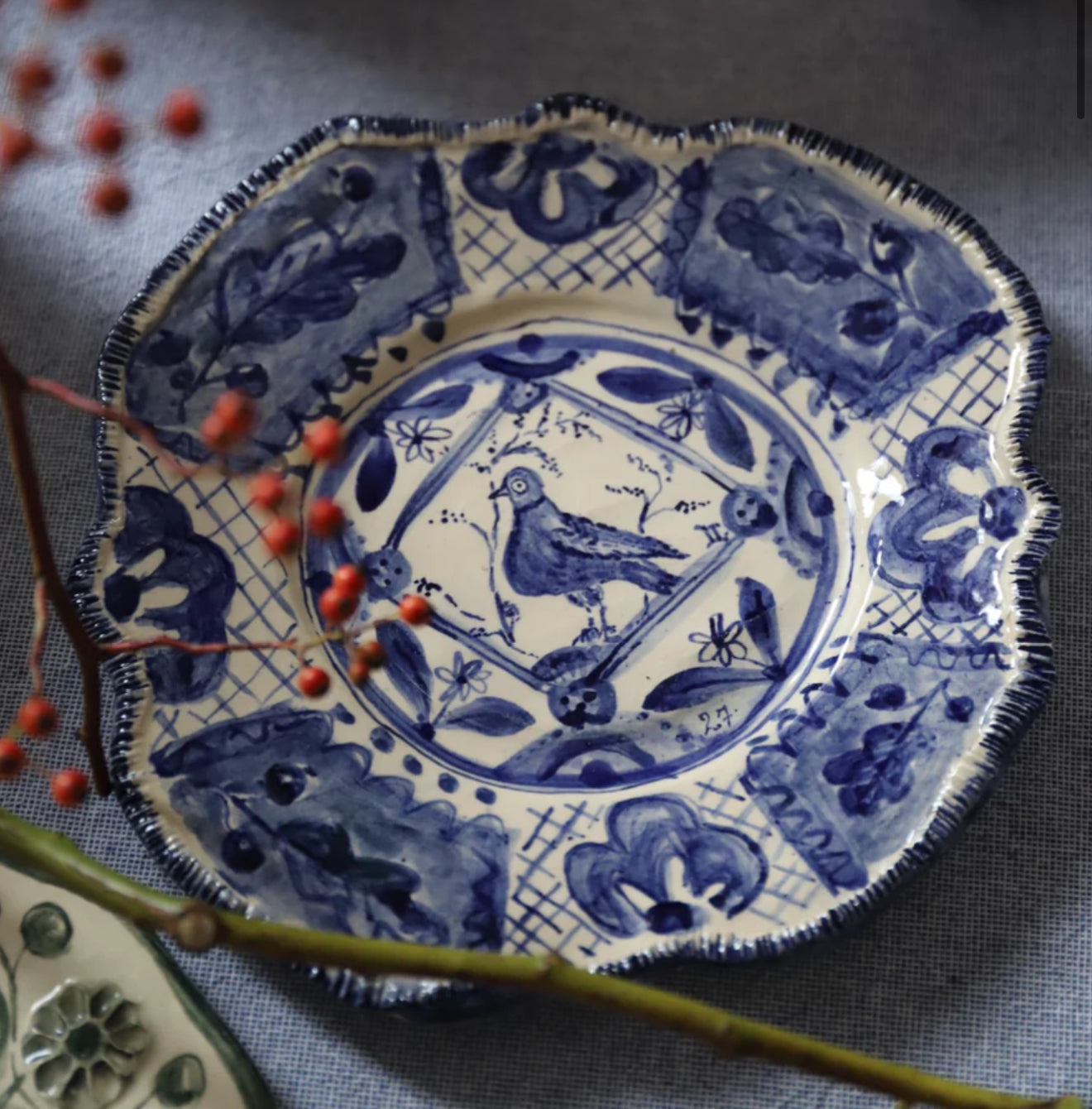 Decorative Blue Plate (Pigeon 27) | Lisa Sandner