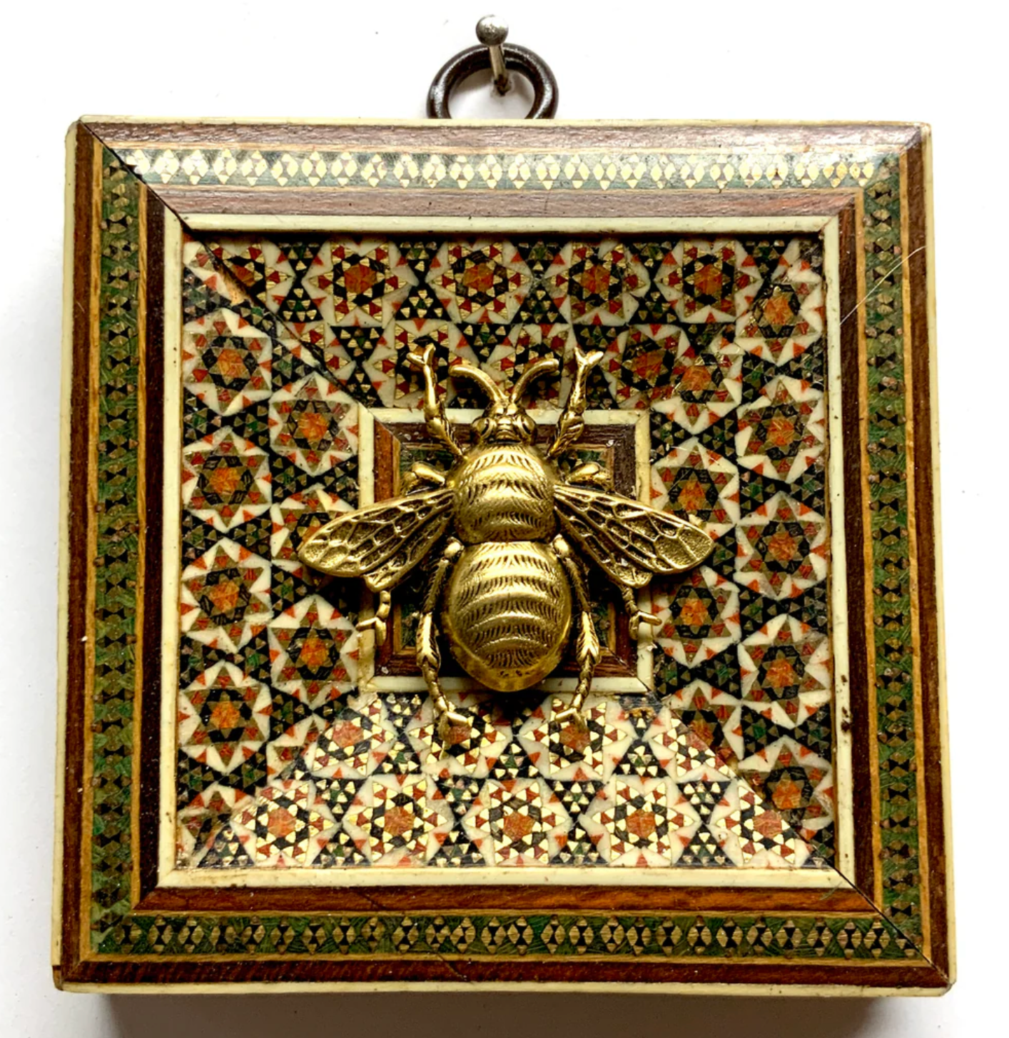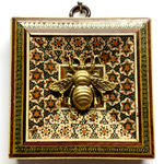 Trace Mayer uses antique frame fragments from 1860-80 to form charming and interesting shapes. In the center, various ornaments are showcased, the first of which was Napoleon's Bee. What has transpired over the years is a phenomenon anyone and everyone can get excited about and be a part of. Bees have expanded to include many other gems, including other animals, insects, and even personal items such as a medal or a unique family heirloom. Small antique objects are also showcased, including horse brass, pre-Columbian fragments, or small cameos.