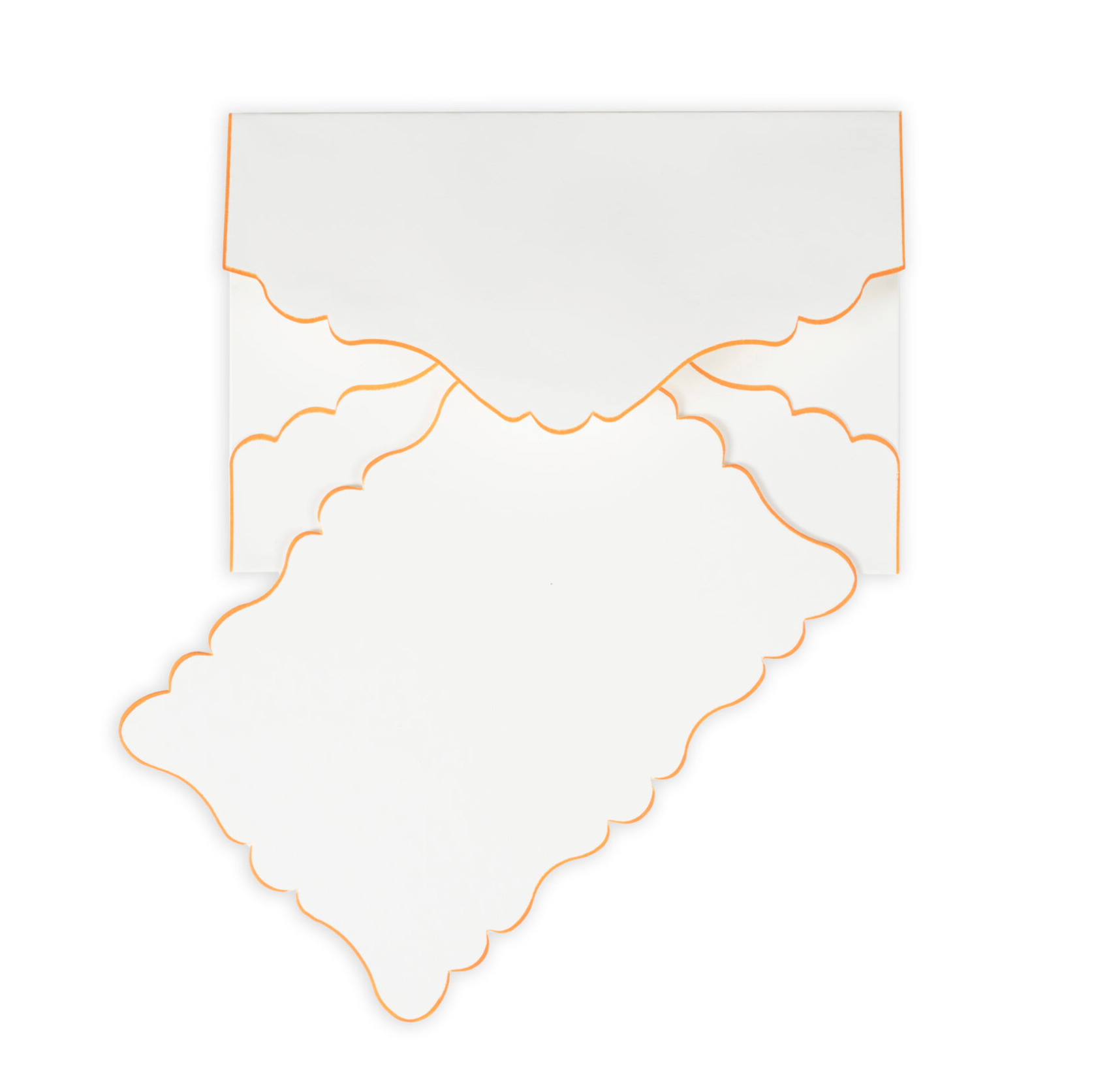 Grosvenor Stationery Notecards | Scalloped Ecru Collection Tangerine