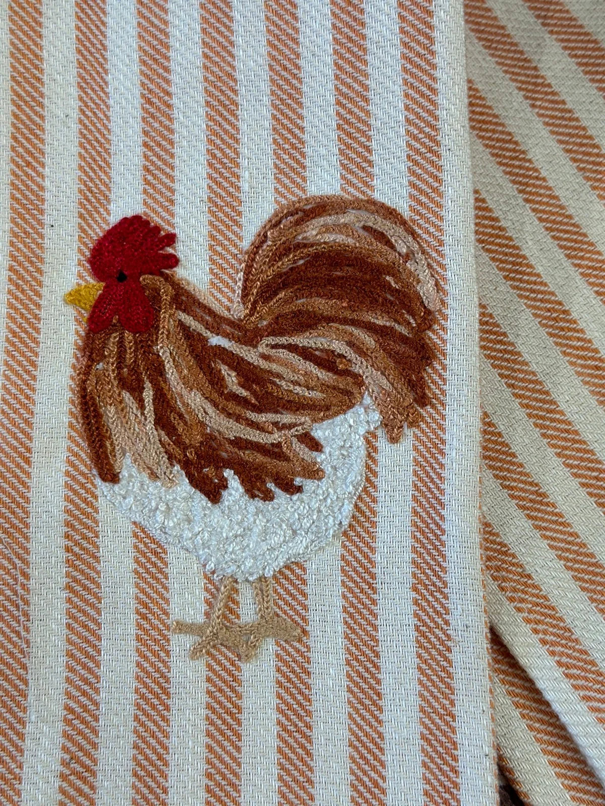 A striped twill called Pomelo is finished with a machine embroidery. With every wash it gets softer and softer.