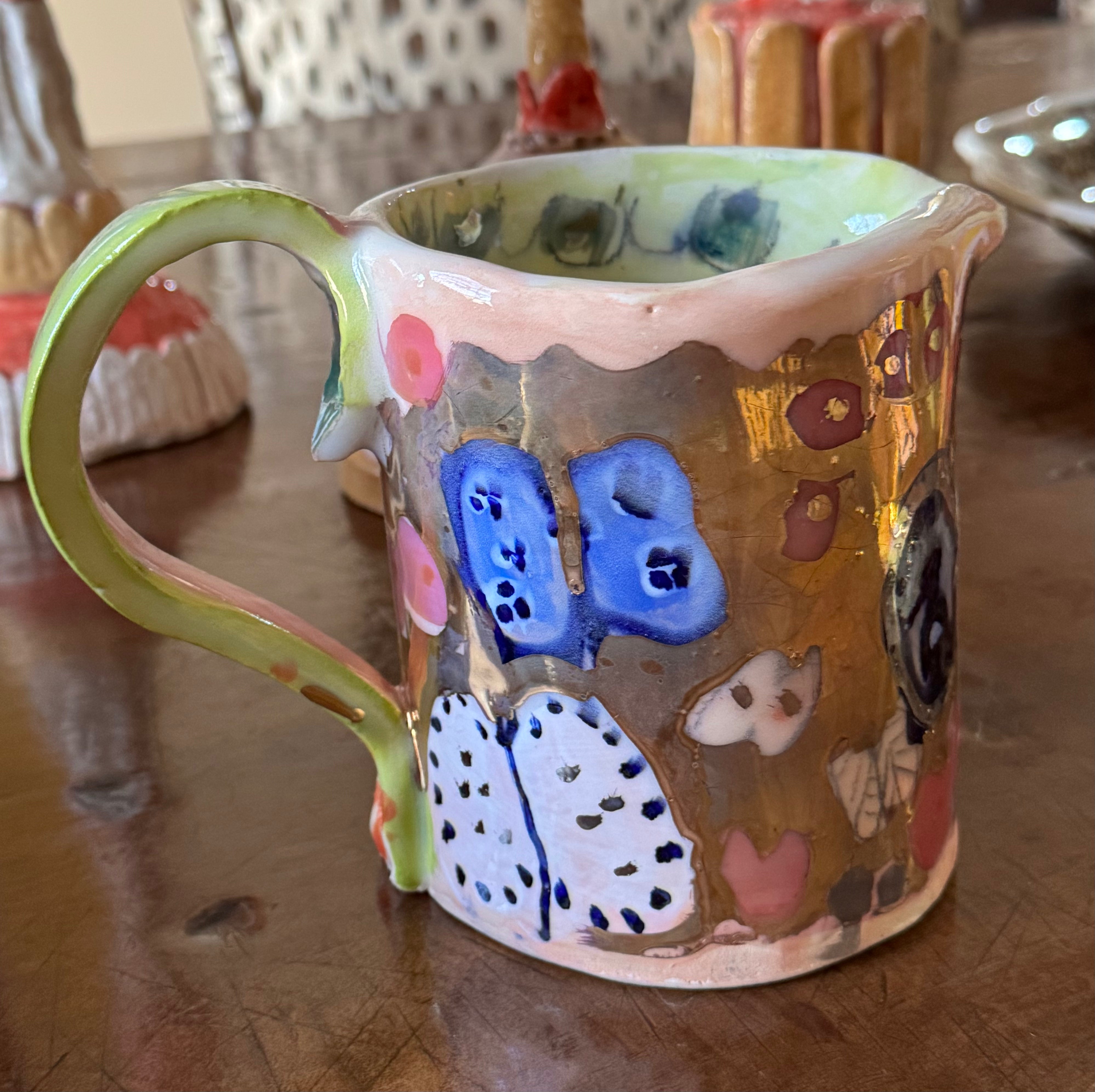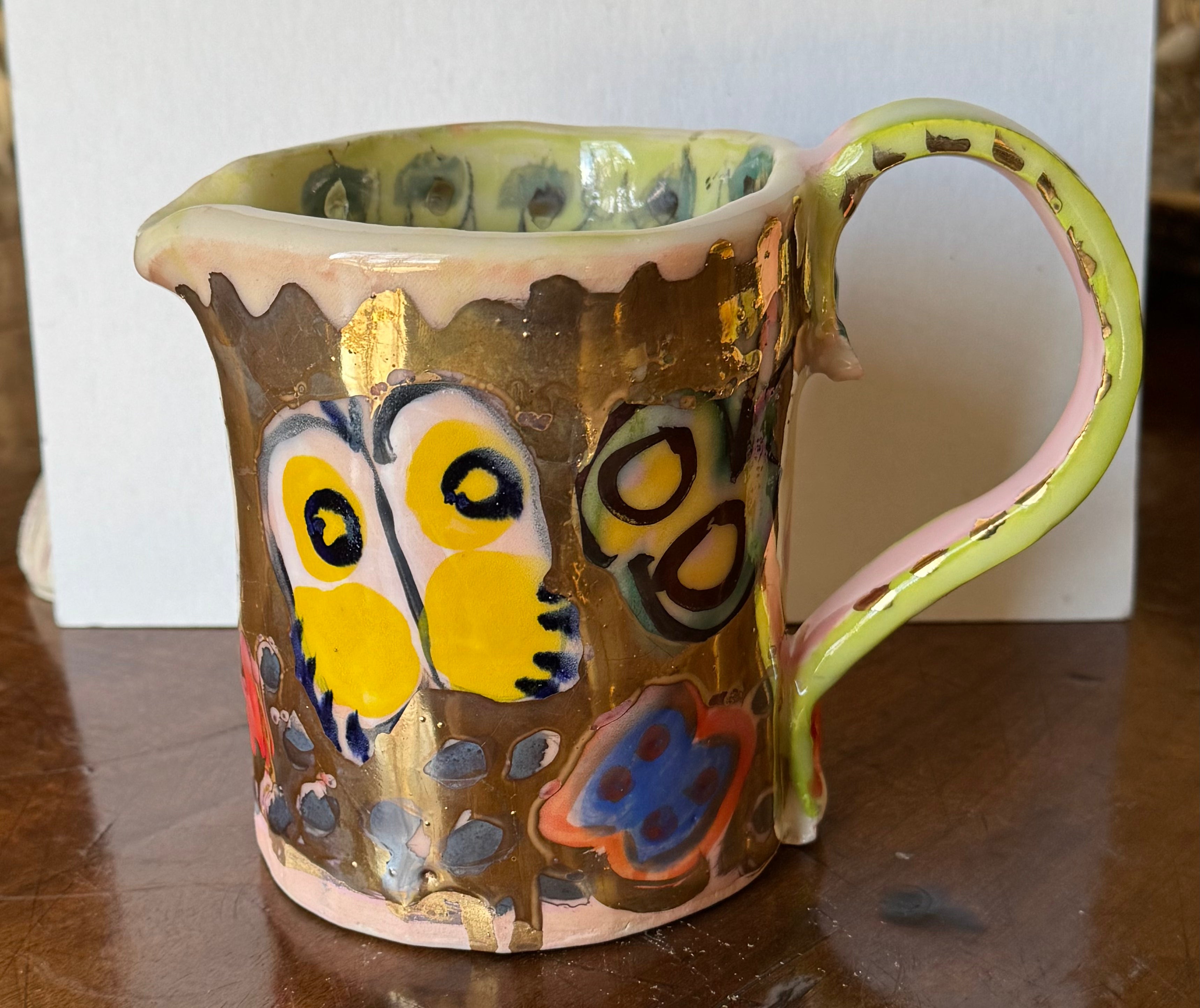 This hand-crafted ceramic mug features 24 carat gold and a charming design with butterflies... the essence of spring! The vibrant design and artisanal craftsmanship make it a timeless addition to your collection, perfect for both everyday use and special occasions. Fill it with flowers this spring!
