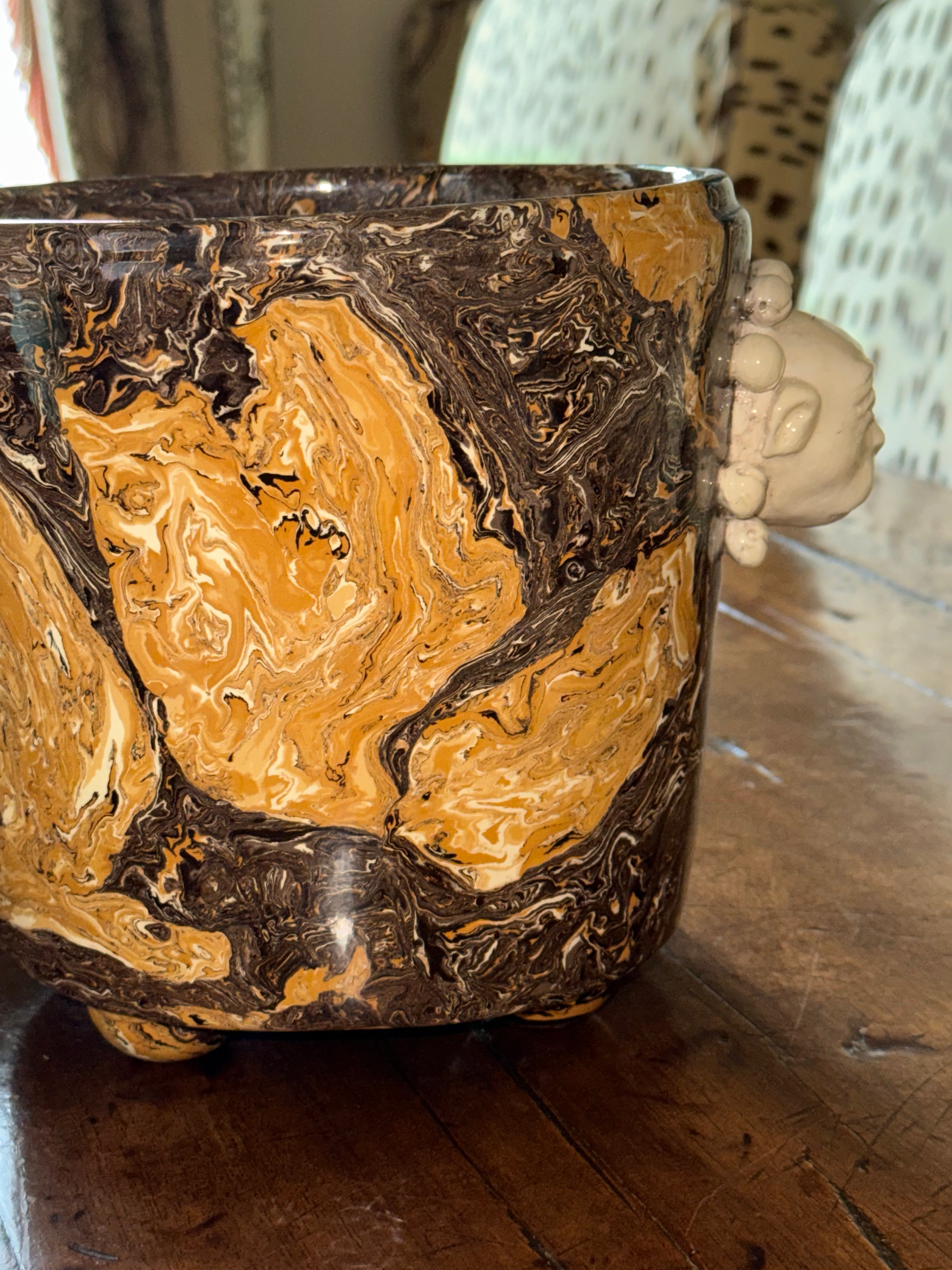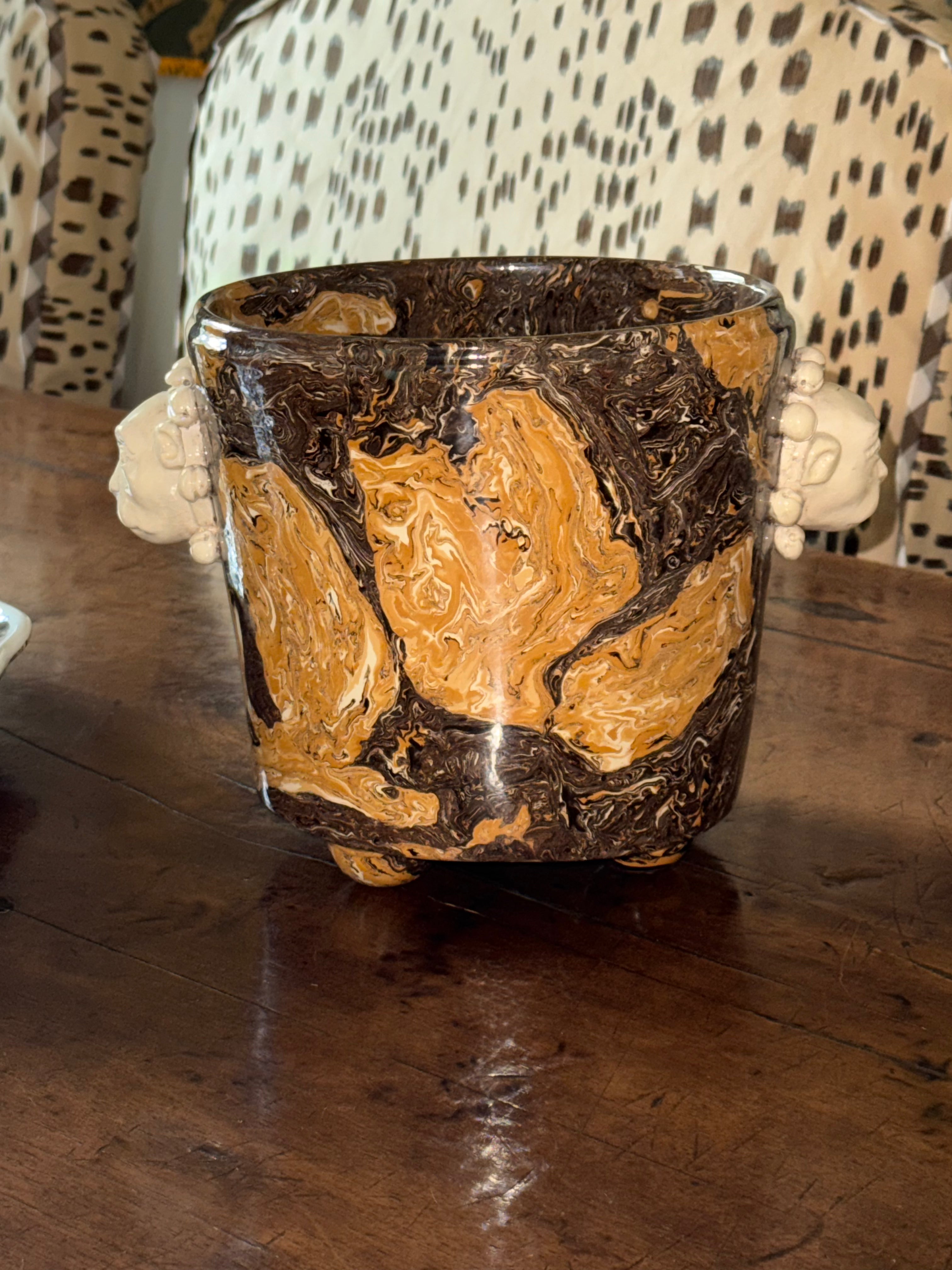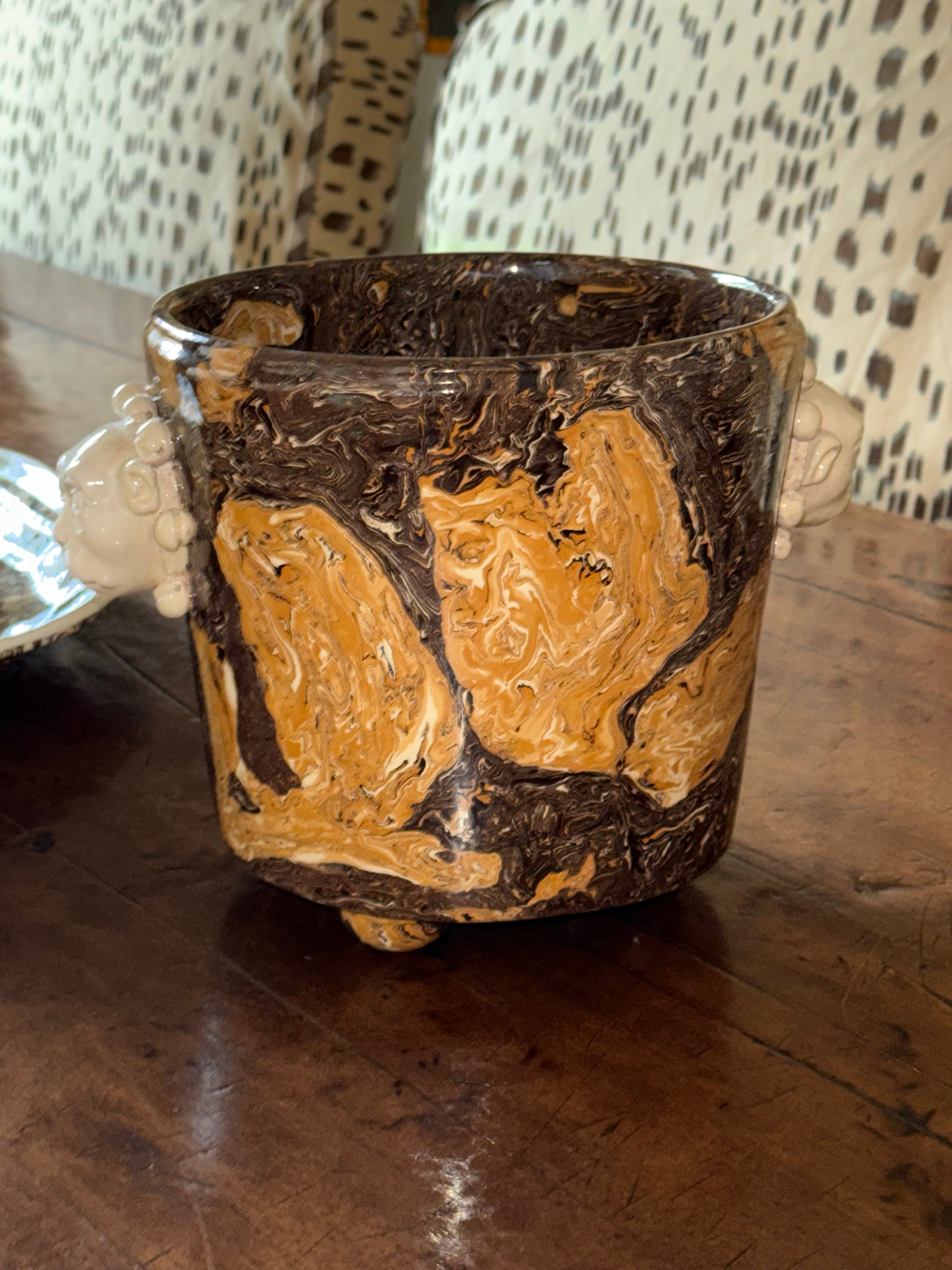 A snazzy marbleware container from Nîmes, France with Monkey handles. Can be used as a planter or vase, an ice bucket or champagne cooler.