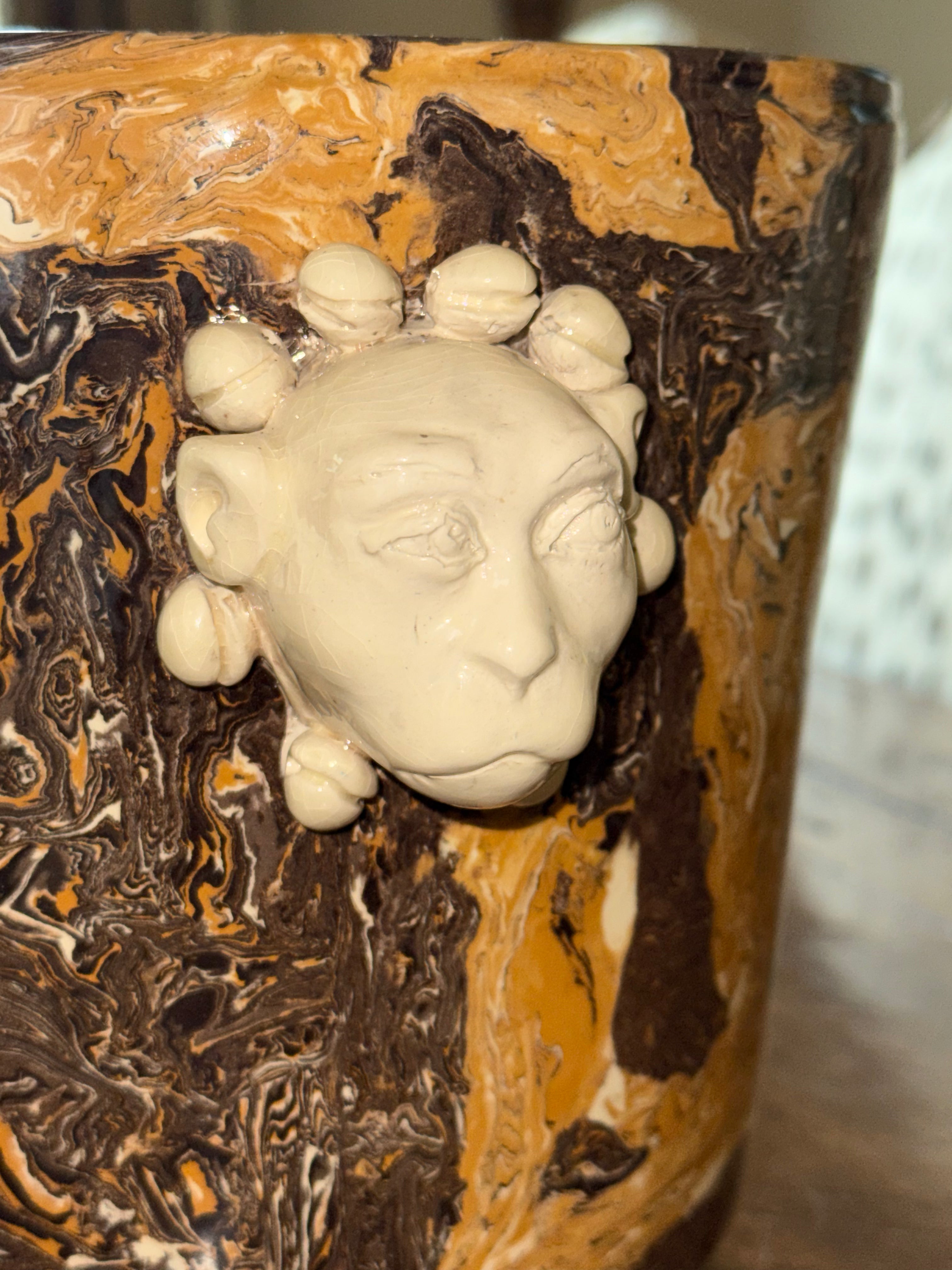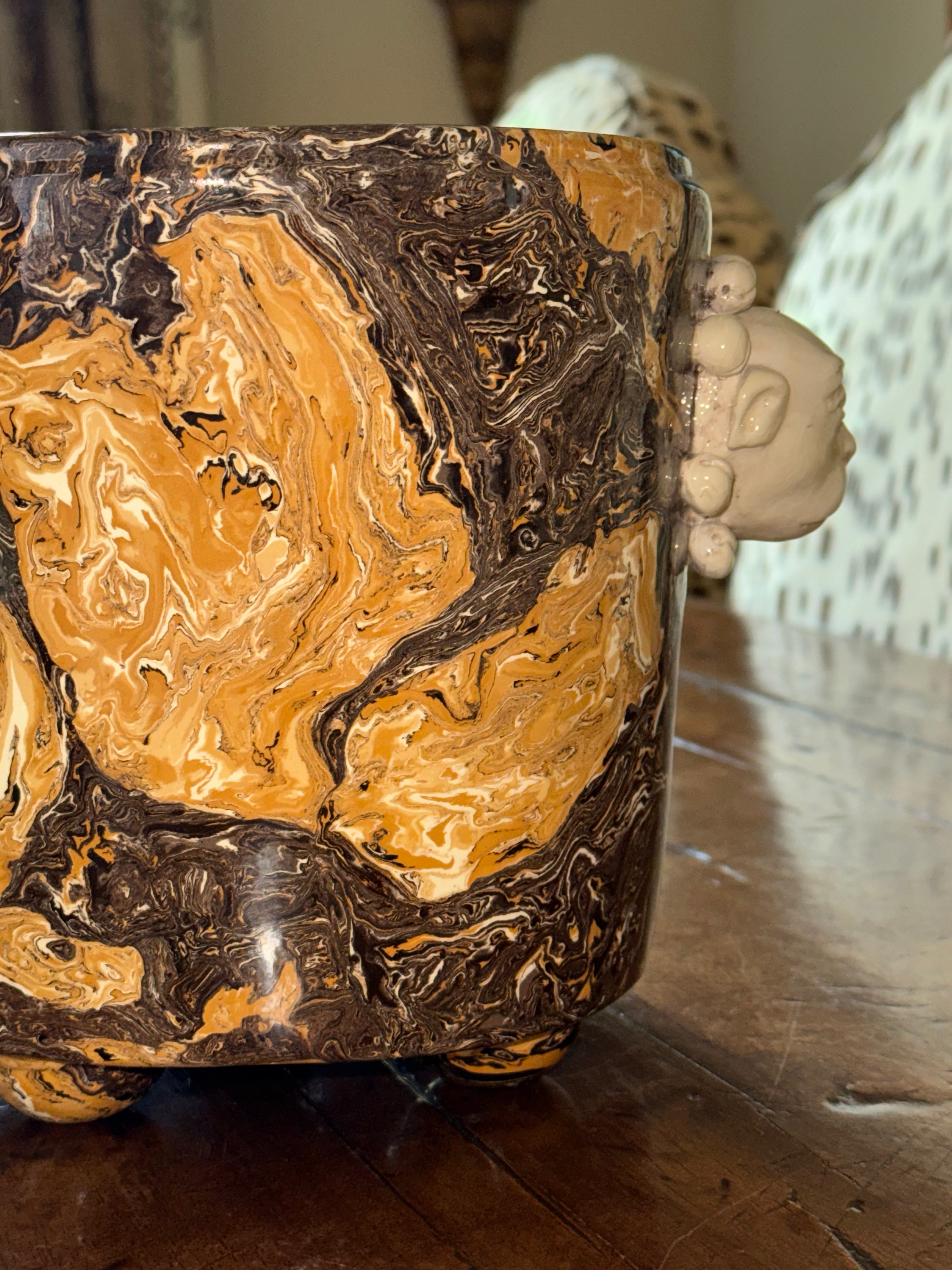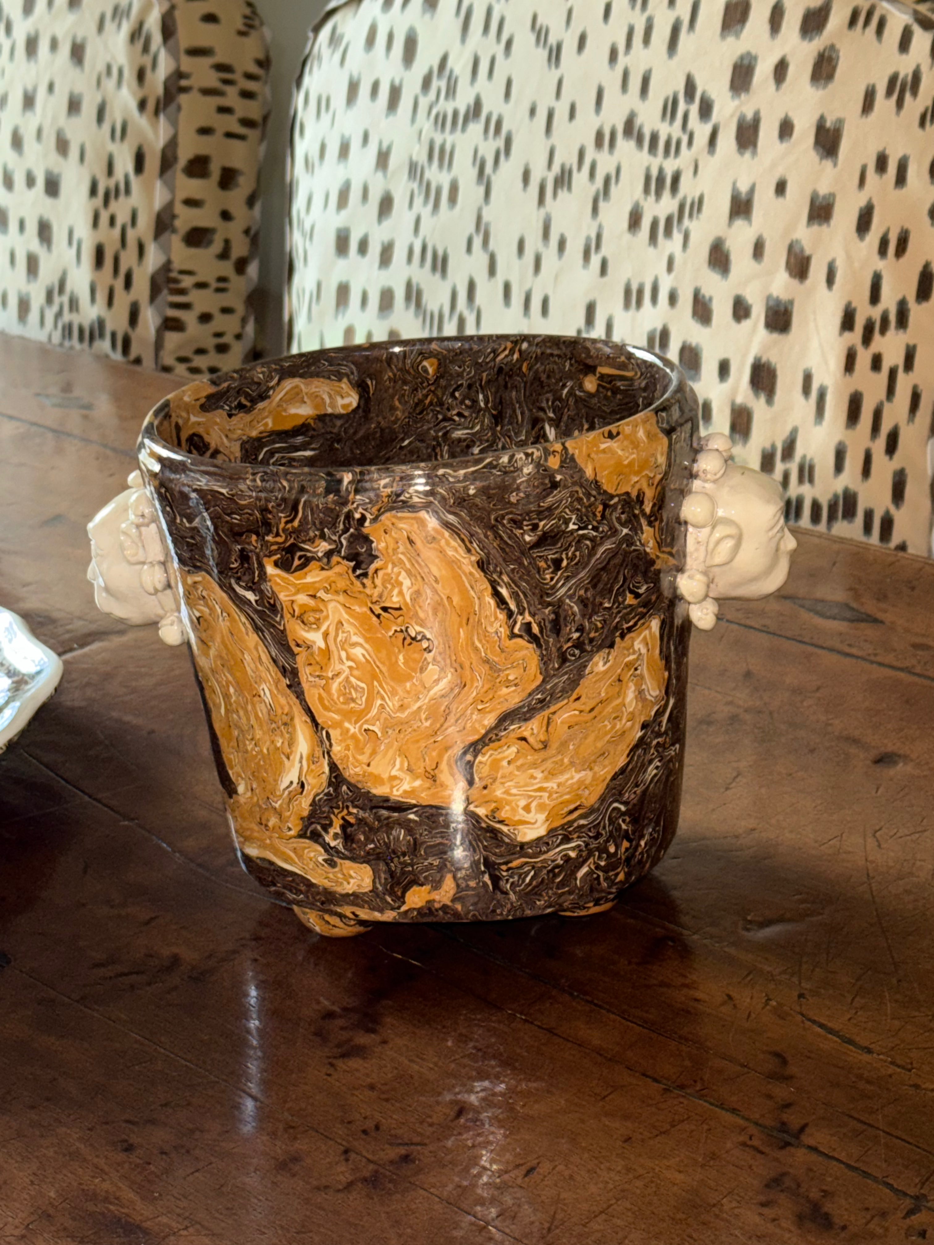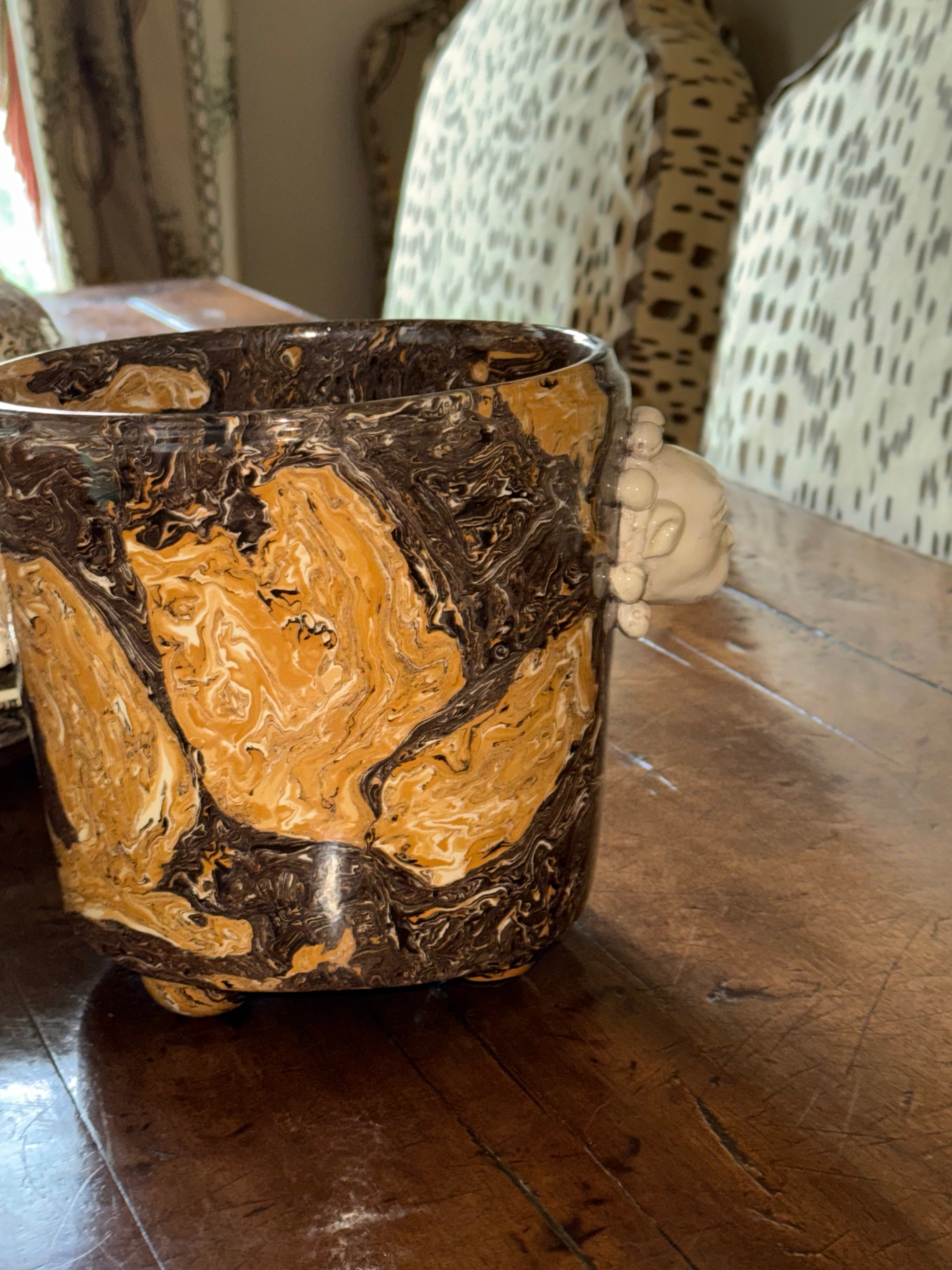 A snazzy marbleware container from Nîmes, France with Monkey handles. Can be used as a planter or vase, an ice bucket or champagne cooler.