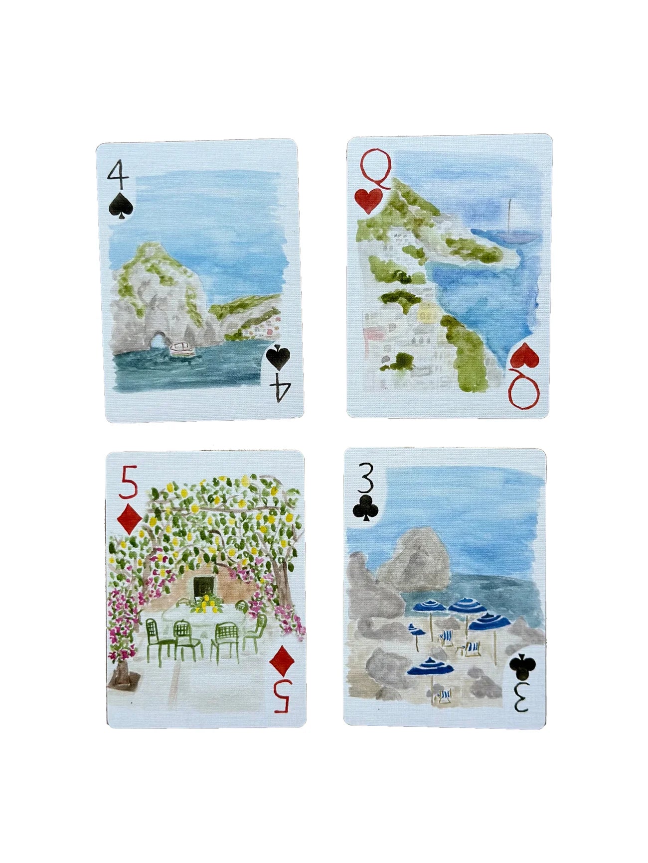 Ciao Italia! Explore the Southern coast of Italy in every hand. From the Amalfi coast to the piazza, this deck is every traveler's dream. Whether you're dreaming of days along the Italian Riviera or longing for a bowl of homemade fettuccini, this watercolor deck brings you one step closer.