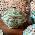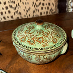 Hand-painted flowers adorn this darling lidded dish. The most beautiful green.