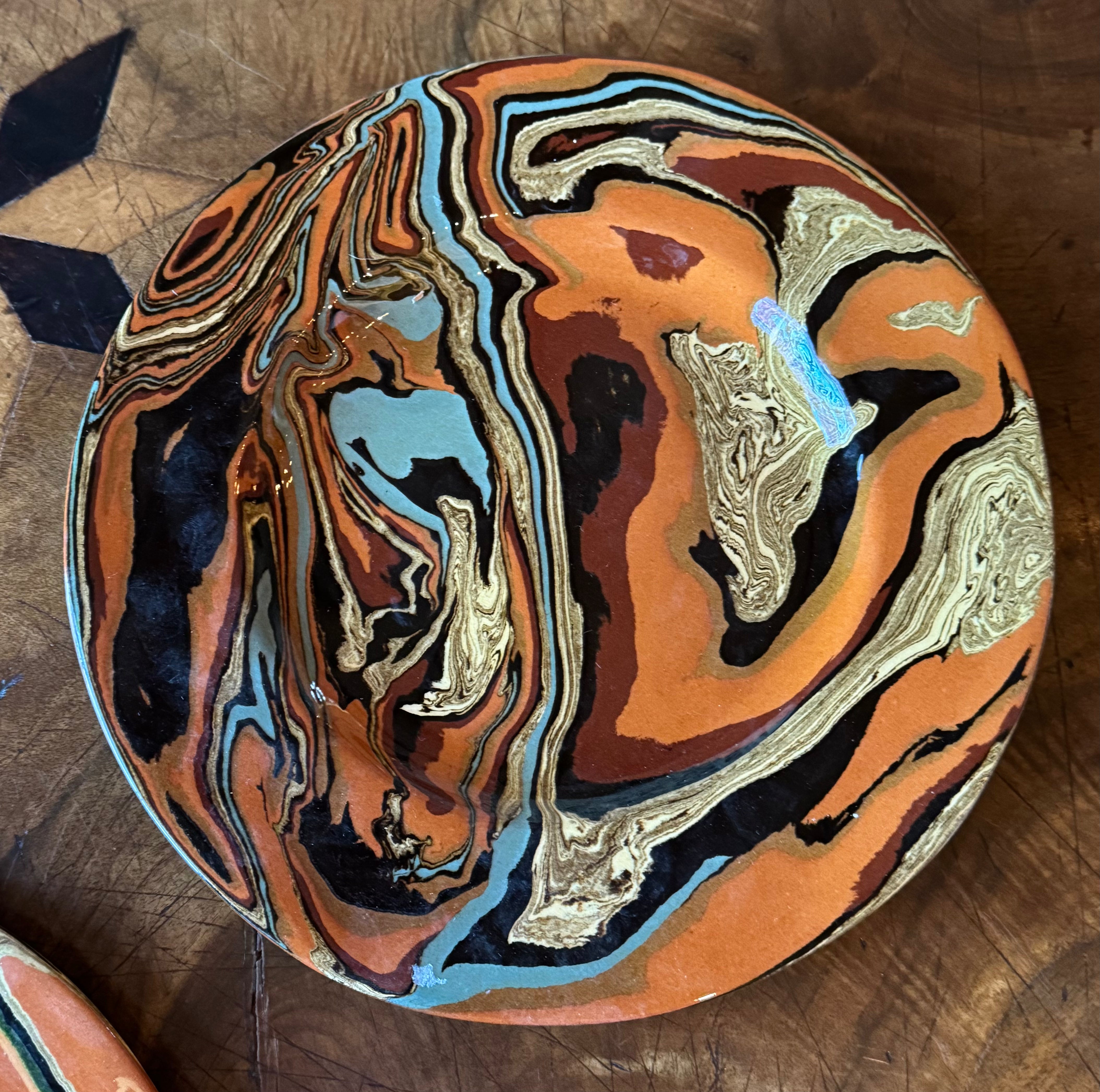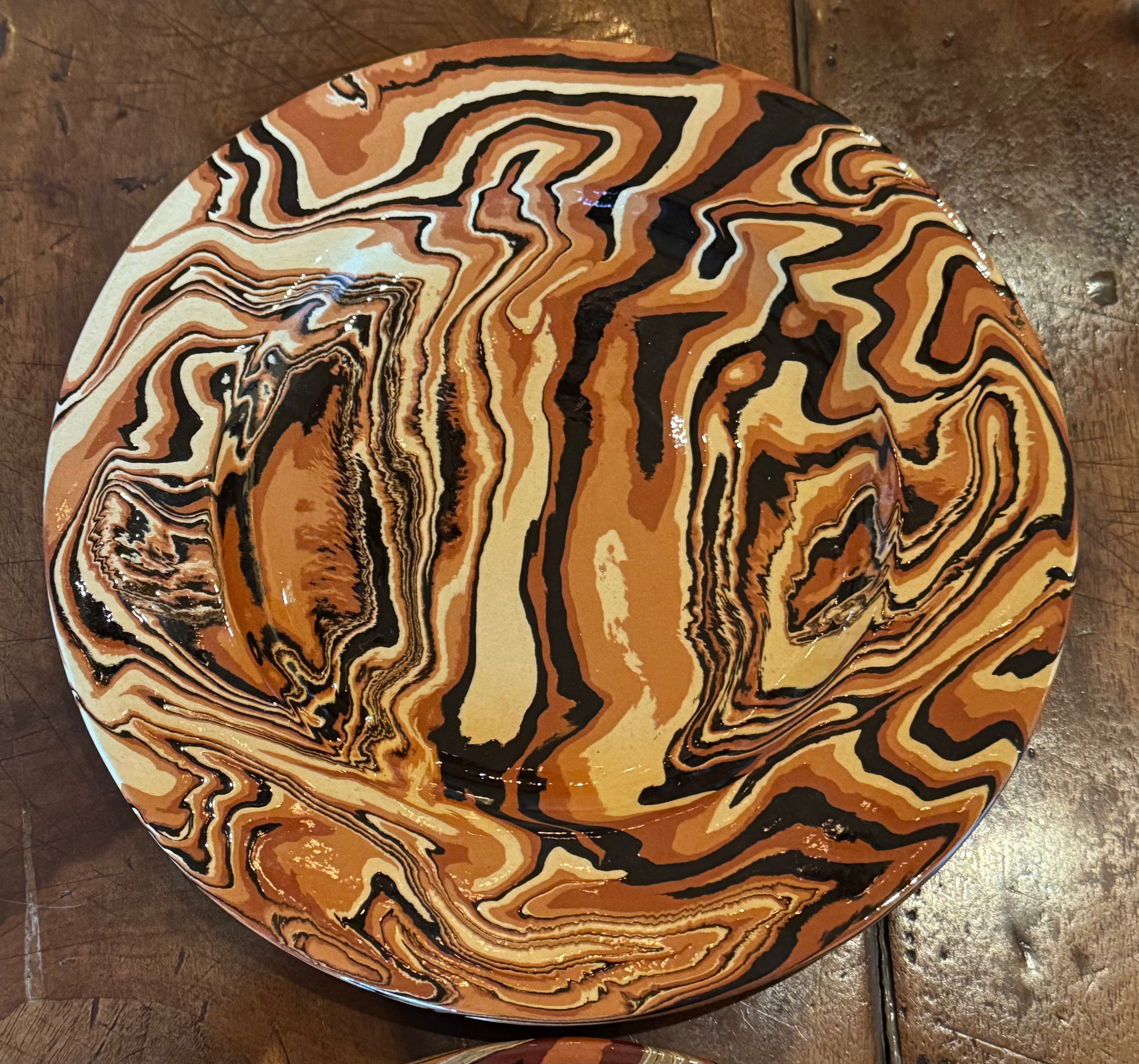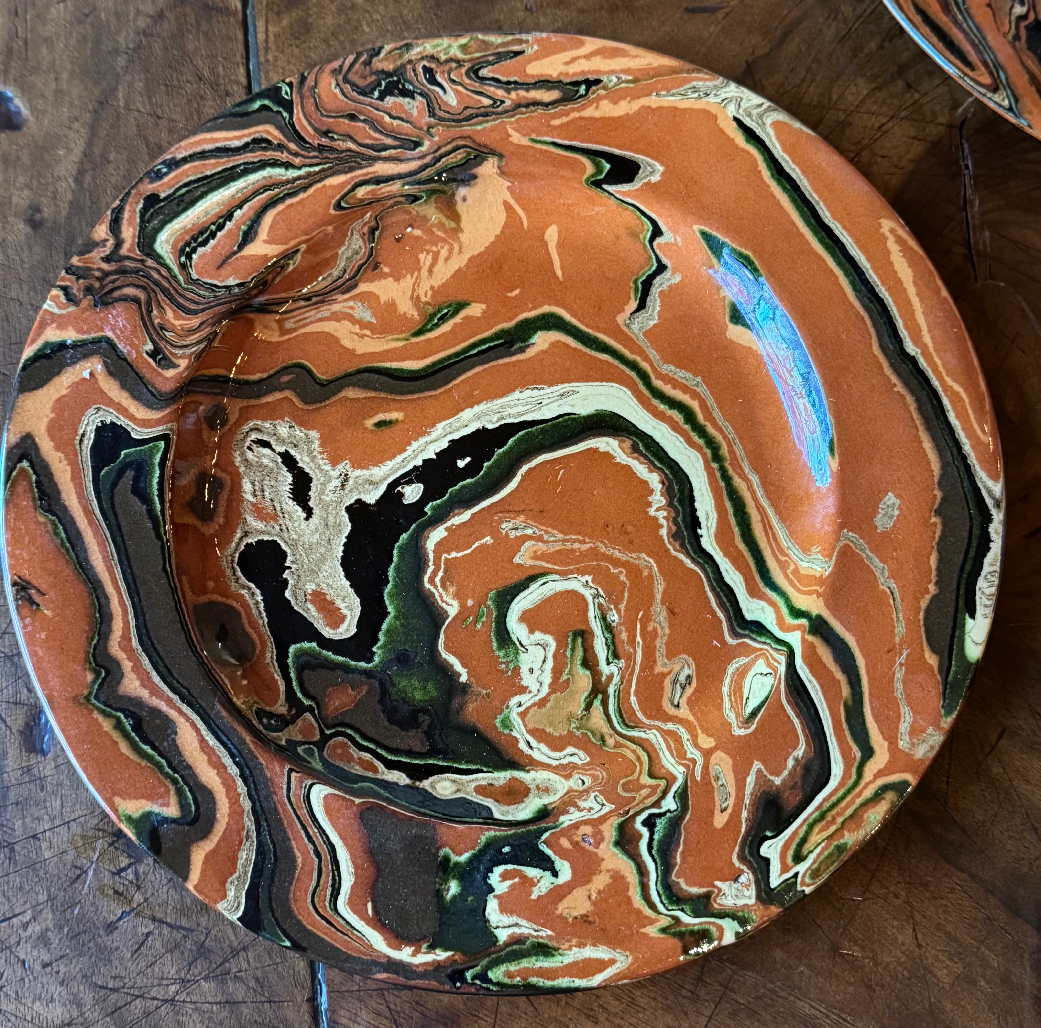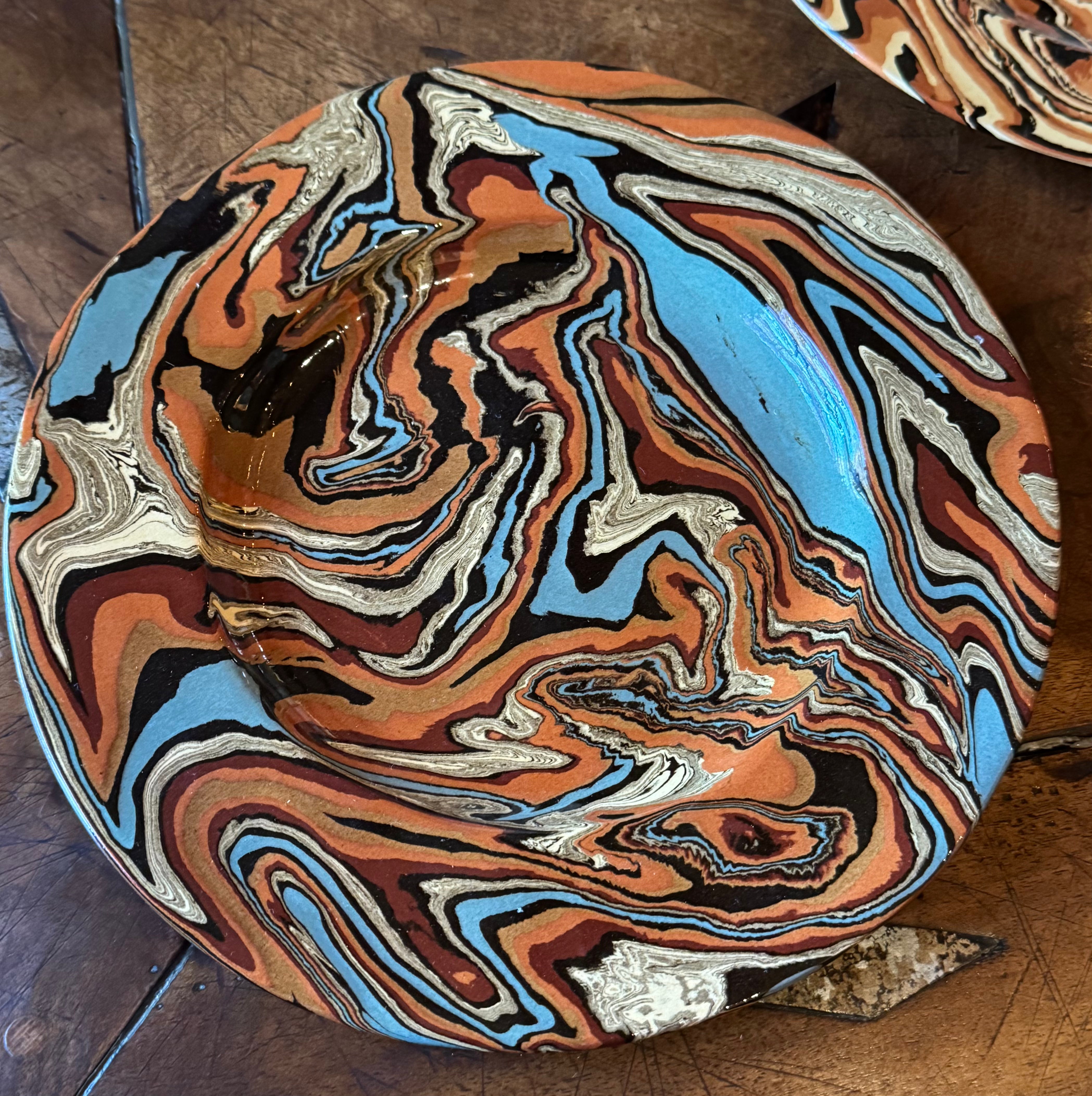 This set of 4 French marbled plates is a stunning example of modern French pottery. With its marbled design, each plate blends traditional craftsmanship with a contemporary aesthetic.