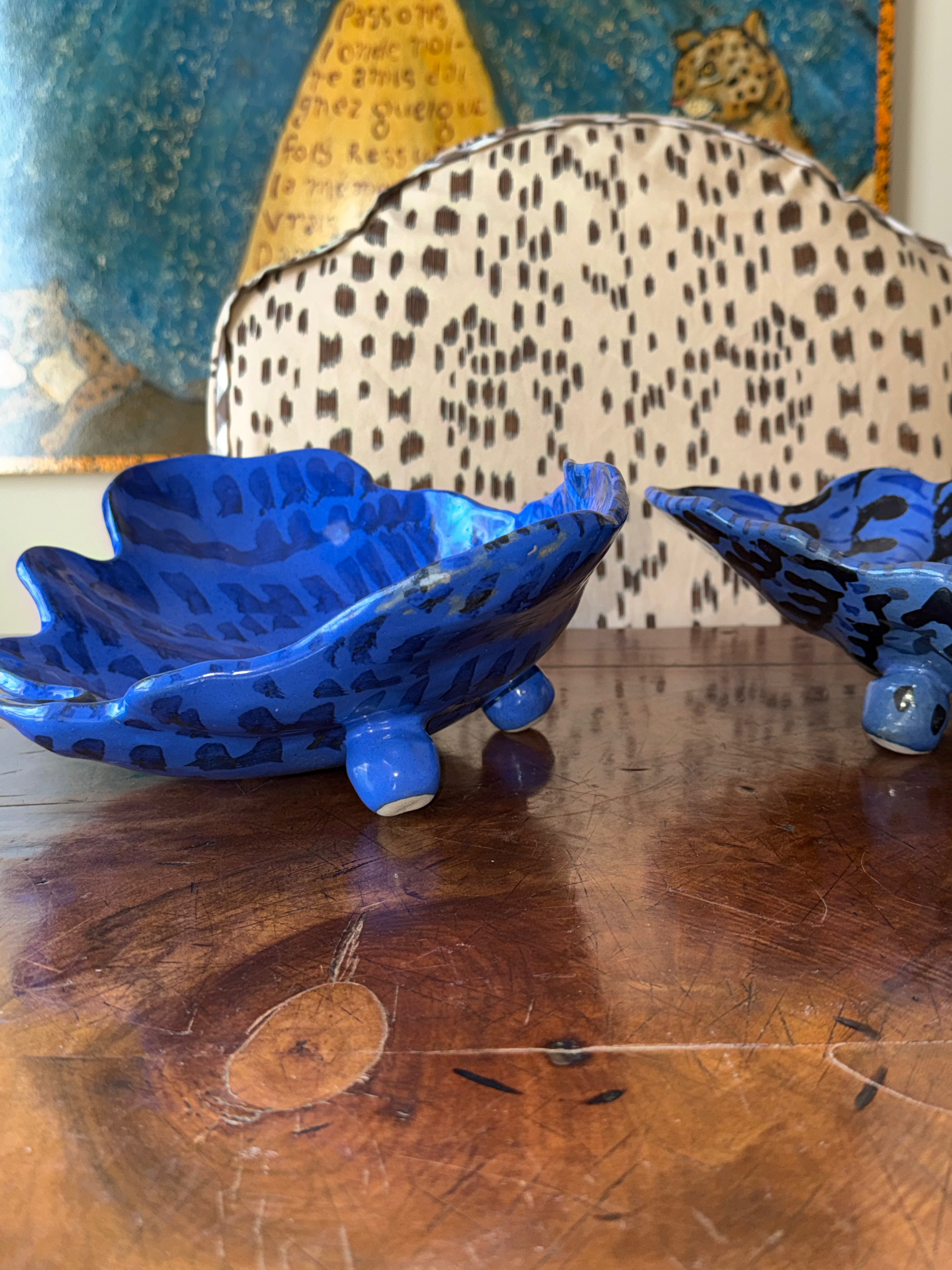 Each ceramic shell in this shop is unique. Lucie de Moyencourt loves improvising with her brushwork and colors and whimsically approaches each shell. The artist is given a chance to experiment with the complex and mystical mediums of Stoneware, Porcelain, Earthenware, Underglazes, Glazes, and sometimes also Lustre. You might see iterations and repeats in patterns and colors, but as each shell is handmade and hand-painted, all shells will be unique, making them highly collectible.