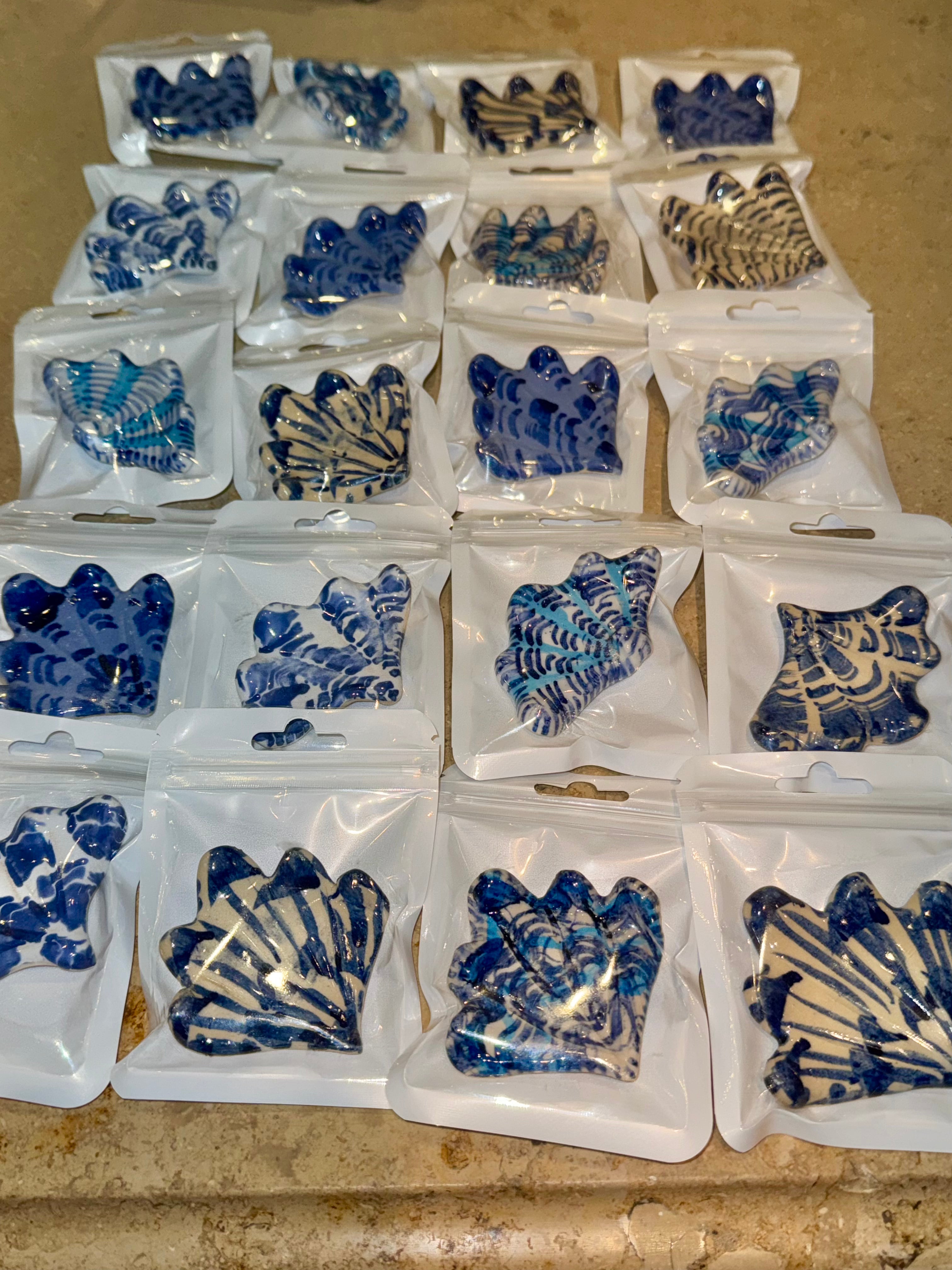 Add a dash of Shellegance charm to your space with a Shellegance Ceramic Magnet. Available as a single magnet, this delightful piece offers a touch of mystery with every packet—revealing a unique, hand-painted ceramic shell in soothing blue and white tones.
