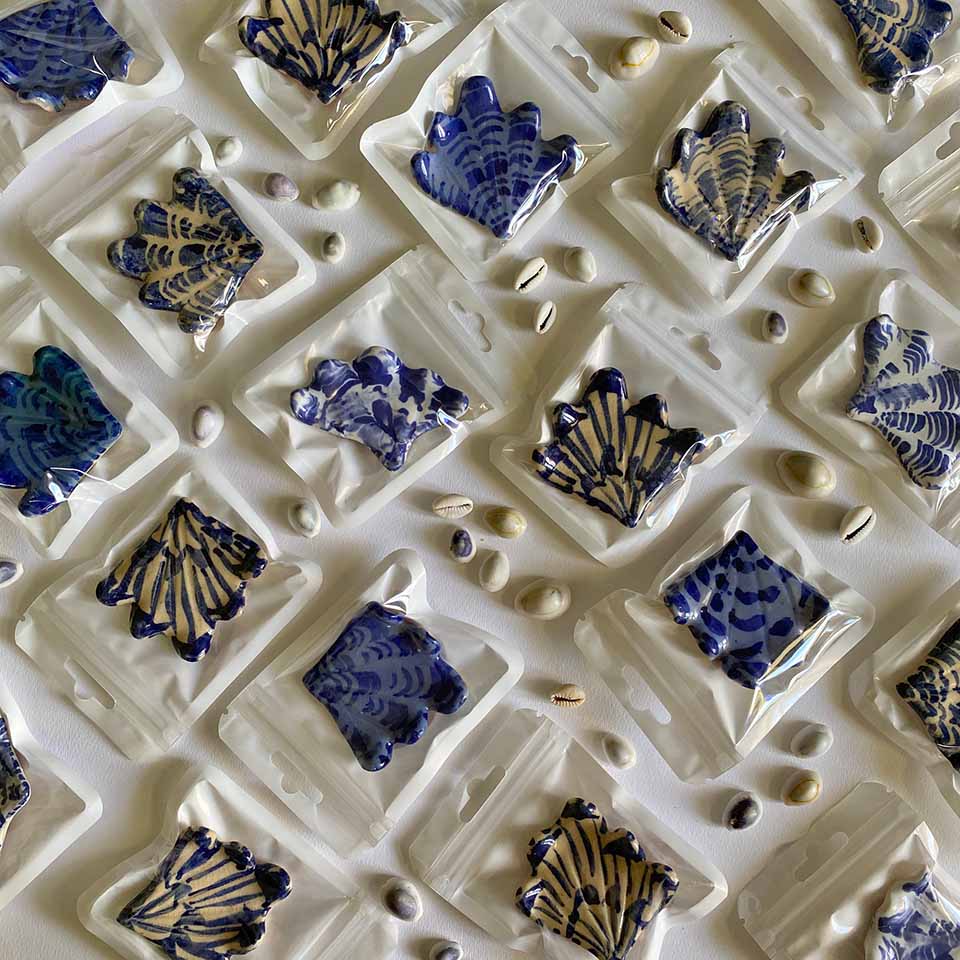 Each ceramic shell in this shop is unique. Lucie de Moyencourt loves improvising with her brushwork and colors and whimsically approaches each shell. The artist is given a chance to experiment with the complex and mystical mediums of Stoneware, Porcelain, Earthenware, Underglazes, Glazes, and sometimes also Lustre. You might see iterations and repeats in patterns and colors, but as each shell is handmade and hand-painted, all shells will be unique, making them highly collectible.