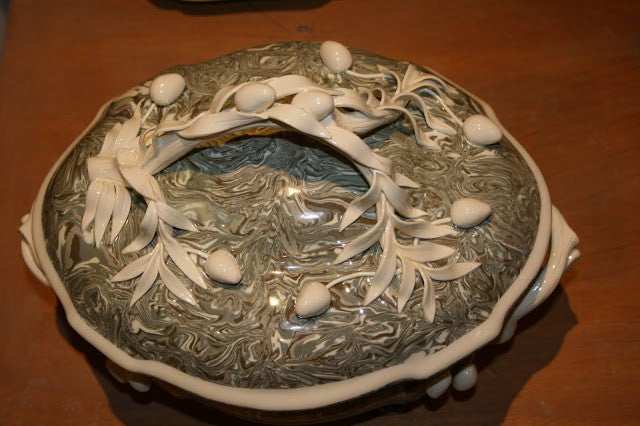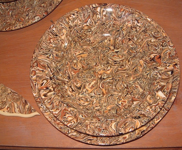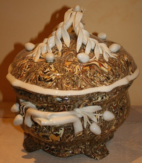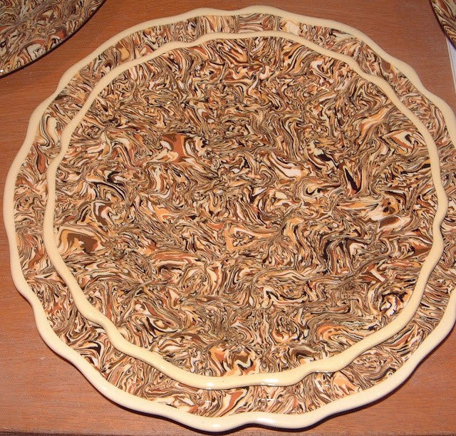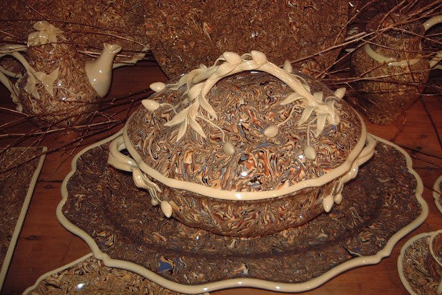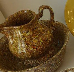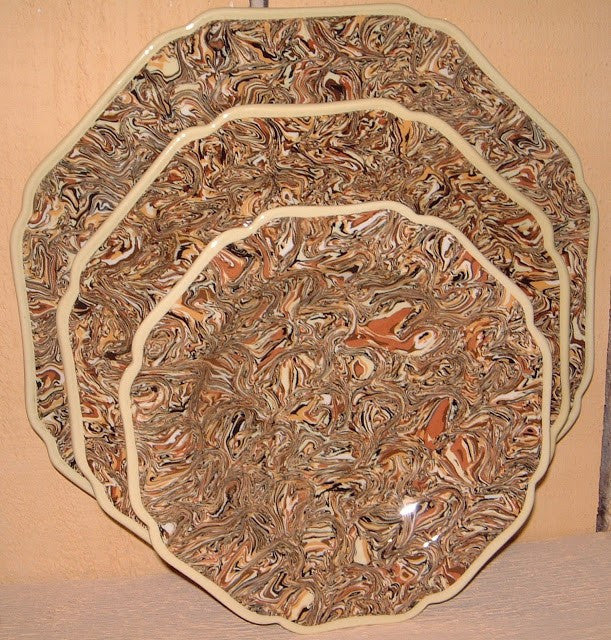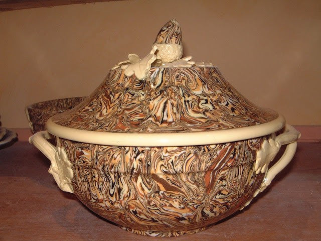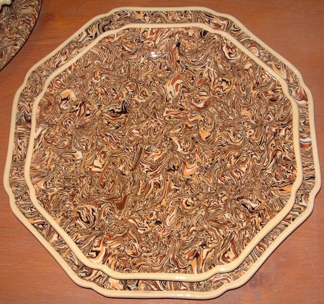Aptware is a beautifully marbleized faience pottery, naturally inspired by the colored soils in Apt, a small town in France. I was overjoyed when I came across a skilled artisan and vendor residing in that region. I am thrilled to provide access to this highly specialized and sought-after product. However, it is considered a very special order. Keep in mind the delivery times may range anywhere from 8 weeks at certain times of the year and up to 8 months at other times. The images displayed here are samples of aptware I have seen when visiting the workshops. Please inquire with any questions!