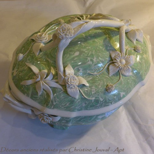 Aptware is ordered directly from one of several vendors in Apt, France, and there is typically a long waitlist with wait times ranging from 8 weeks to 8 months! I have a few pieces in the shop ~ listed separately ~ for purchase. Here are many examples of aptware ~ some are from the past. Most of these items can still be ordered. The prices listed below are approximate.