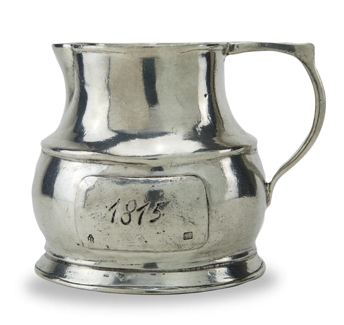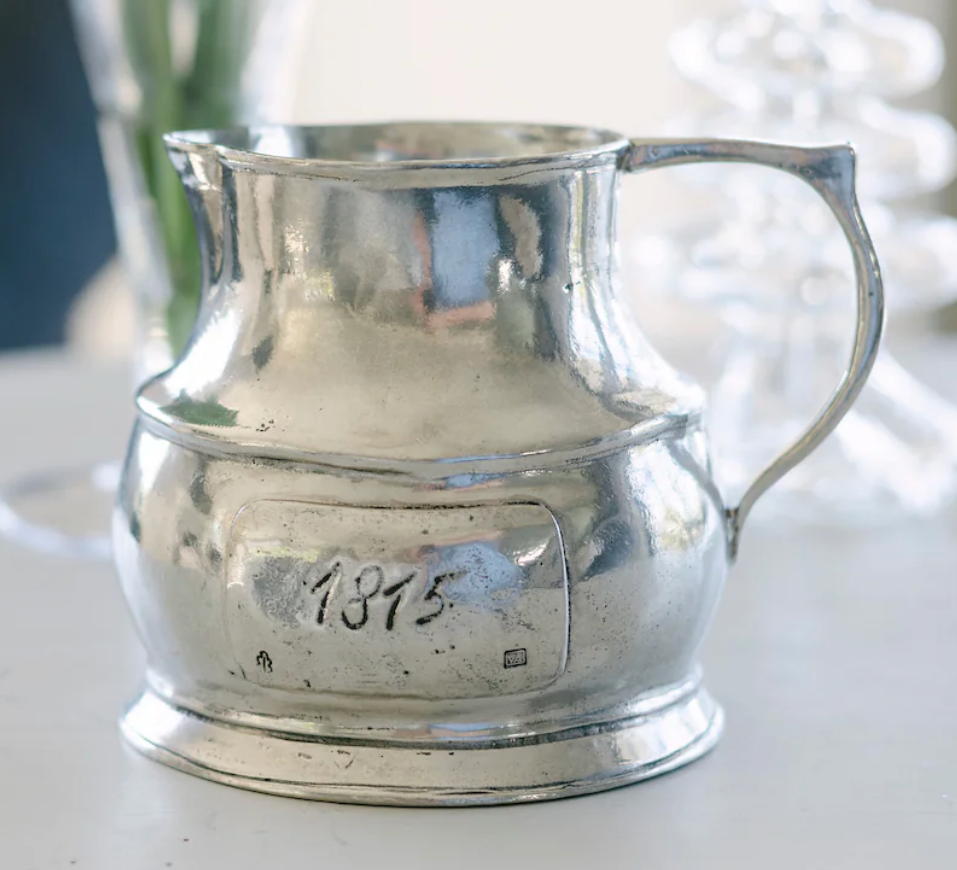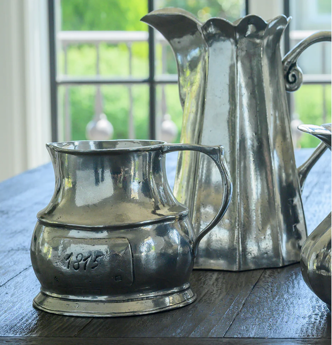 This Vintage 1815 Pewter Pitcher is a true work of art, expertly handcrafted in Italy by skilled artisans. Combining the finest quality pewter with generations of traditional craftsmanship, each pitcher is unique. The timeless design features a classic, elegant shape, making it perfect for both display and everyday use. With a 28 oz capacity, it’s just the right size for serving drinks or showcasing fresh flowers. Dishwasher safe on the low-heat/air-dry setting with non-abrasive detergent.