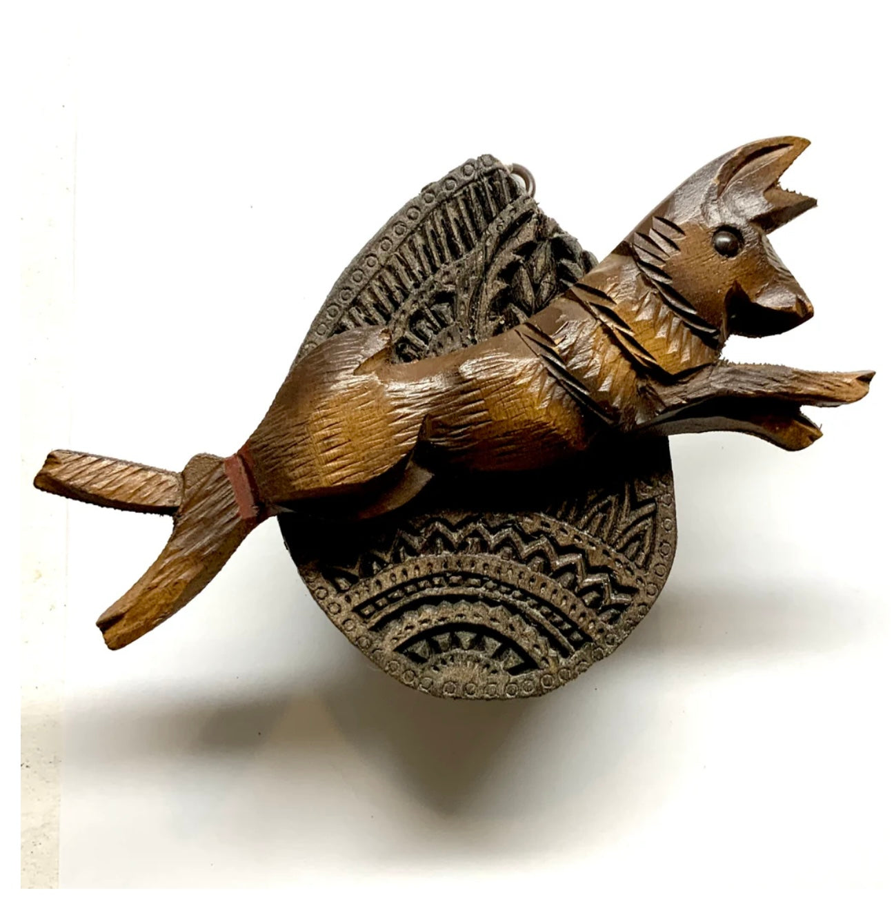 Carved Wooden Block Frame with Cuckoo Clock Hare