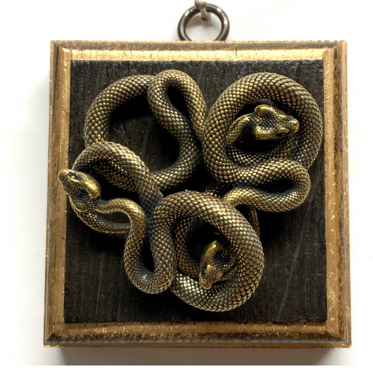 Trace Mayer uses antique frame fragments from 1860-80 to form charming and interesting shapes. In the center, various ornaments are showcased, the first of which was Napoleon's Bee. What has transpired over the years is a phenomenon anyone and everyone can get excited about and be a part of. Bees have expanded to include many other gems, including other animals, insects, and even personal items such as a medal or a unique family heirloom. Small antique objects are also showcased, including horse brass, pre-Columbian fragments, or small cameos.