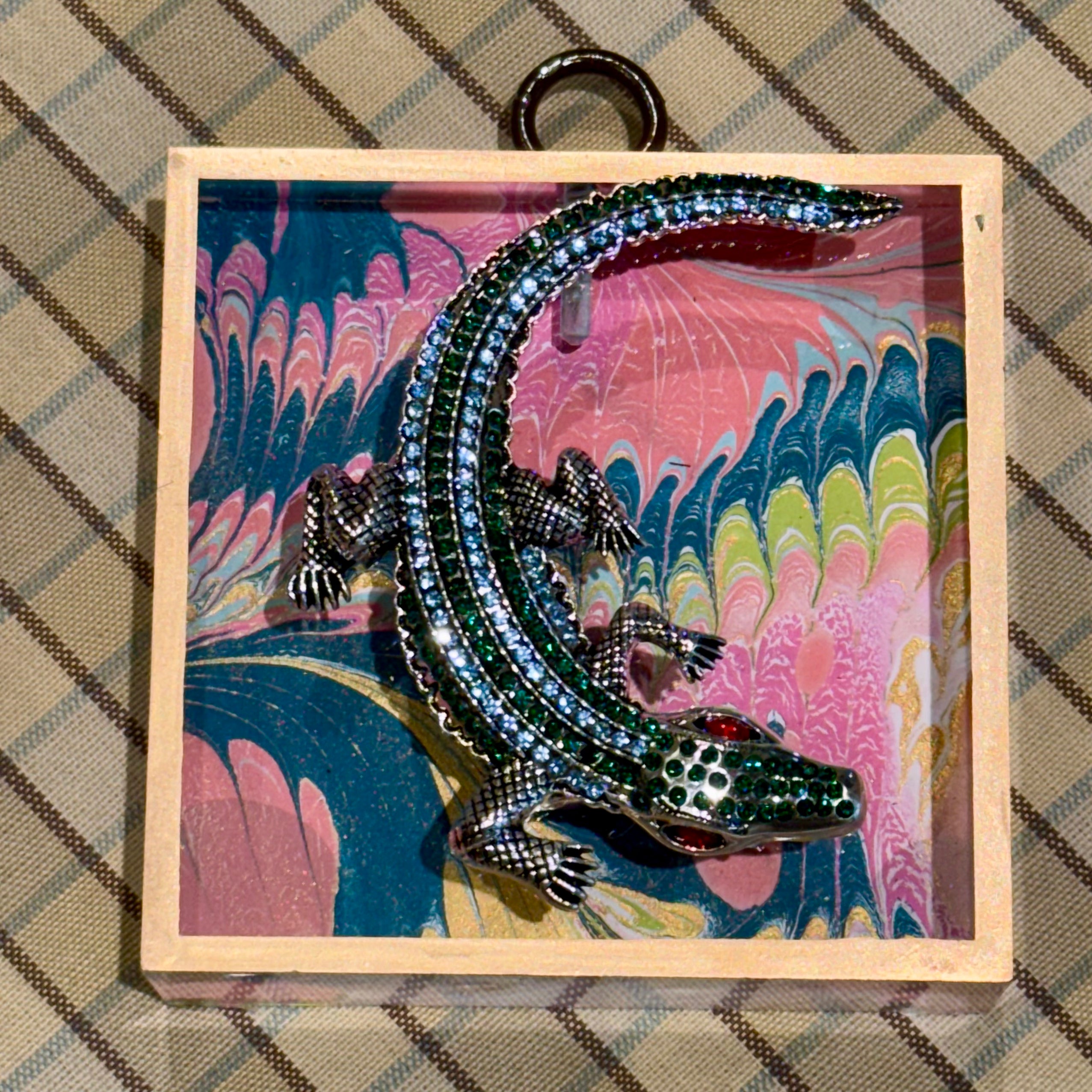Acrylic Frame with Sparkle Alligator on Marble Paper / Slight Imperfections